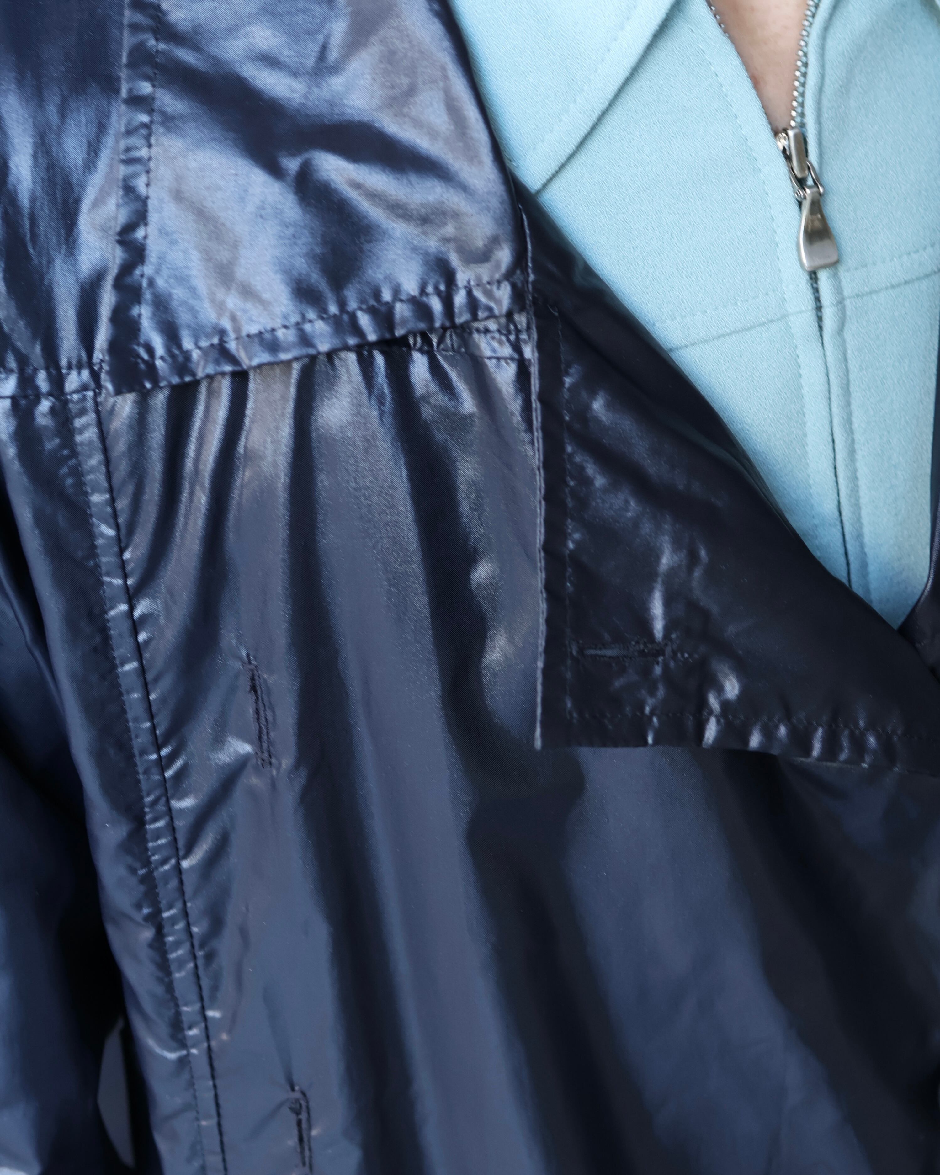 スタイリングによってシルエットを変化させることが可能で軽い素材感のため春にも着用することができるアイテム。
