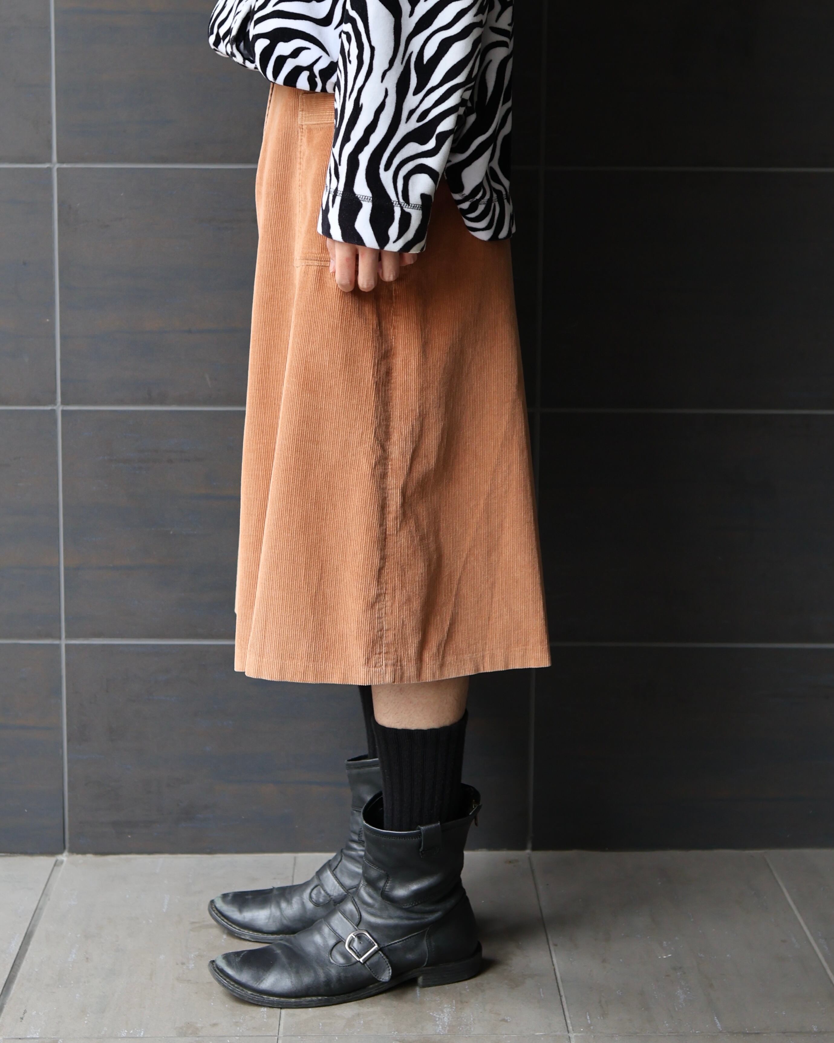 素材感、サイズ感ともに良くパンツレイヤードにももちろん、一枚でブーツやソックスで遊ぶスタイリングにも最適なアイテム。