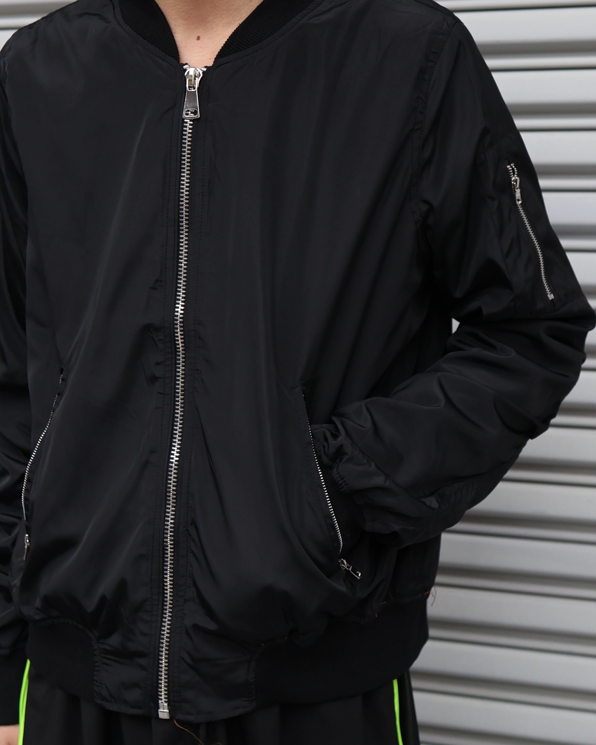 ジップ部分のシルバーカラーによる主張が特徴的で一枚でモードにも綺麗目にも着用することができるアイテム。