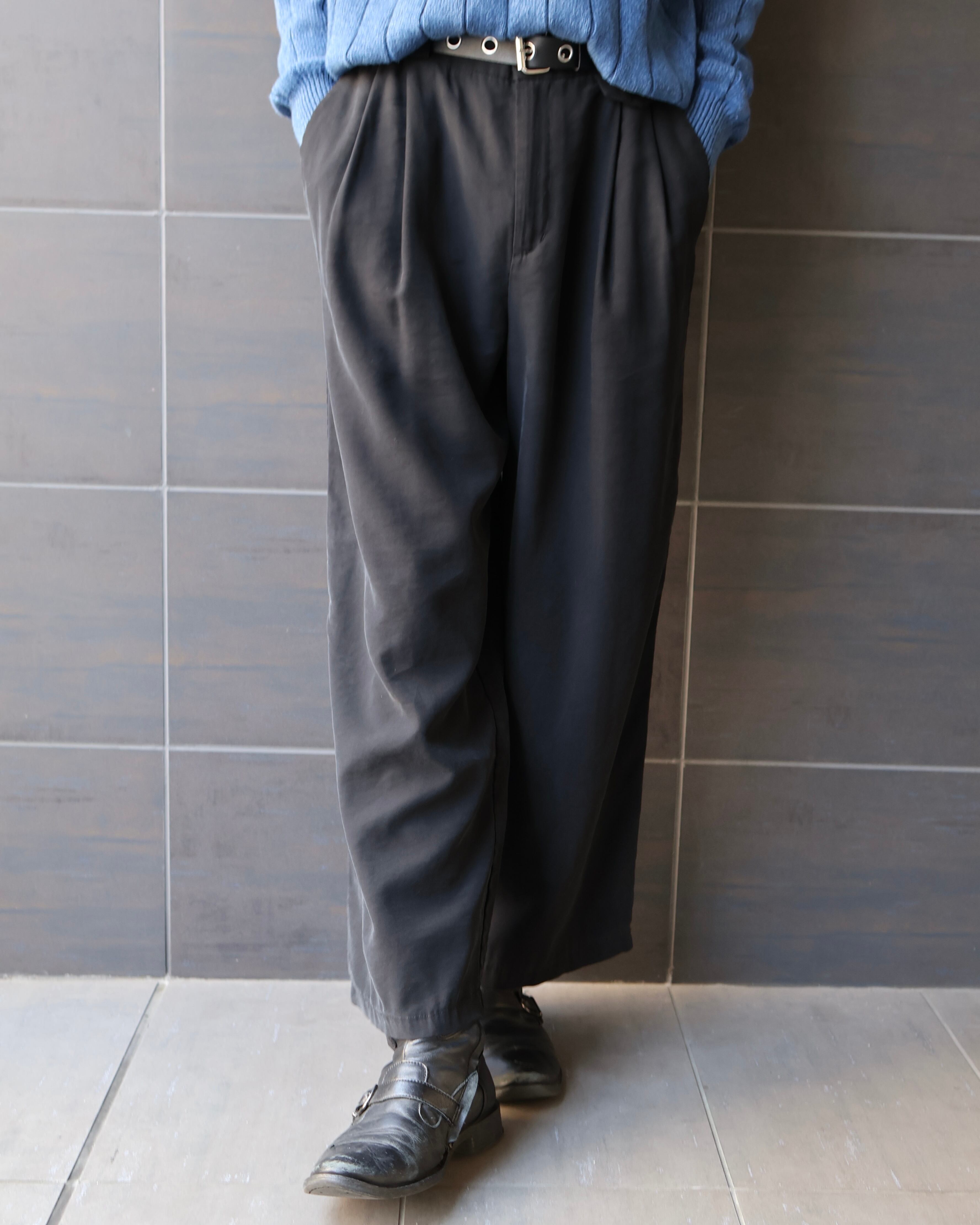 Cropped length 2-pleat wide straight slacks