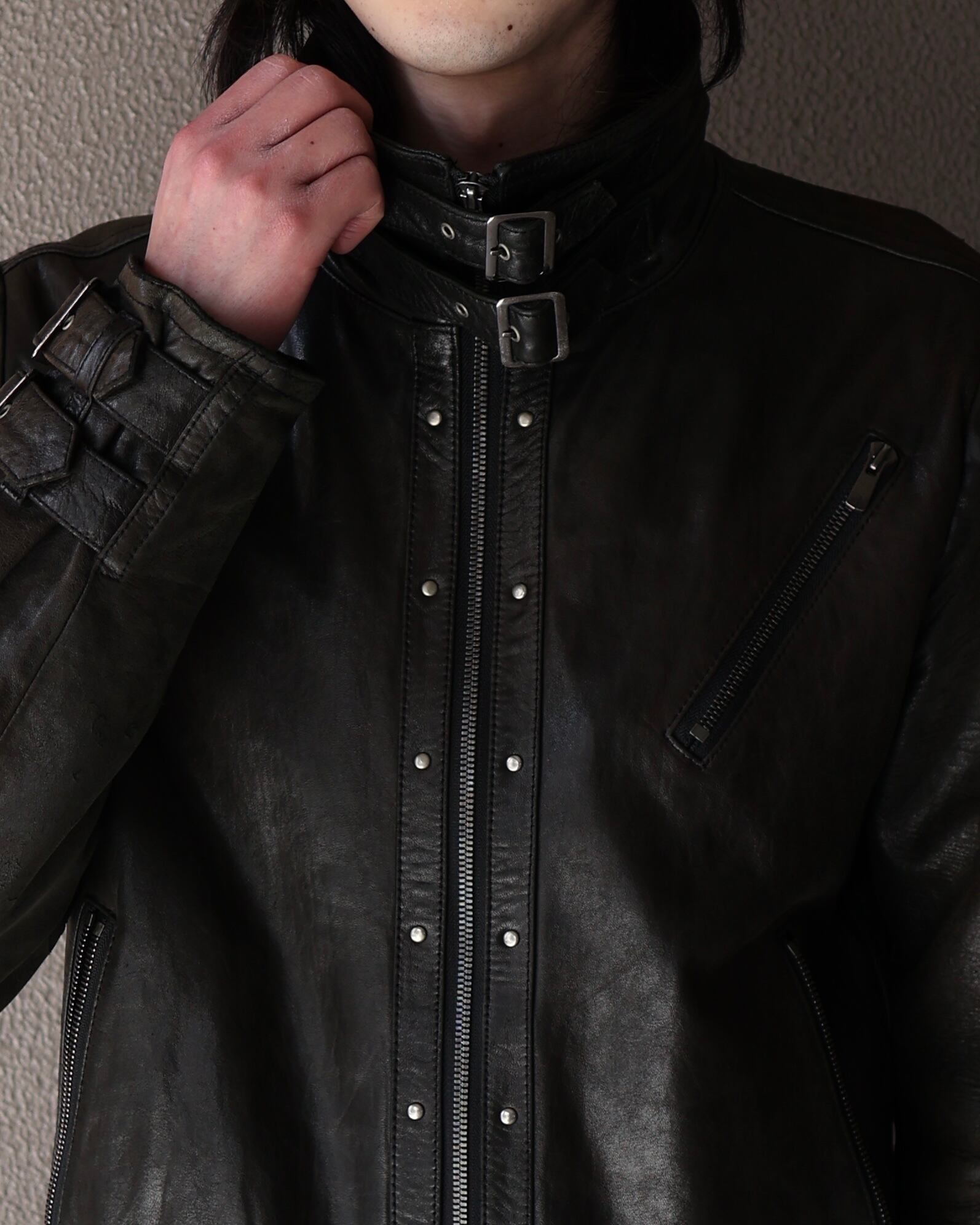 スタッズ、バックル等によるディティールが効いているため一枚で様になる1着