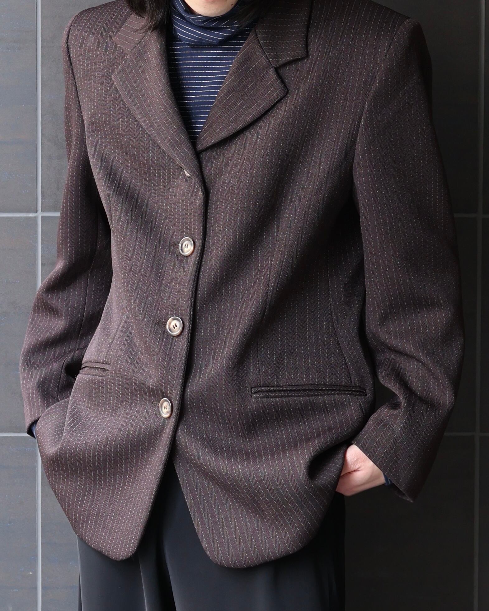 ブラウンのピンストライプテーラードジャケット