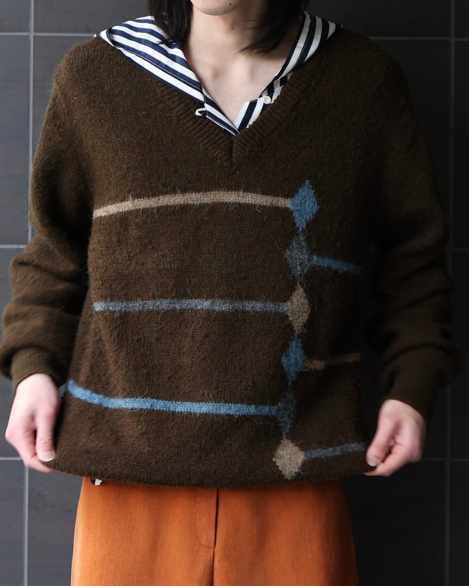 デザイン性、カラーリングが美しくvネックのため首回りでのレイヤードにも最適なアイテム。
