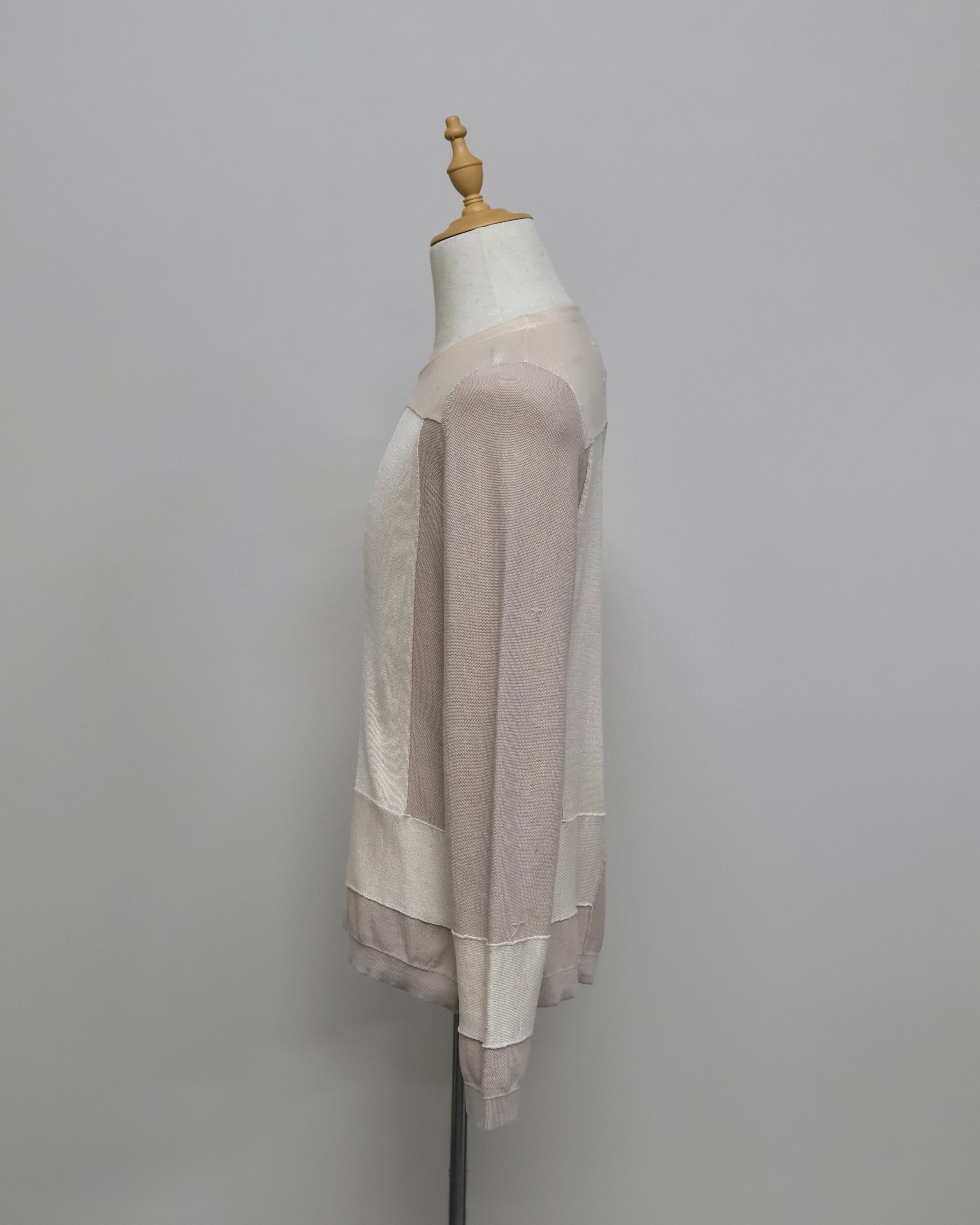 同系色で作り込まれたデザイン性が特徴的な一着です。ネックは程よく緩くサラッと一枚でもご着用頂けます。