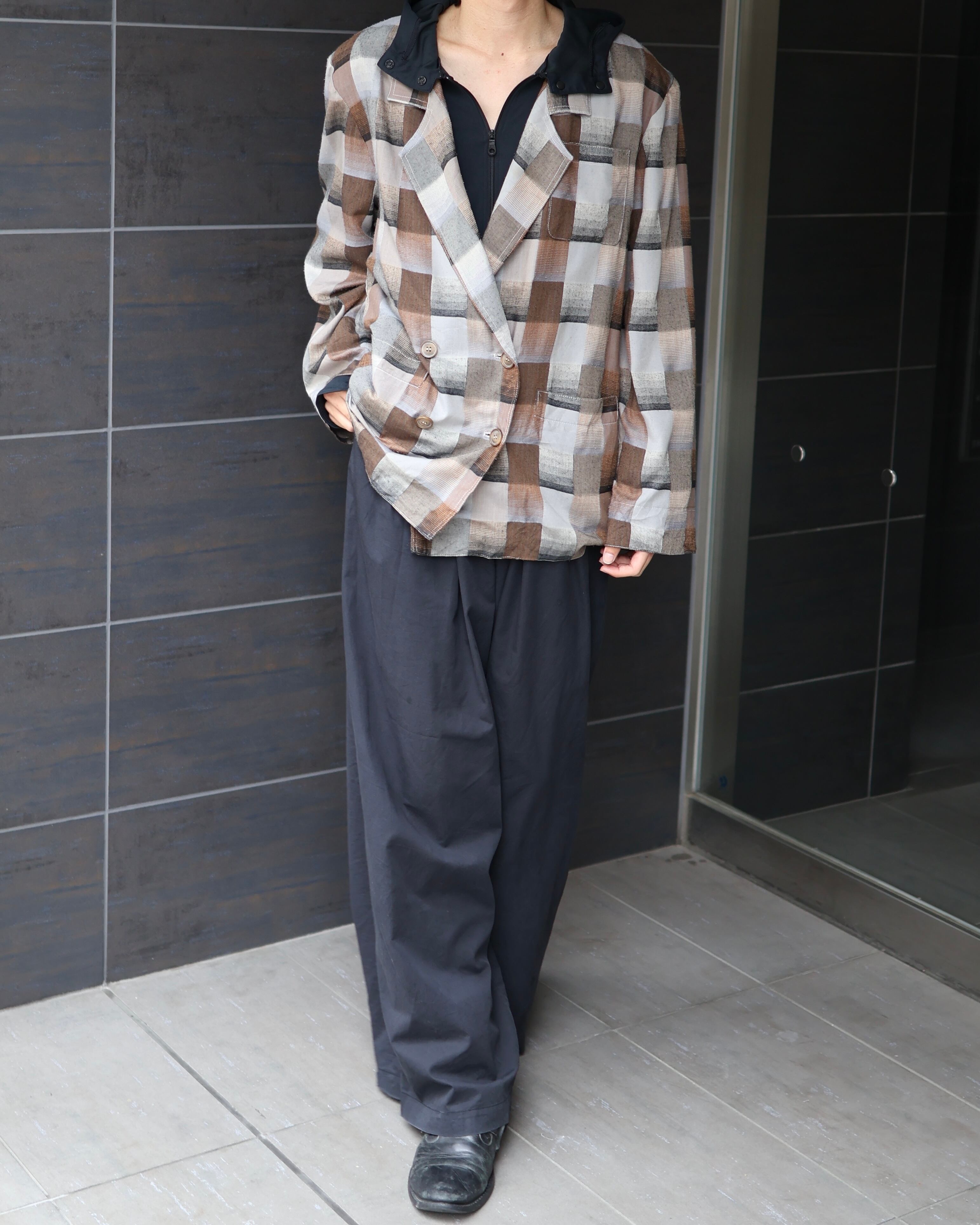ゆったりとしたサイズ感のチェック柄ダブルテーラードジャケット