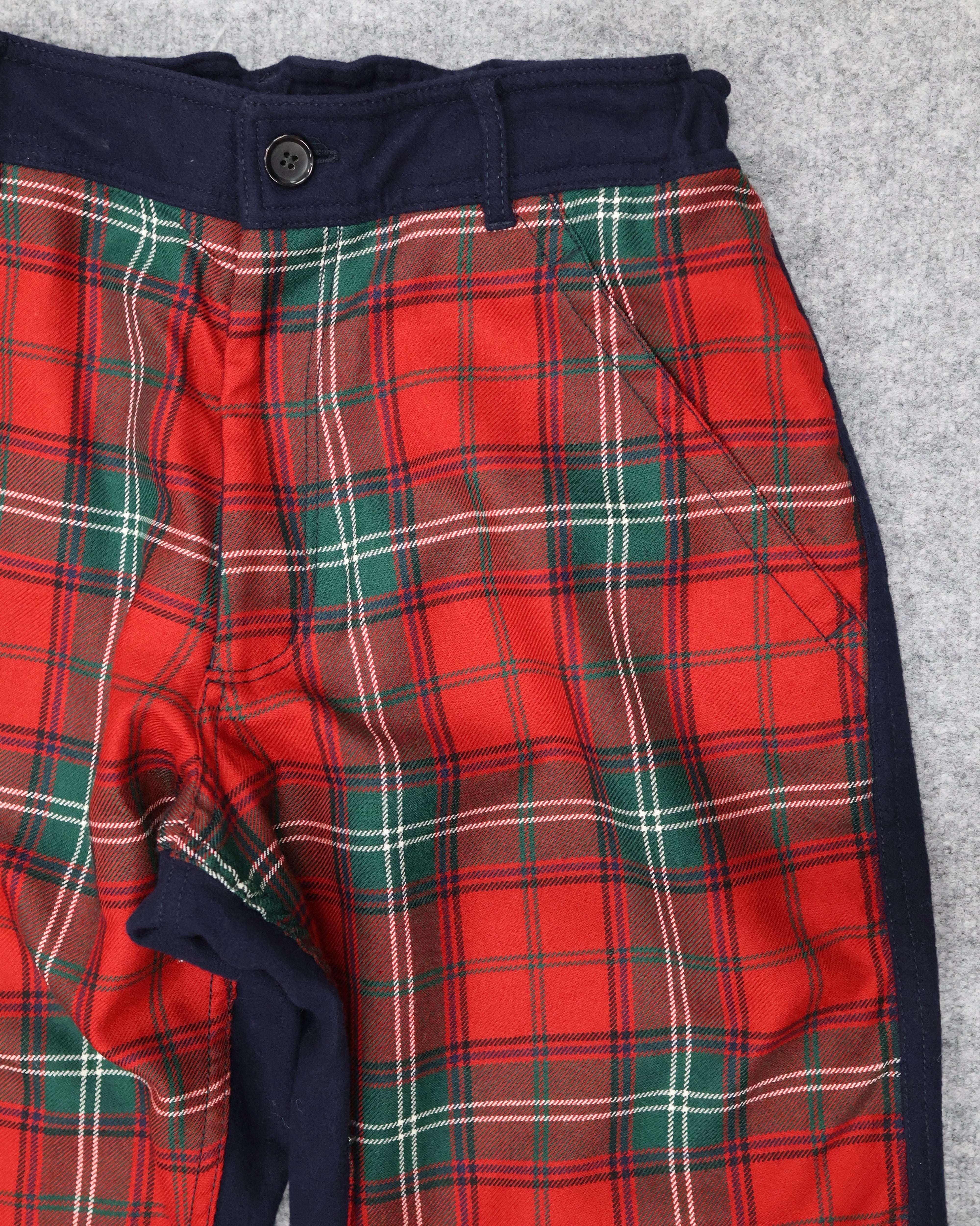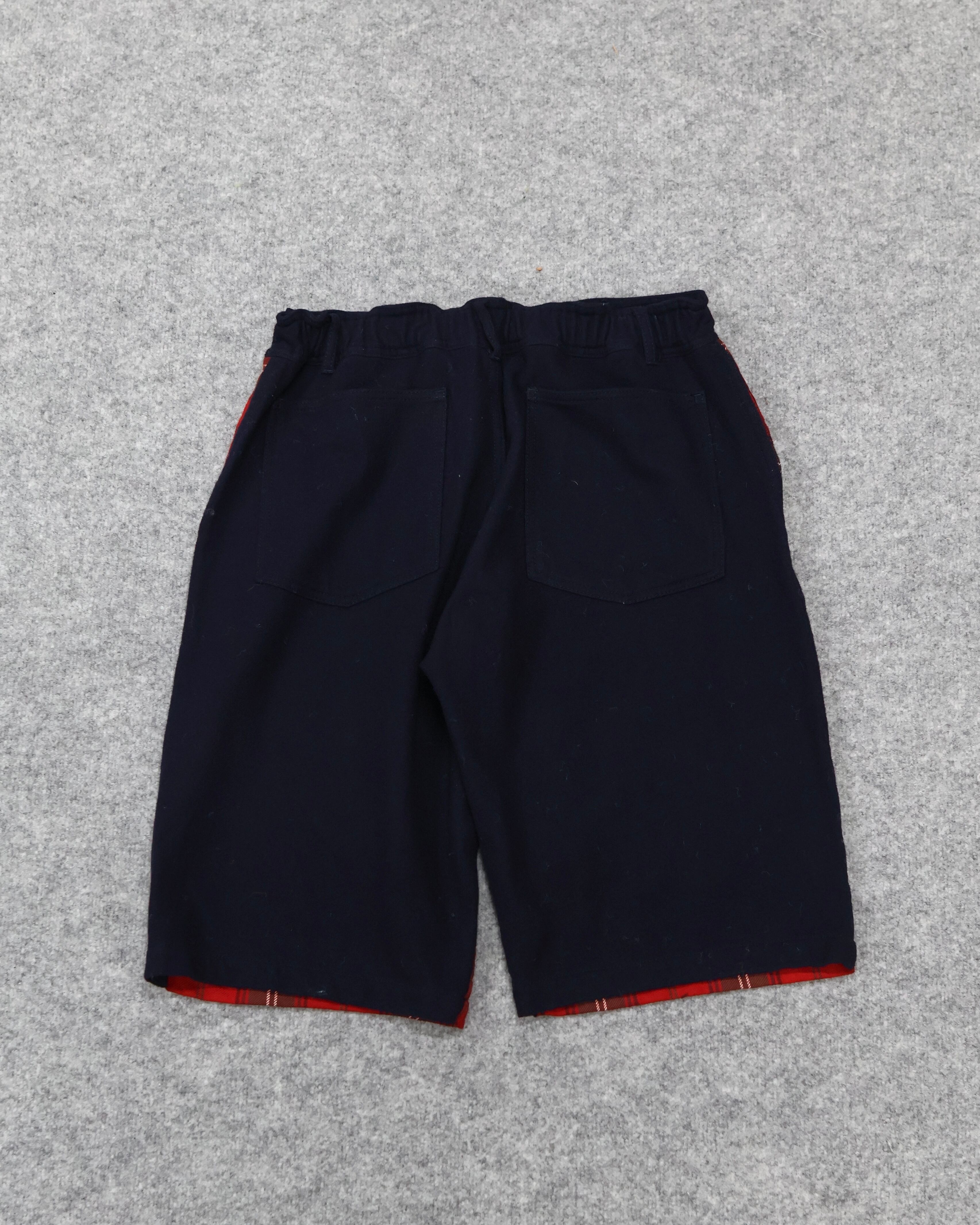 コムデギャルソンシャツのチェック切り替えショートパンツ。ウール素材でフロントのチェックが特徴的な1着。ウールの綺麗な素材感と外しにも使えるデザイン性が唯一無二のボトムとなっております。