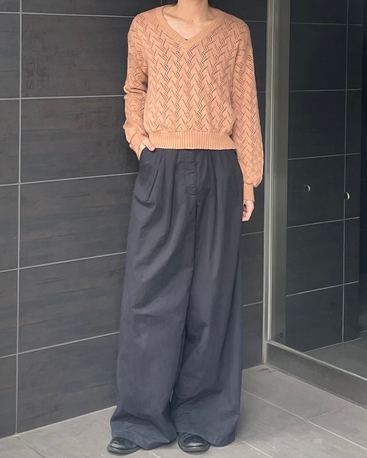 シアーの効いたカラーリングの良いvネックニット
