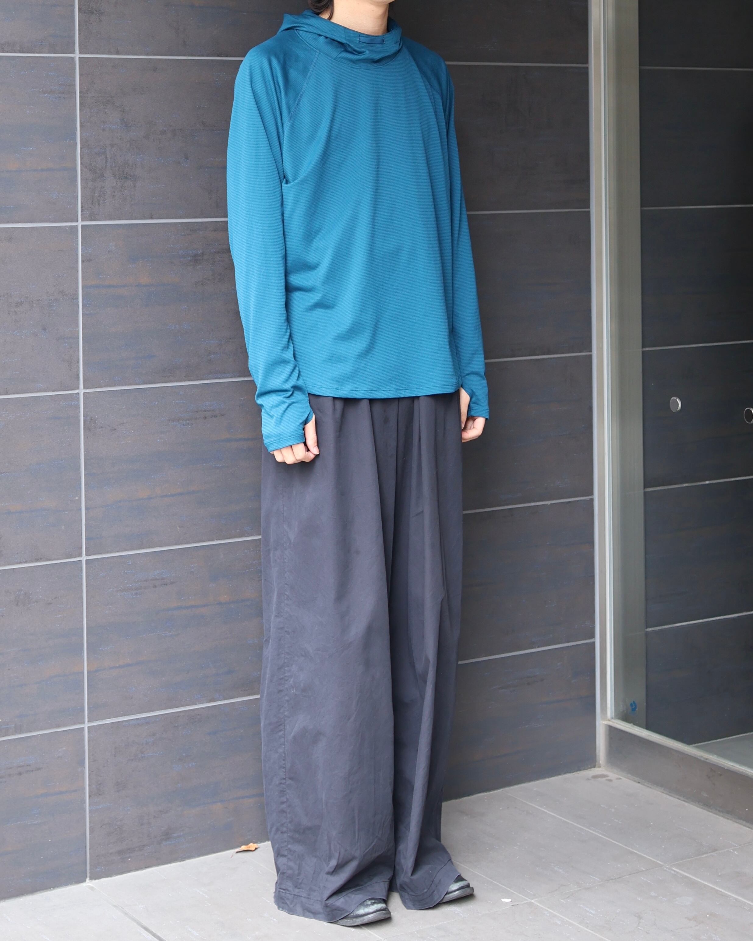 サムホールがついているため袖口周りでのレイヤードにも最適でさまざまな着こなしが可能