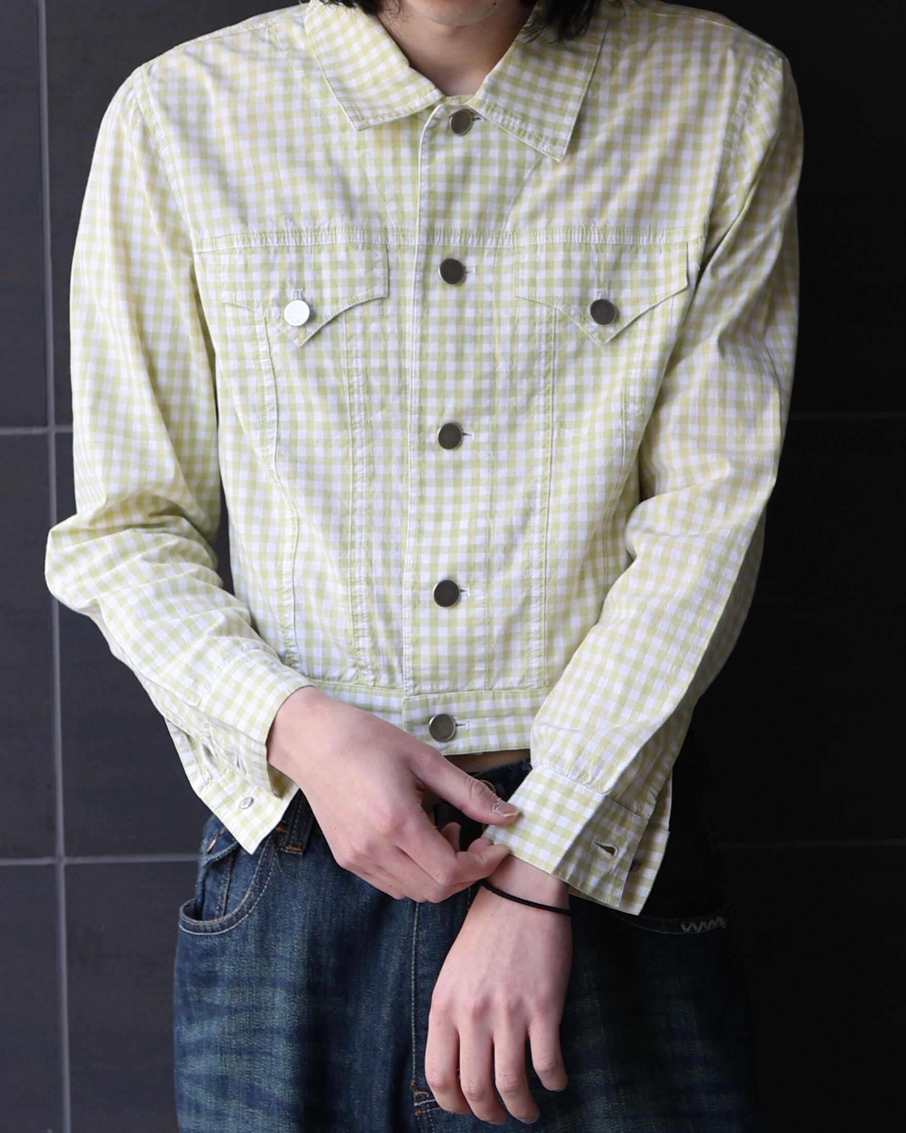短丈のギンガムチェックシャツブルゾン
