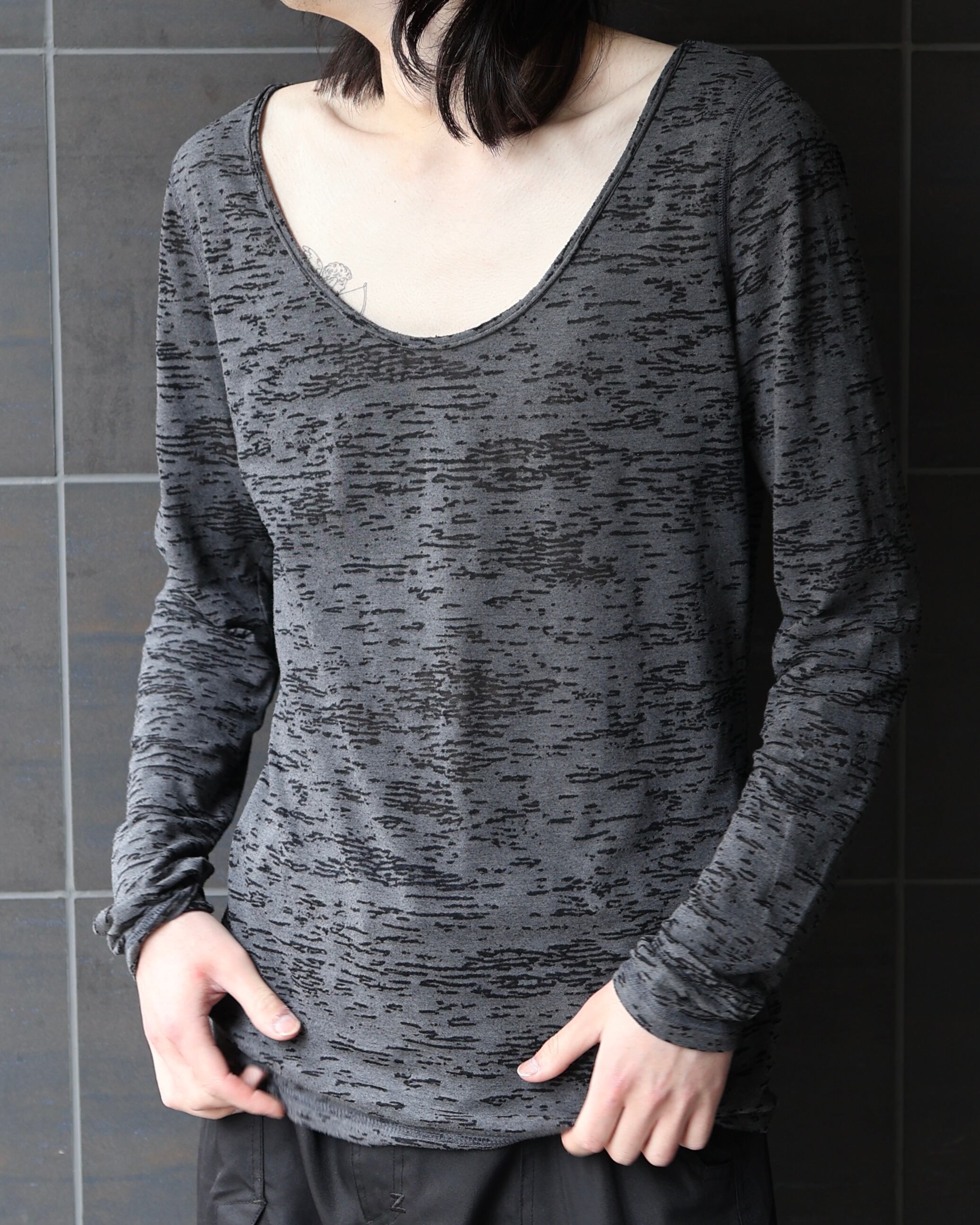 ゆるいネックのため肌見せによる抜け感ができることによってモードな着こなしをしても様になるアイテム