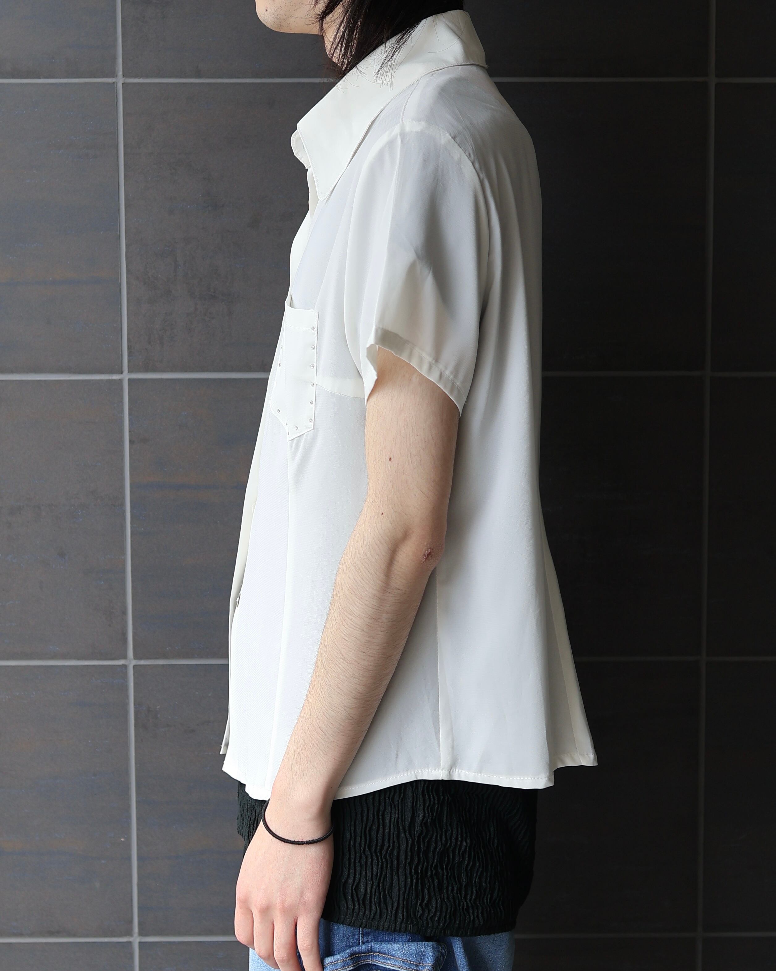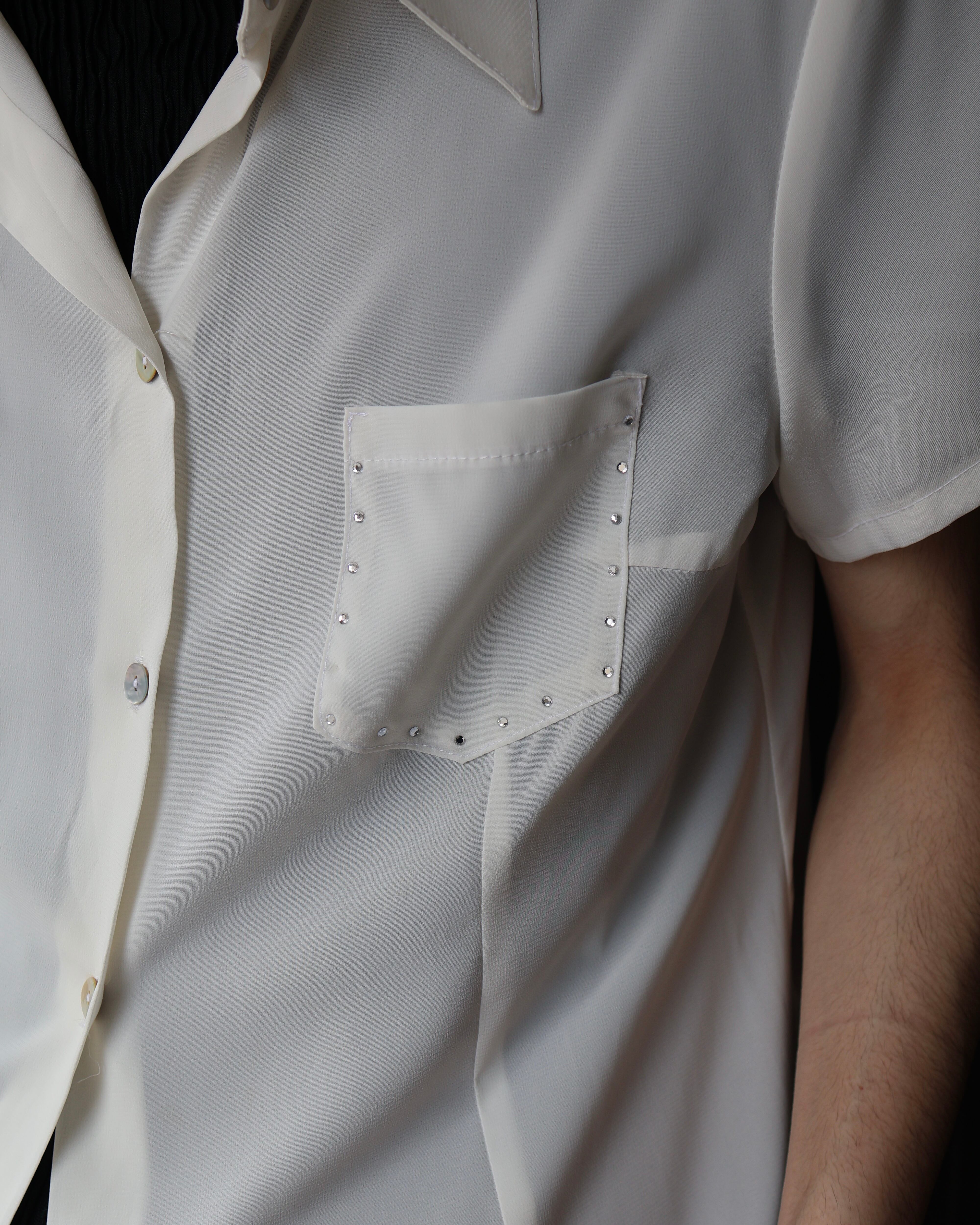 ラインストーンによるデザインが特徴的なシアー半袖シャツ