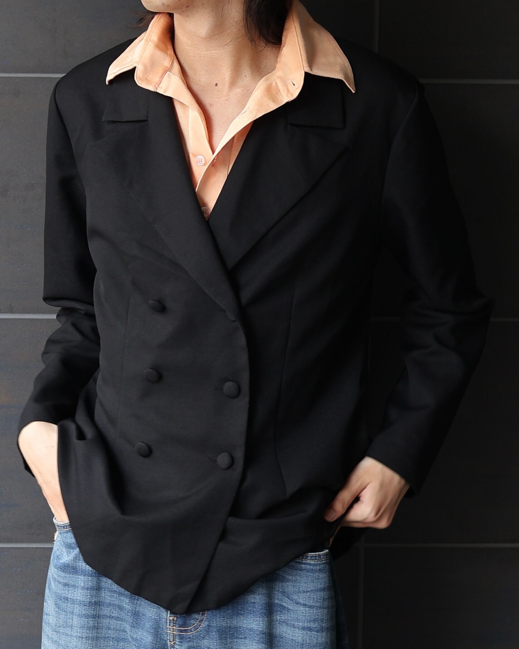 ベーシックなダブルブレステッドテーラードジャケット
