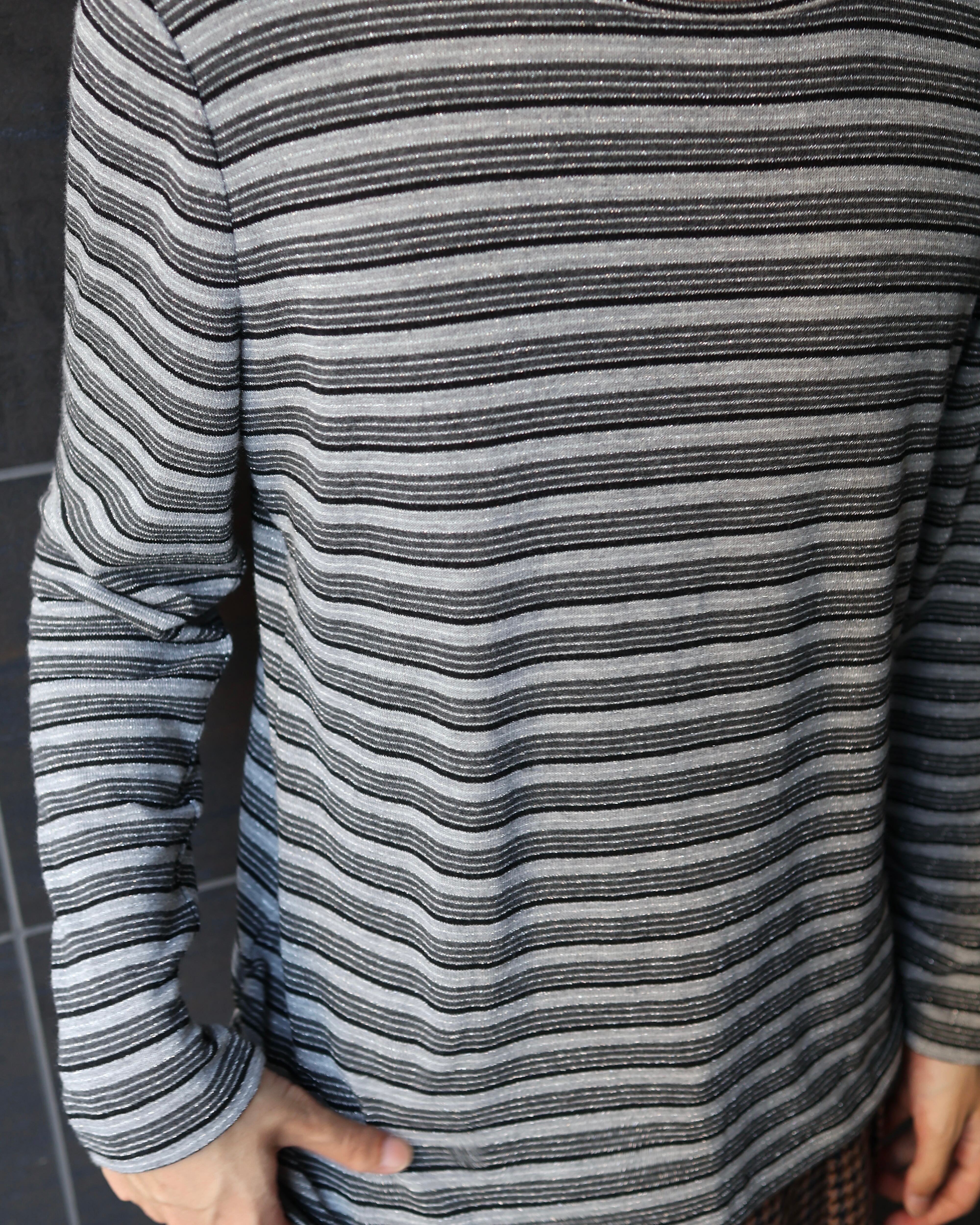 ラメが入っているボーダーデザインの長袖トップ