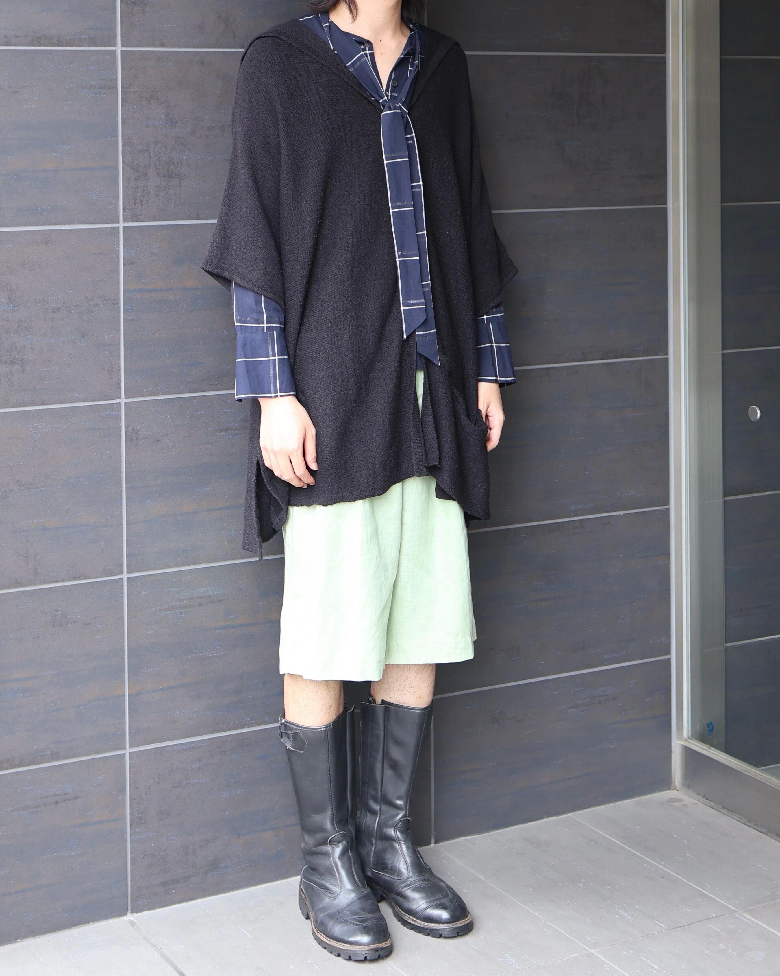 長い襟によってさまざまな着こなしが可能なチェックシャツ