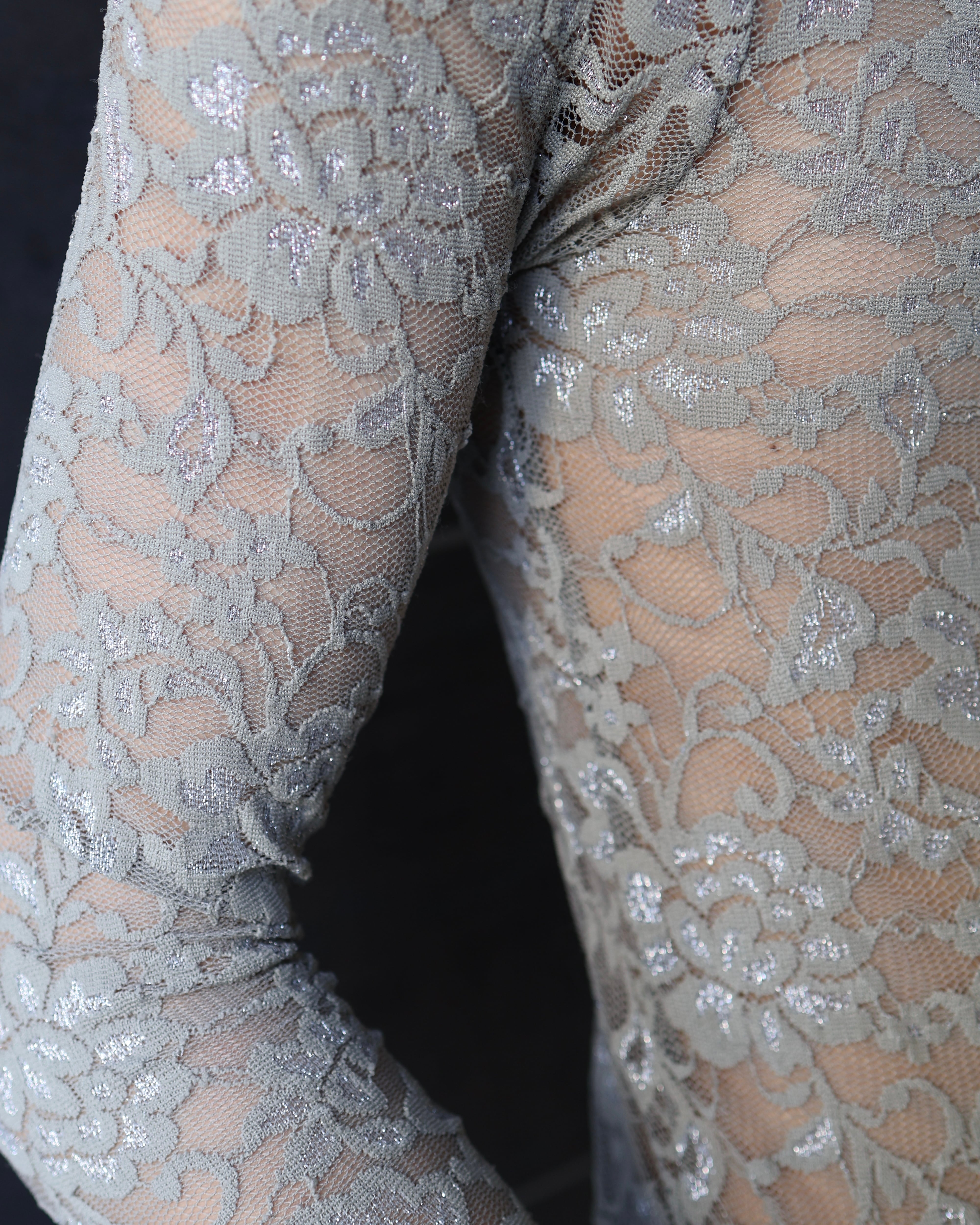 High neck glitter lace second skin