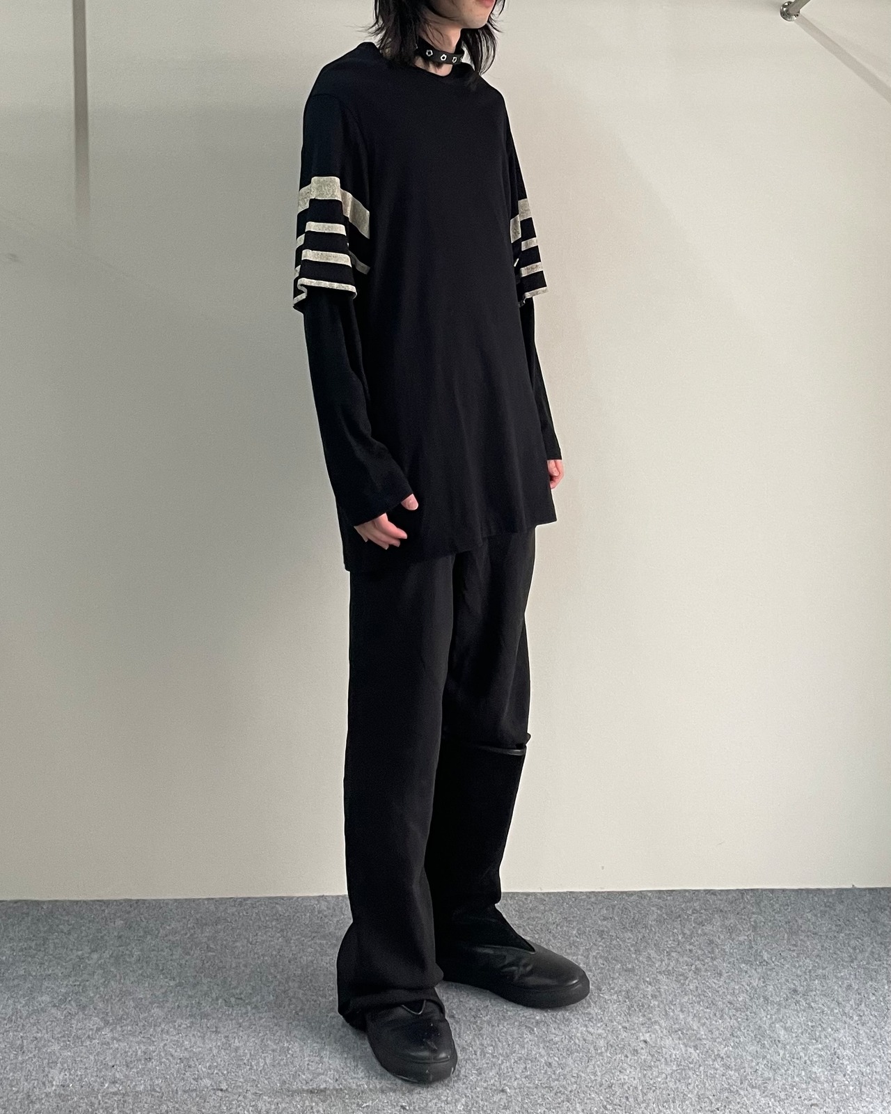 ヨウジヤマモトプールオムのオーバーサイズラインカットソー