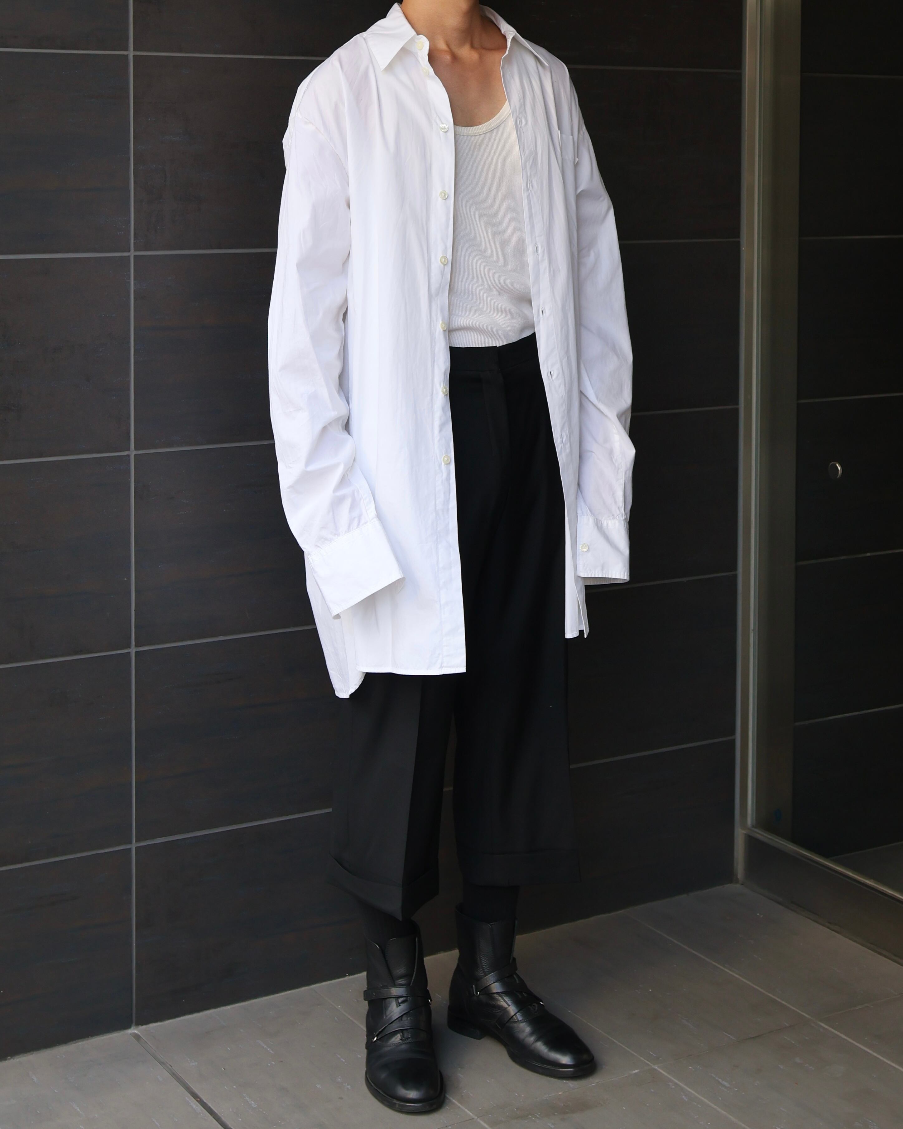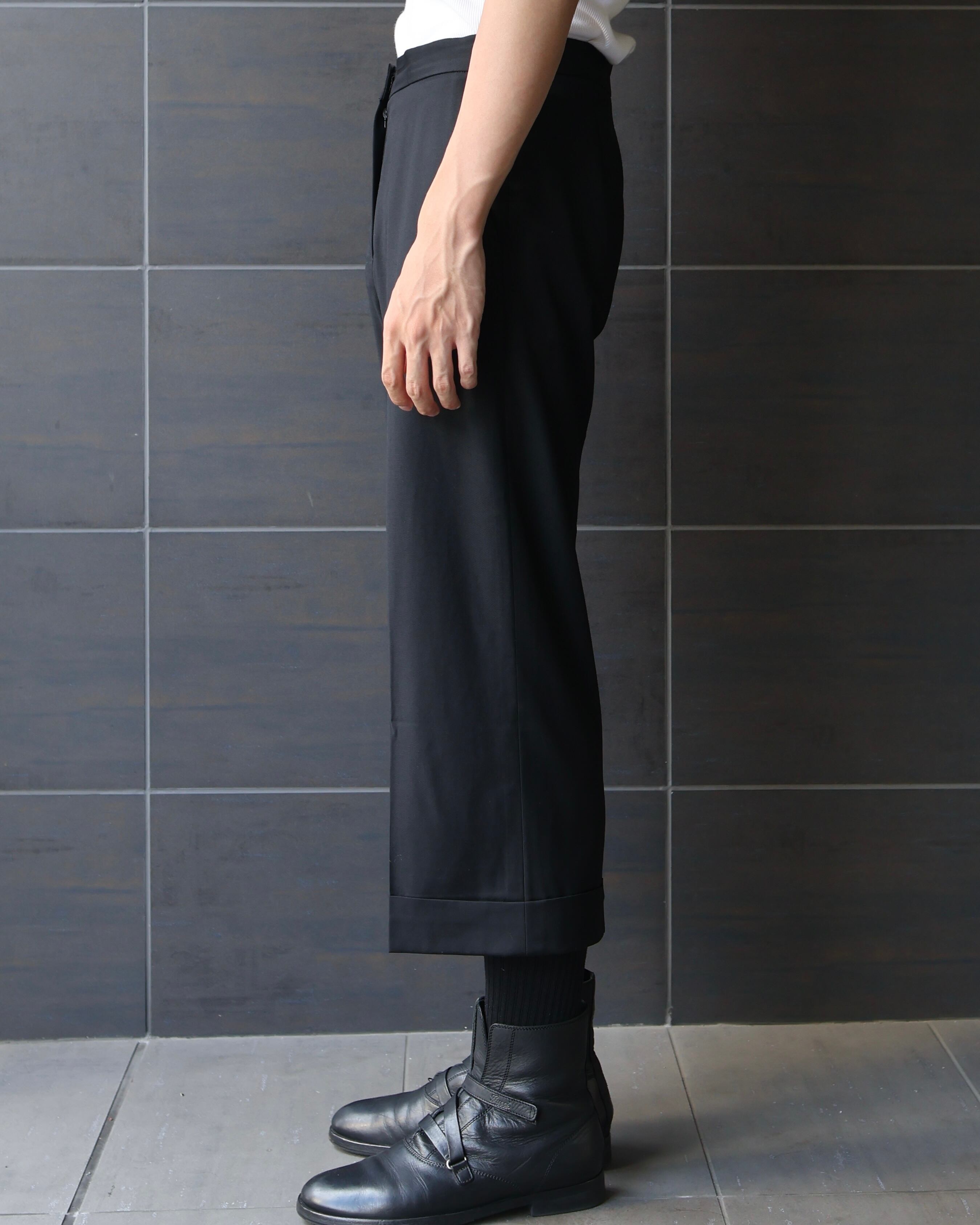 カジュアルな8部丈パンツの作りの中にvirgin wool