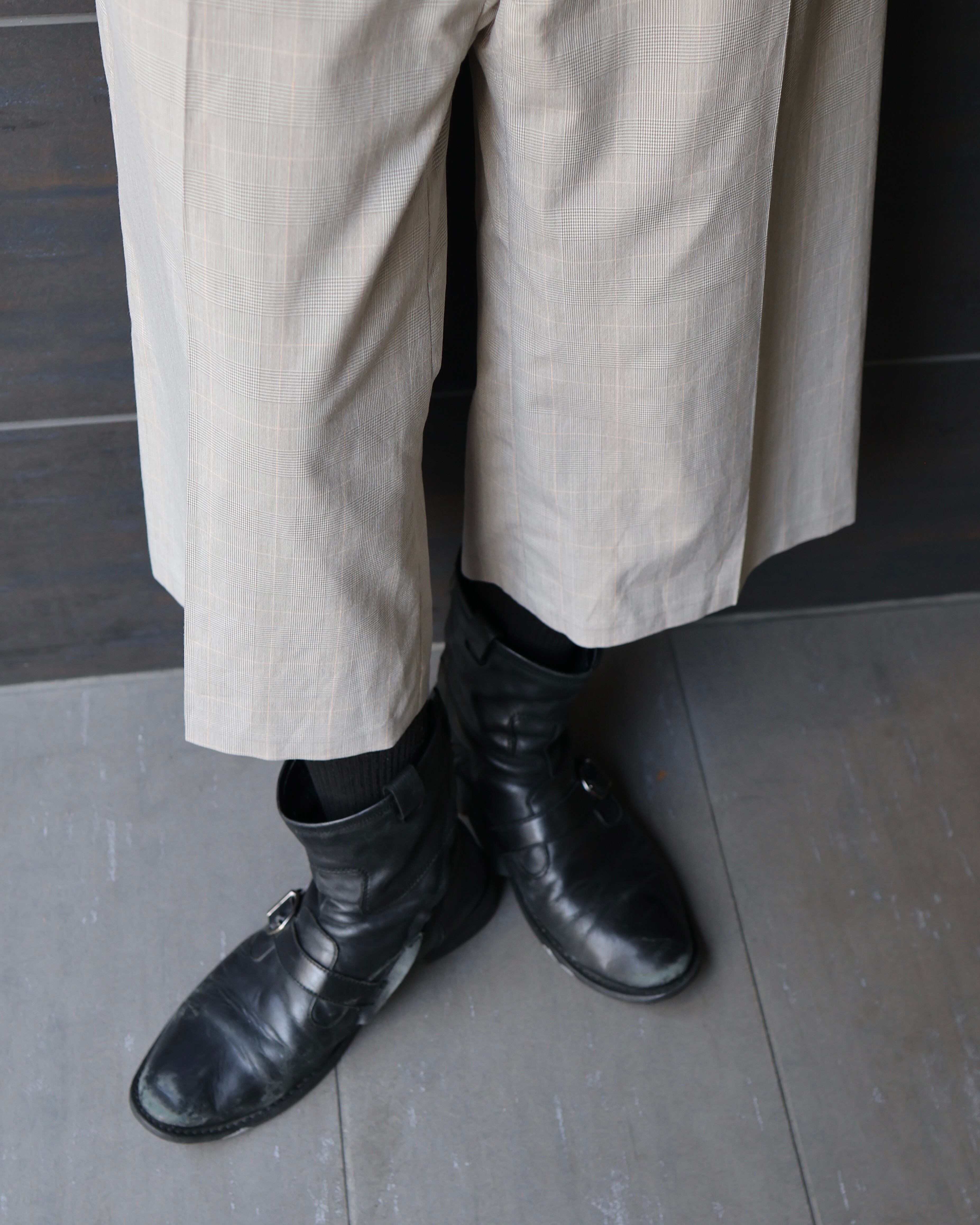 シルエットが美しくデザイン性が高いためさまざまなスタイリングに落とし込むことが可能でハイカットブーツやハイソックスとの相性も良いアイテム。