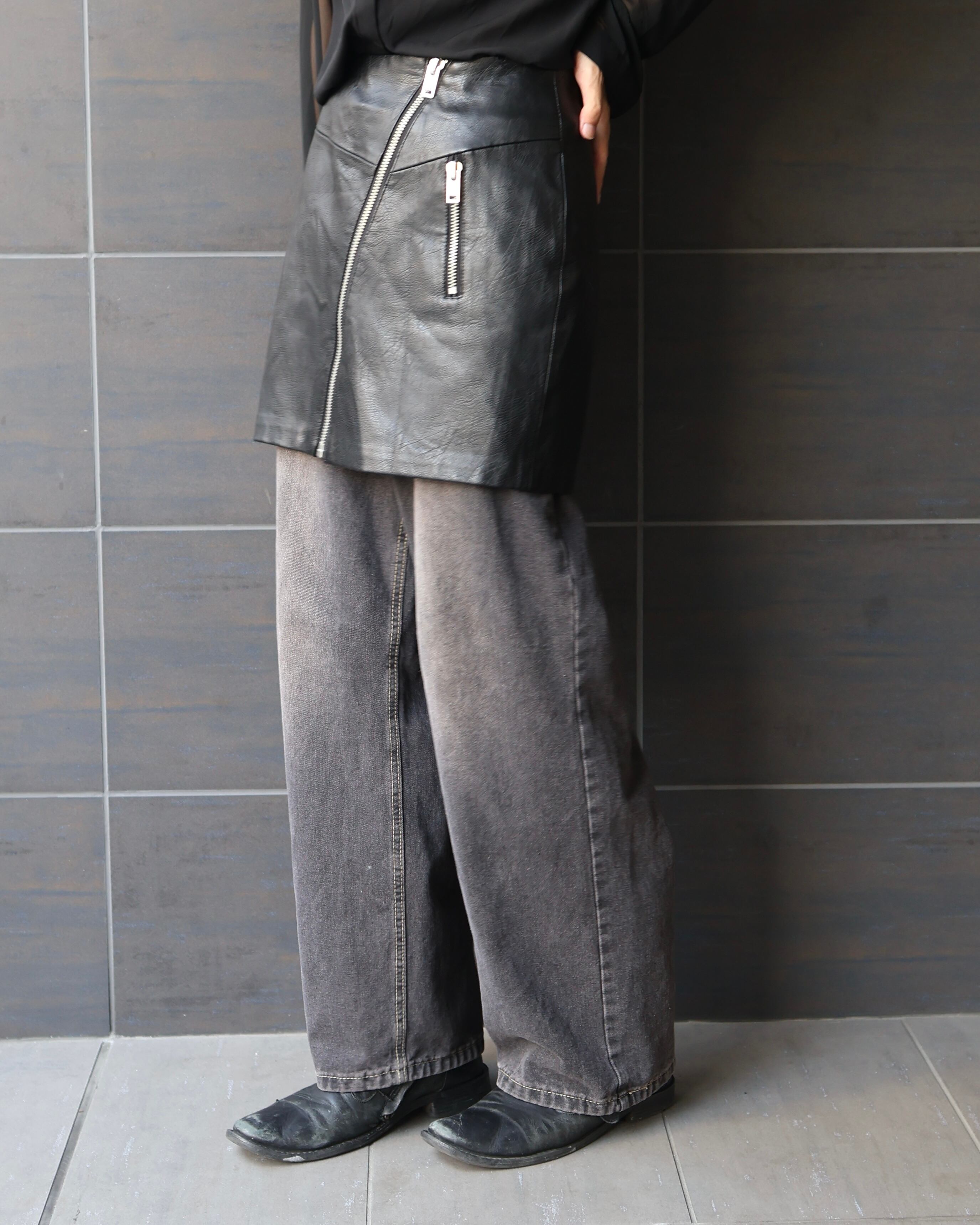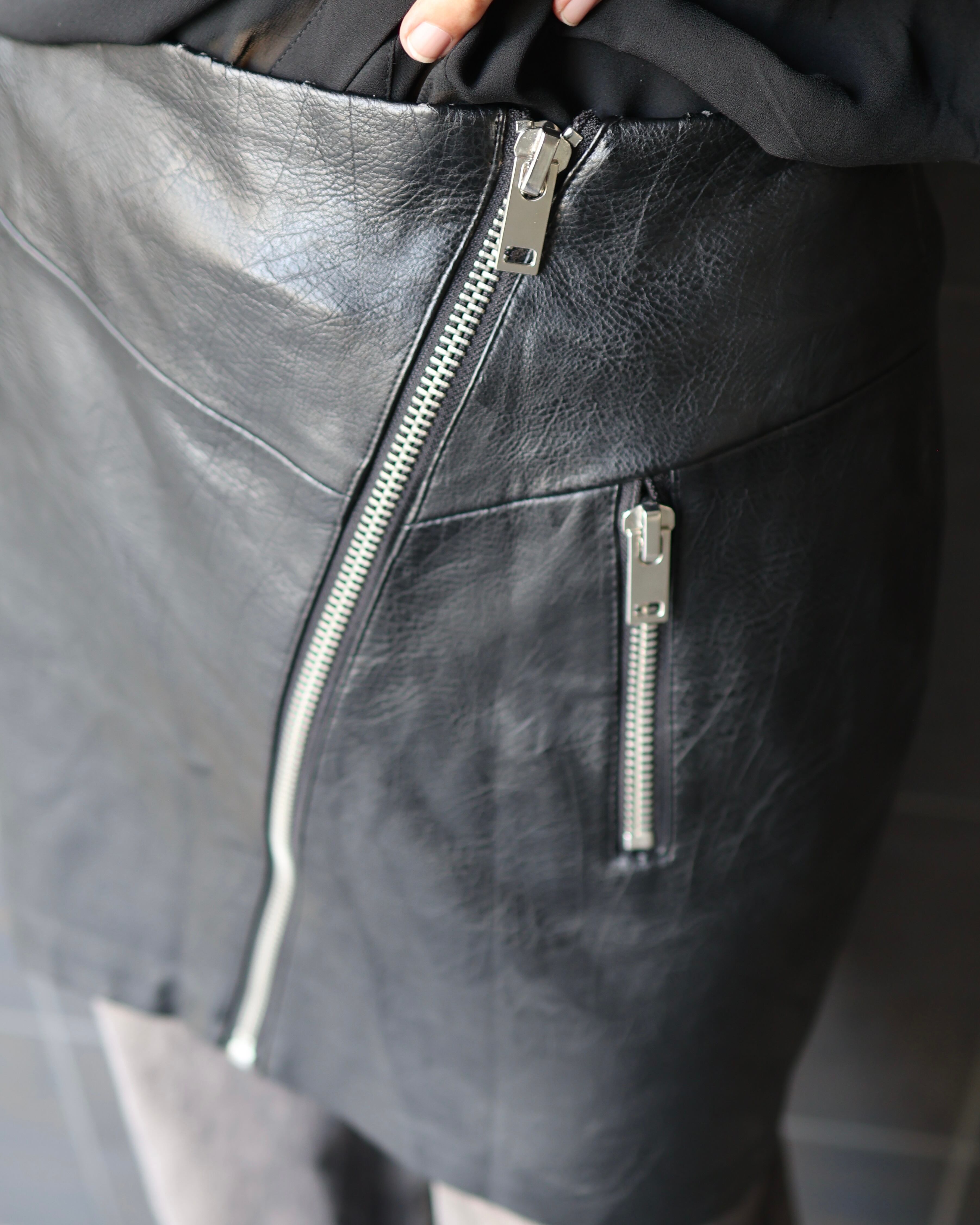 ジップアップのレザースカート