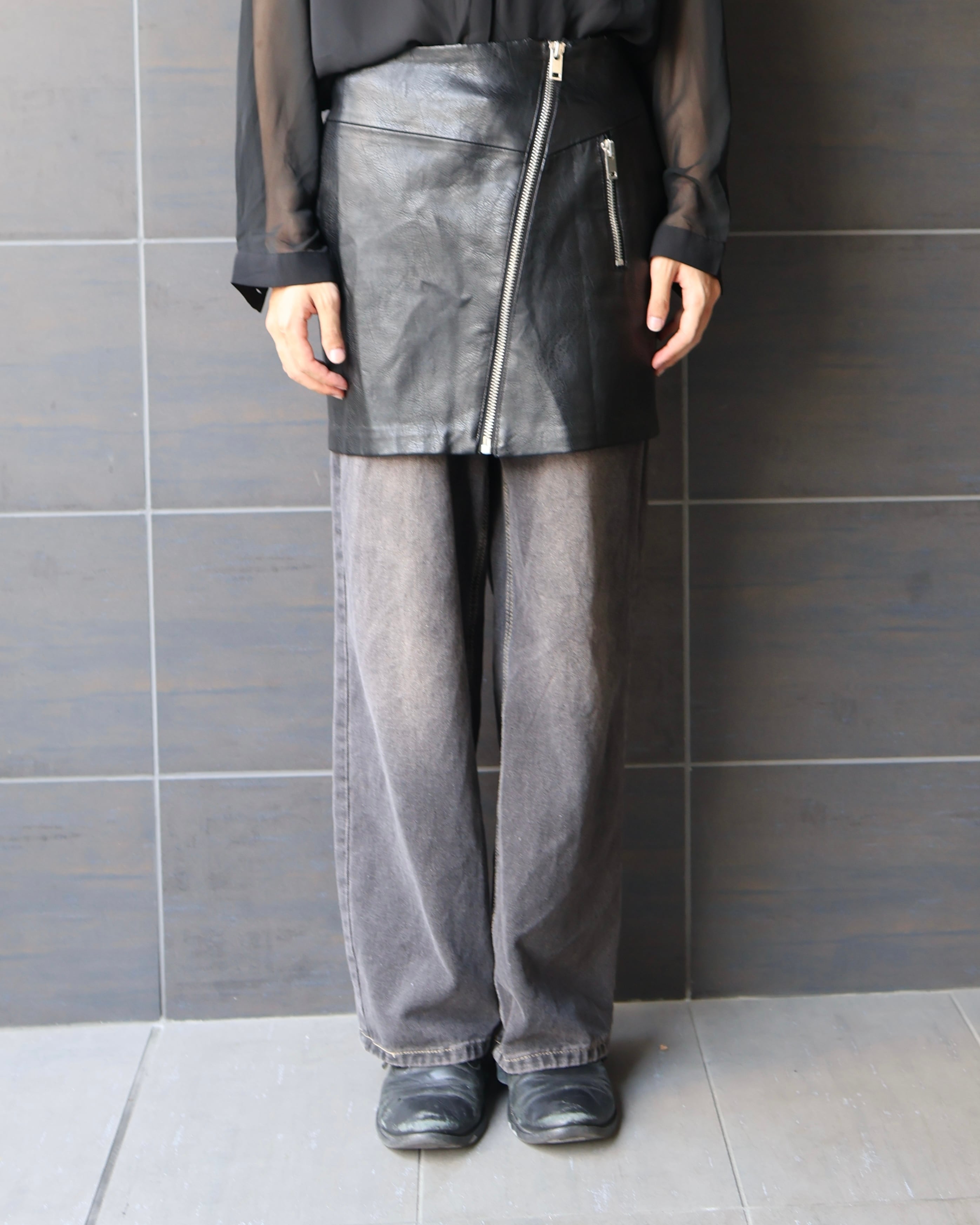 Zip-up leather skirt