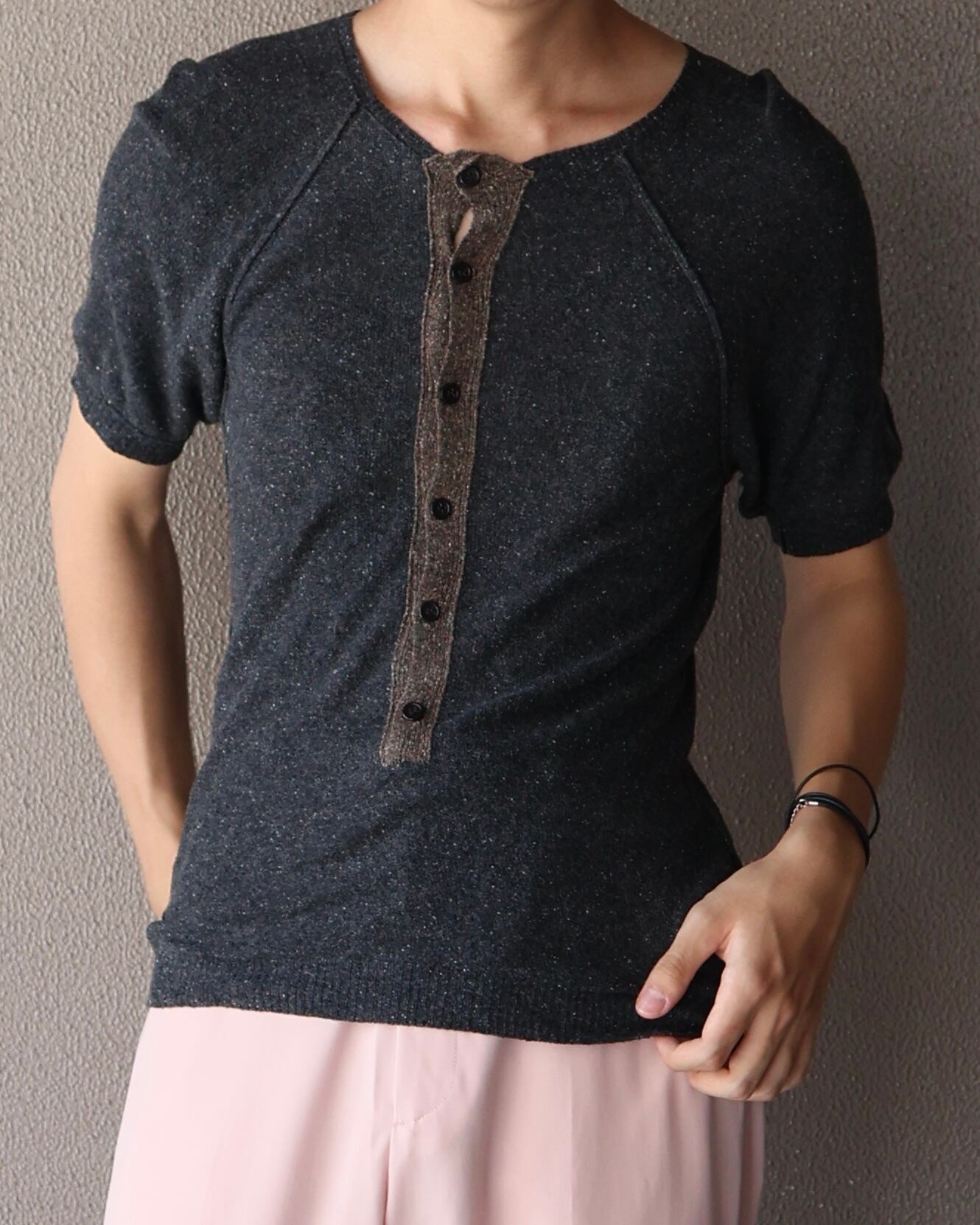 【y's】Henley neck knit top