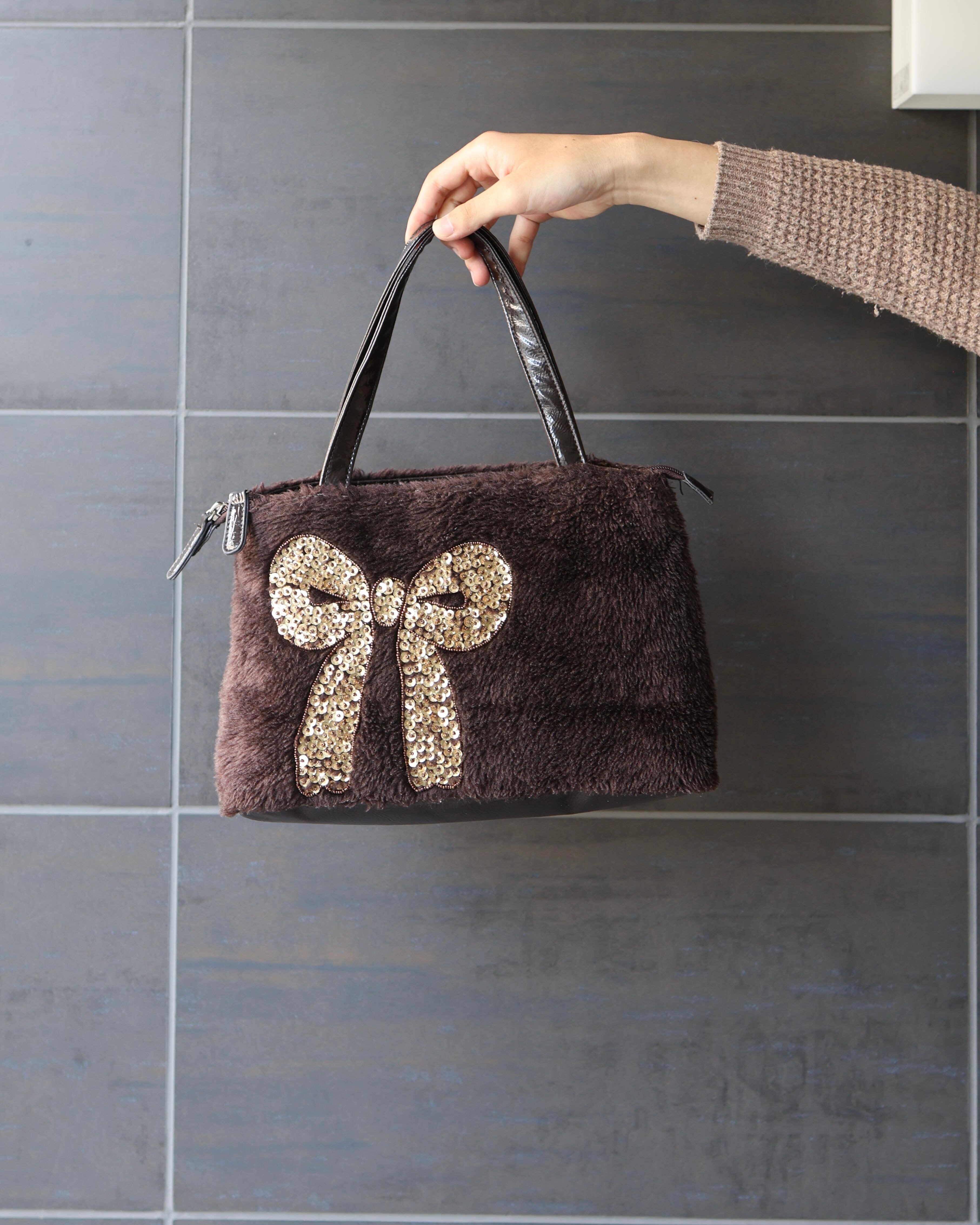 スパンコールによるデザイン性とボア素材によって特徴的なバッグ