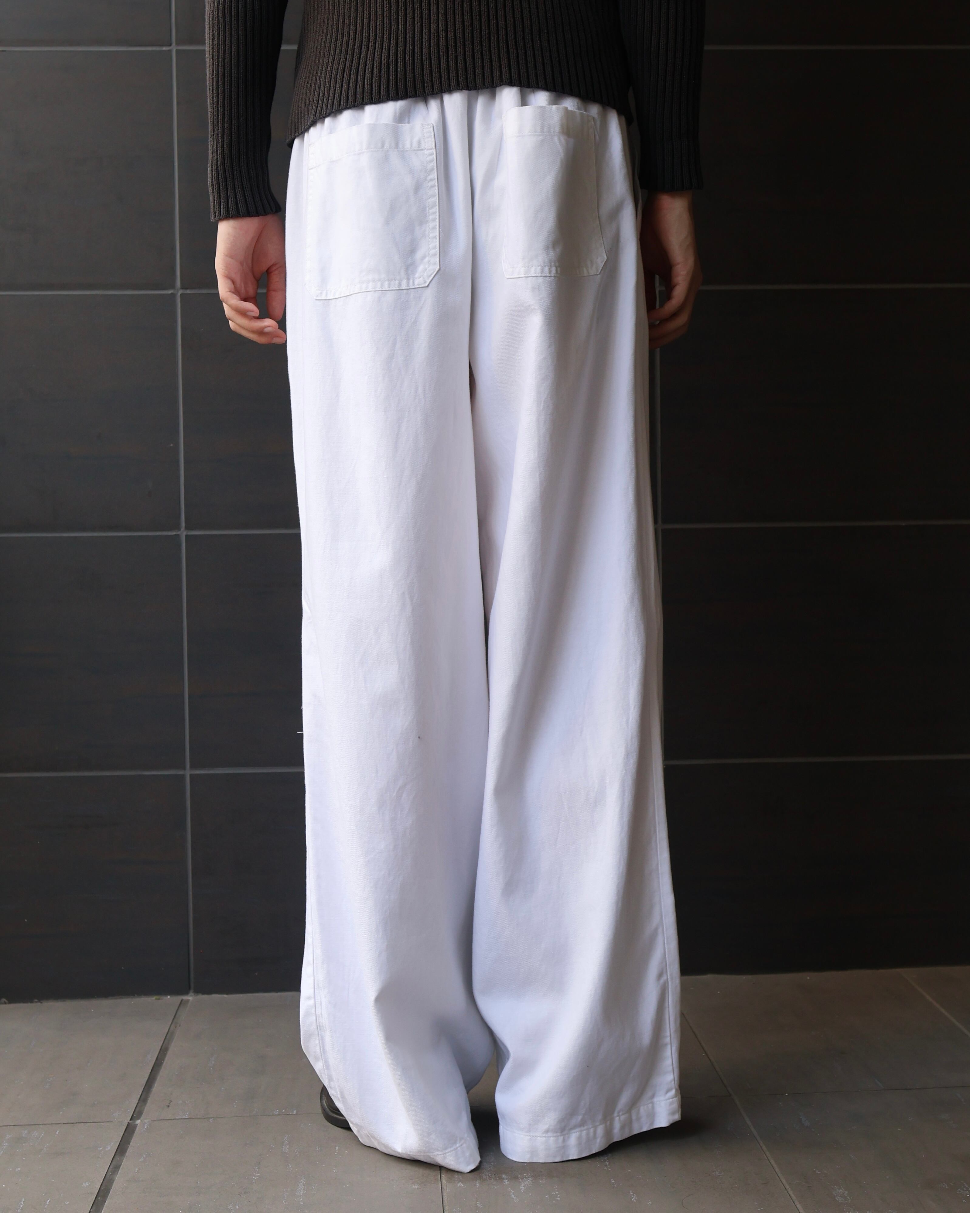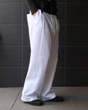 ダーツによる立体的なシルエットが特徴的なワイドチノパンツ