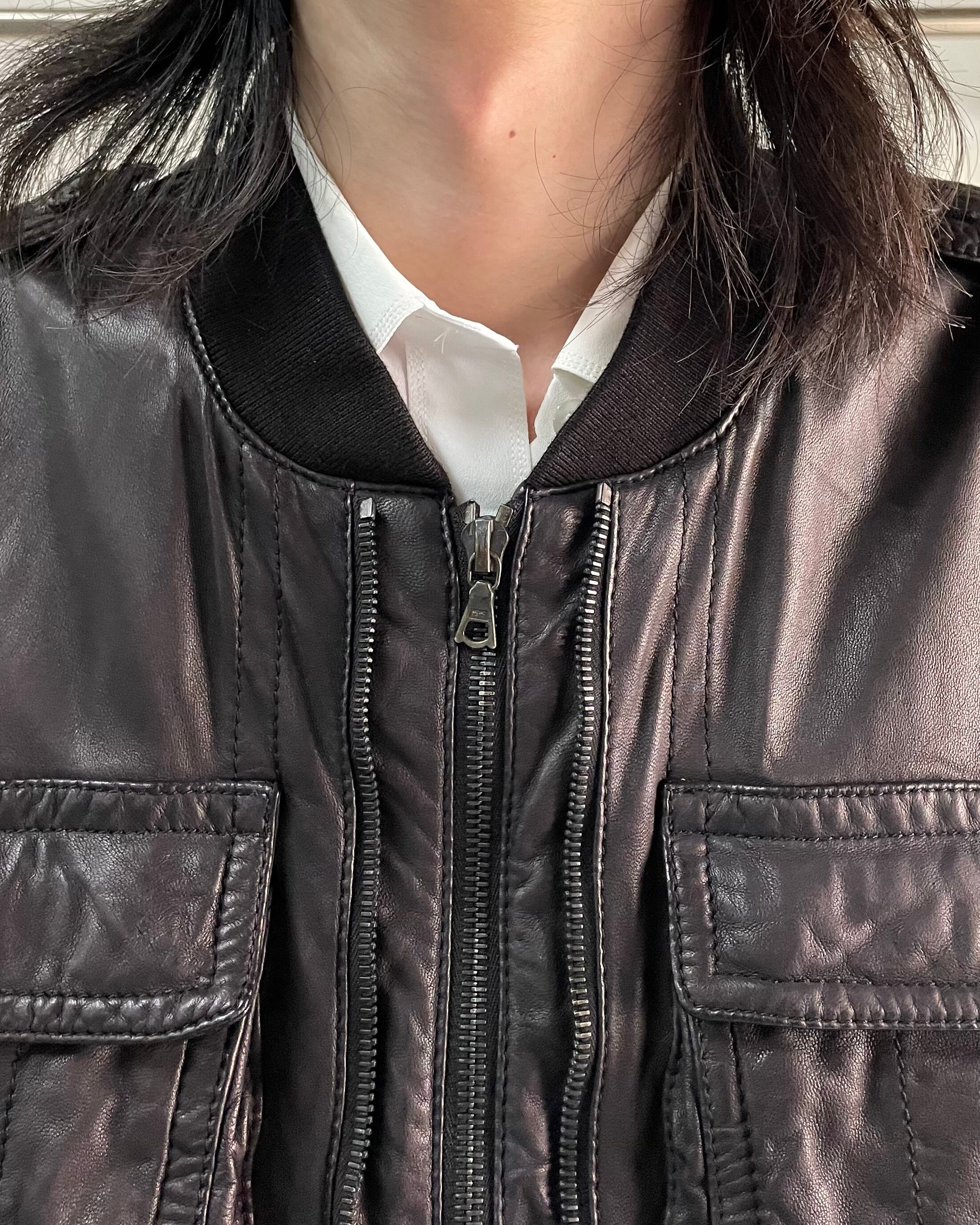 フロント部分のフェイクジップなど、デザインとしても遊び心のある1着。