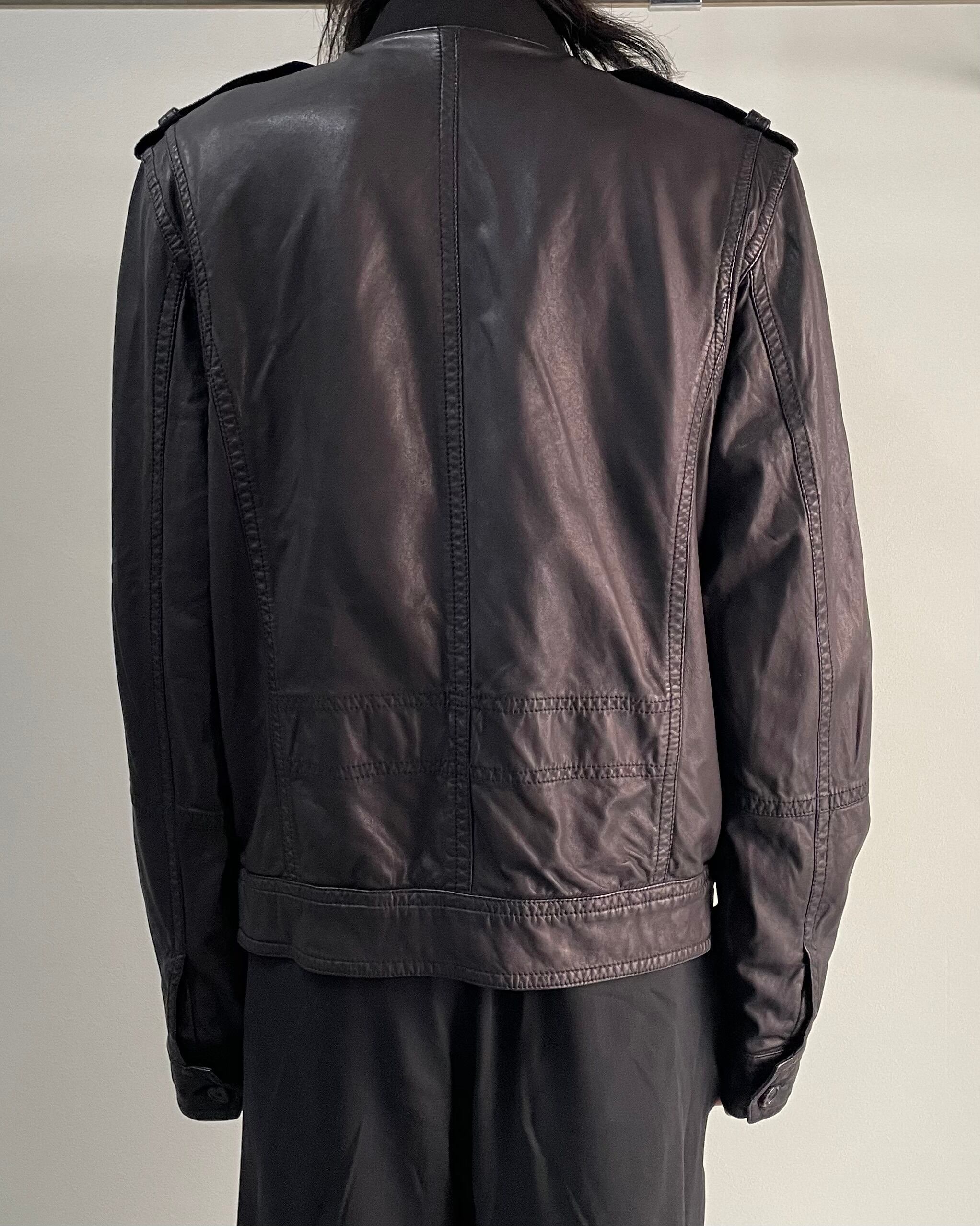 エポレットや、マルチポケットなど、ミリタリー要素がありながらも落ち着いたカラーリングによってシックな印象も引き出しています。