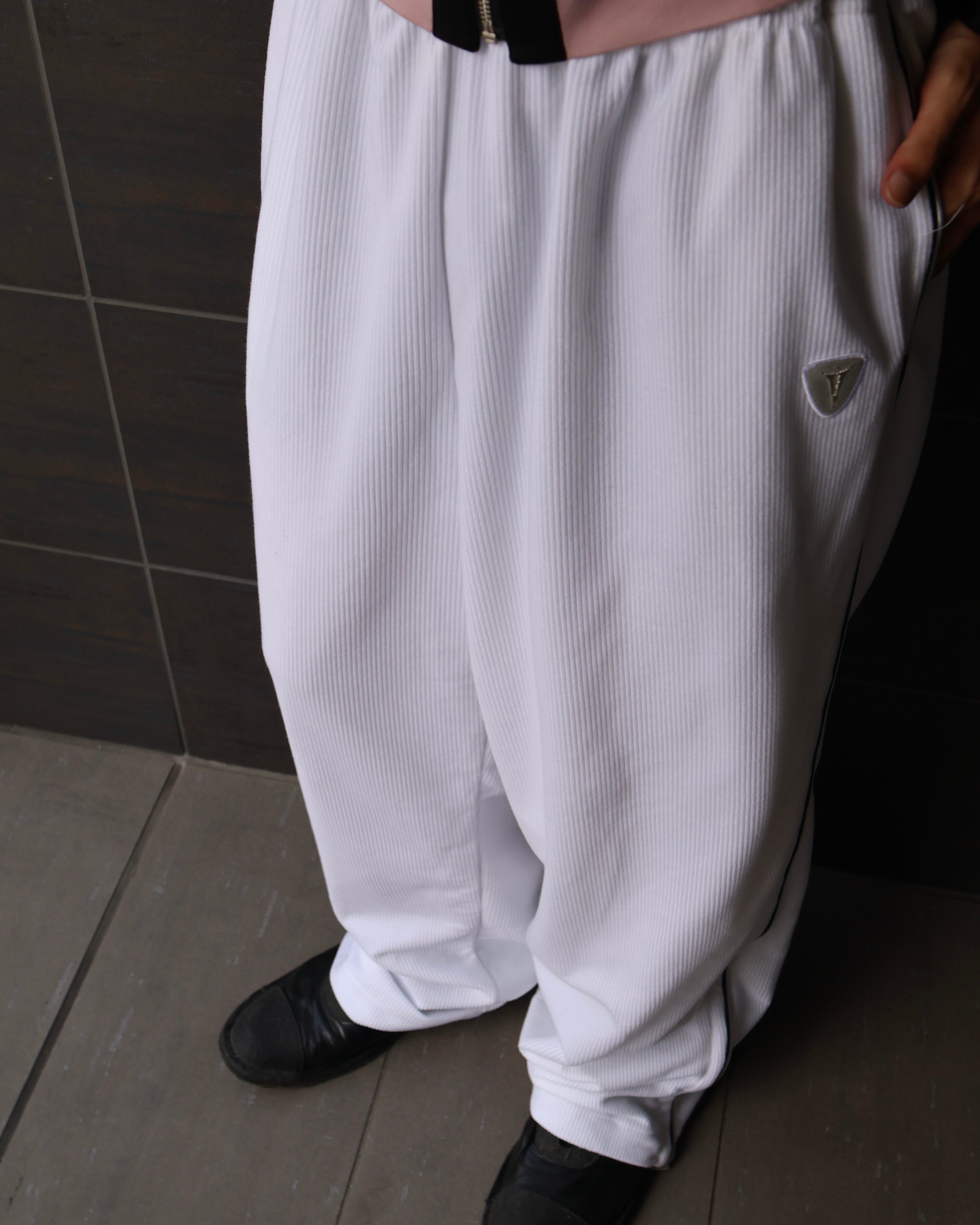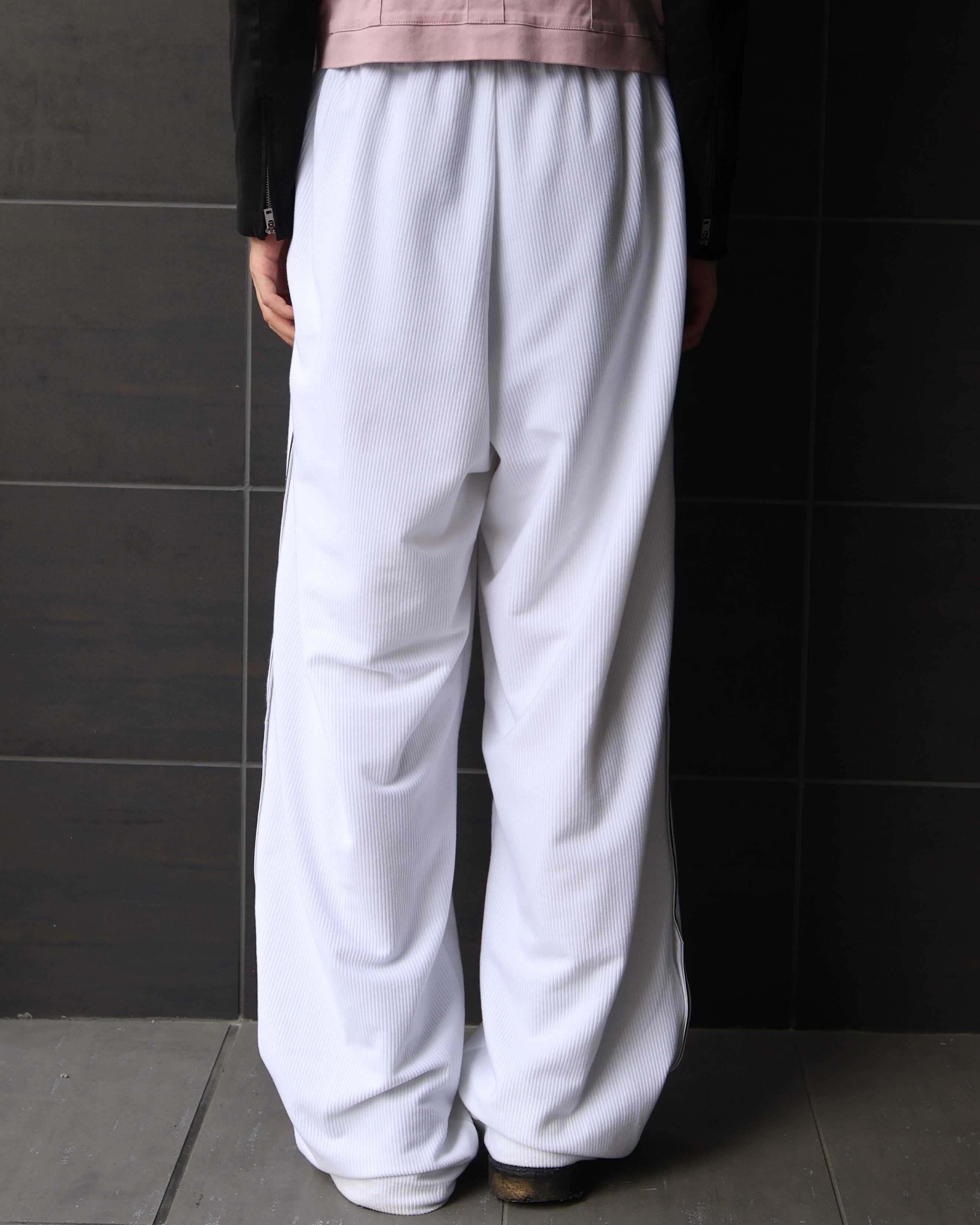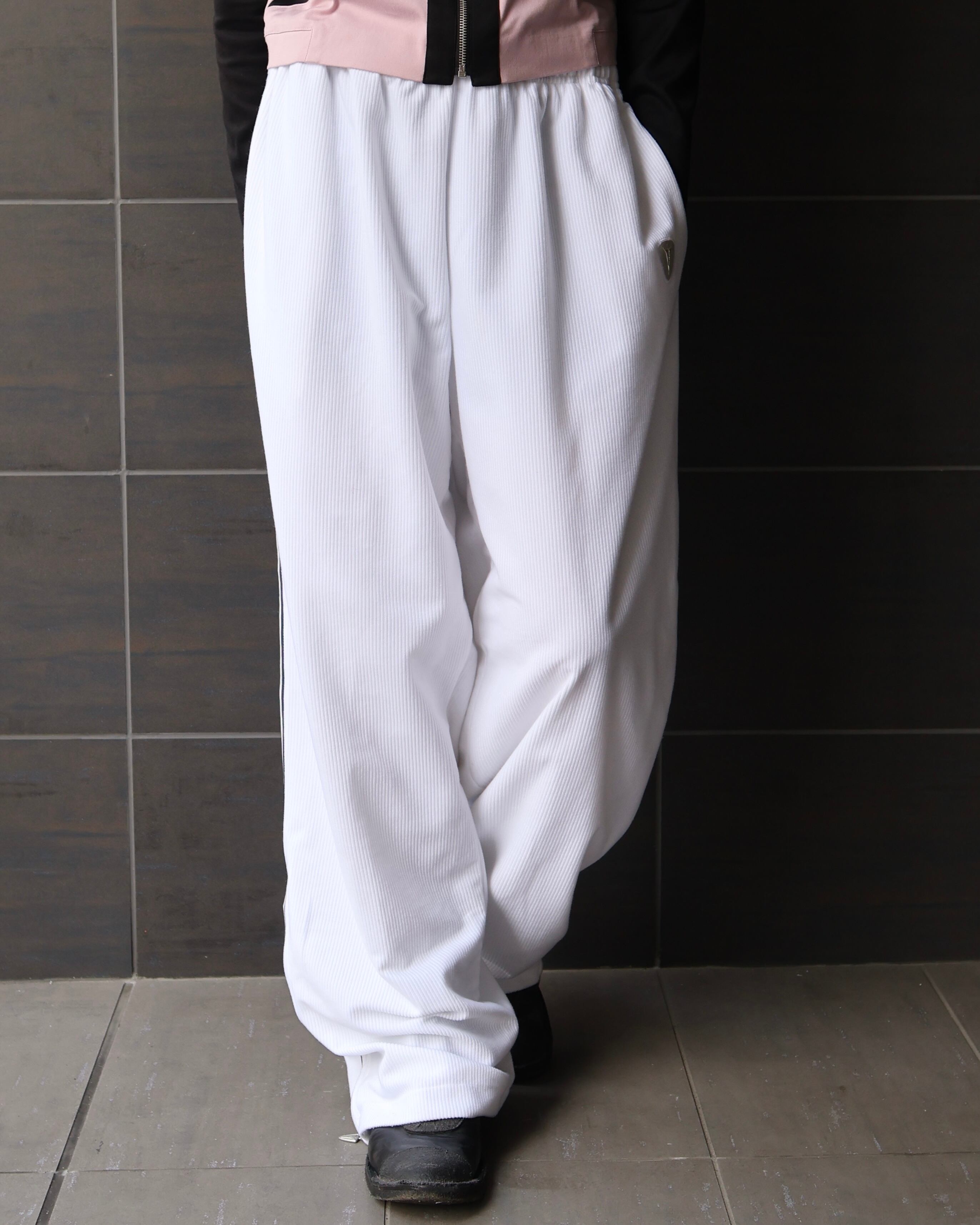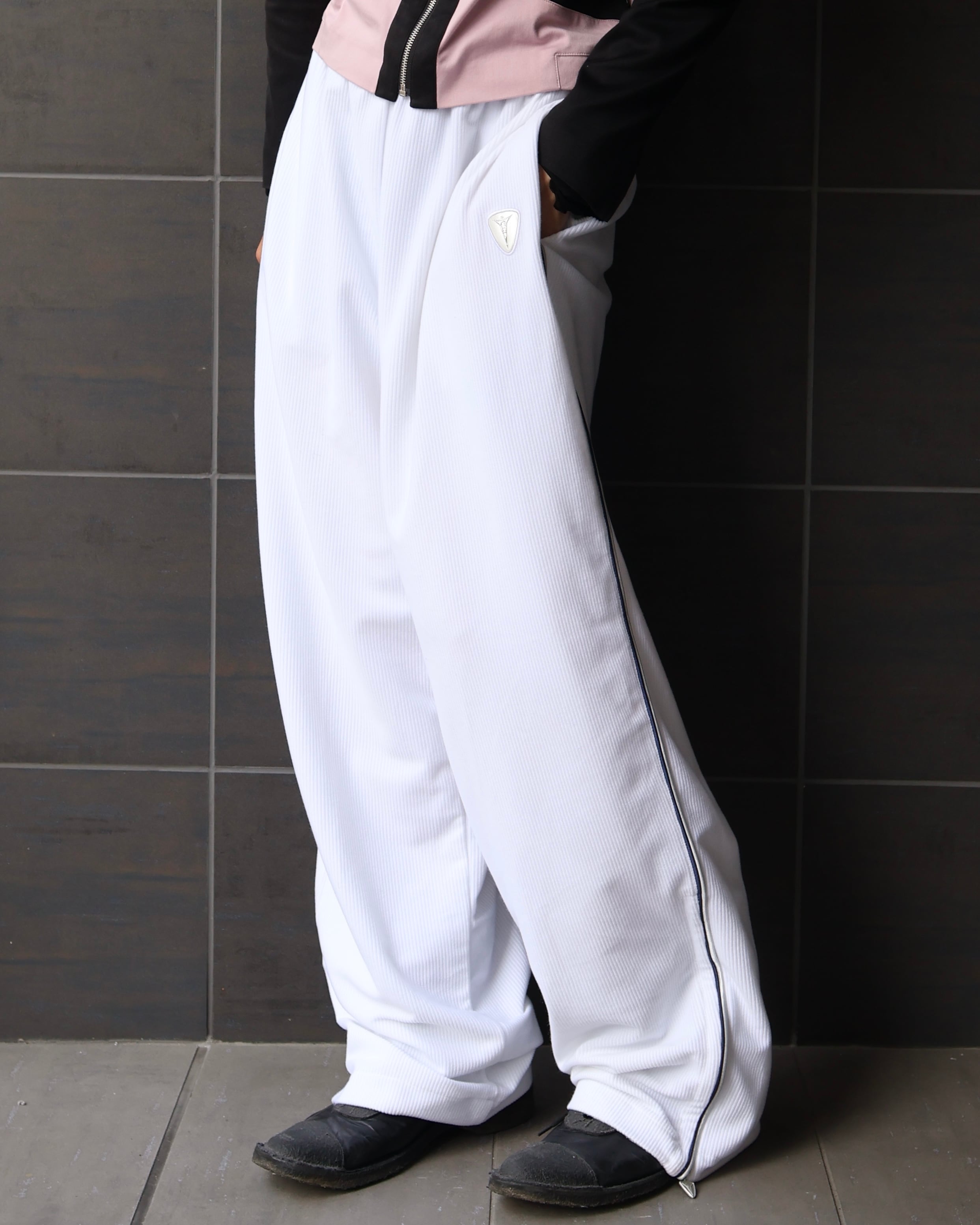 細畝のコーデュロイでシルエットが良いためトップスを選ばず着用可能。裾にジップがあるためシルエットの変化も付けられる。