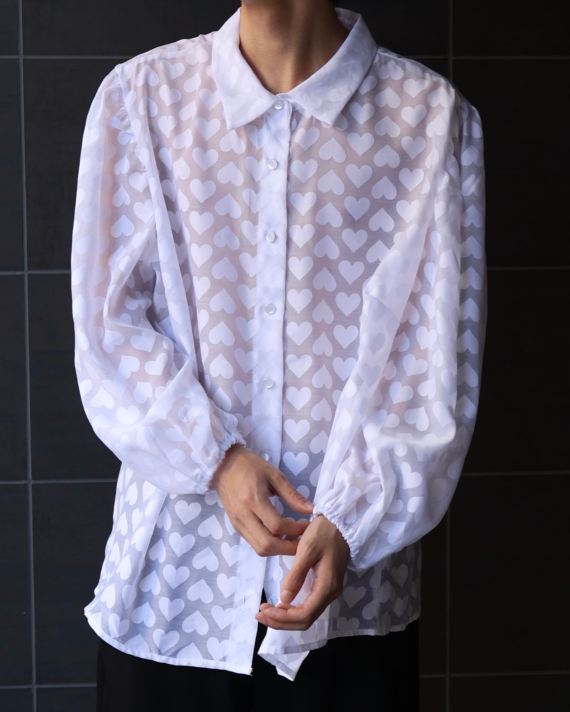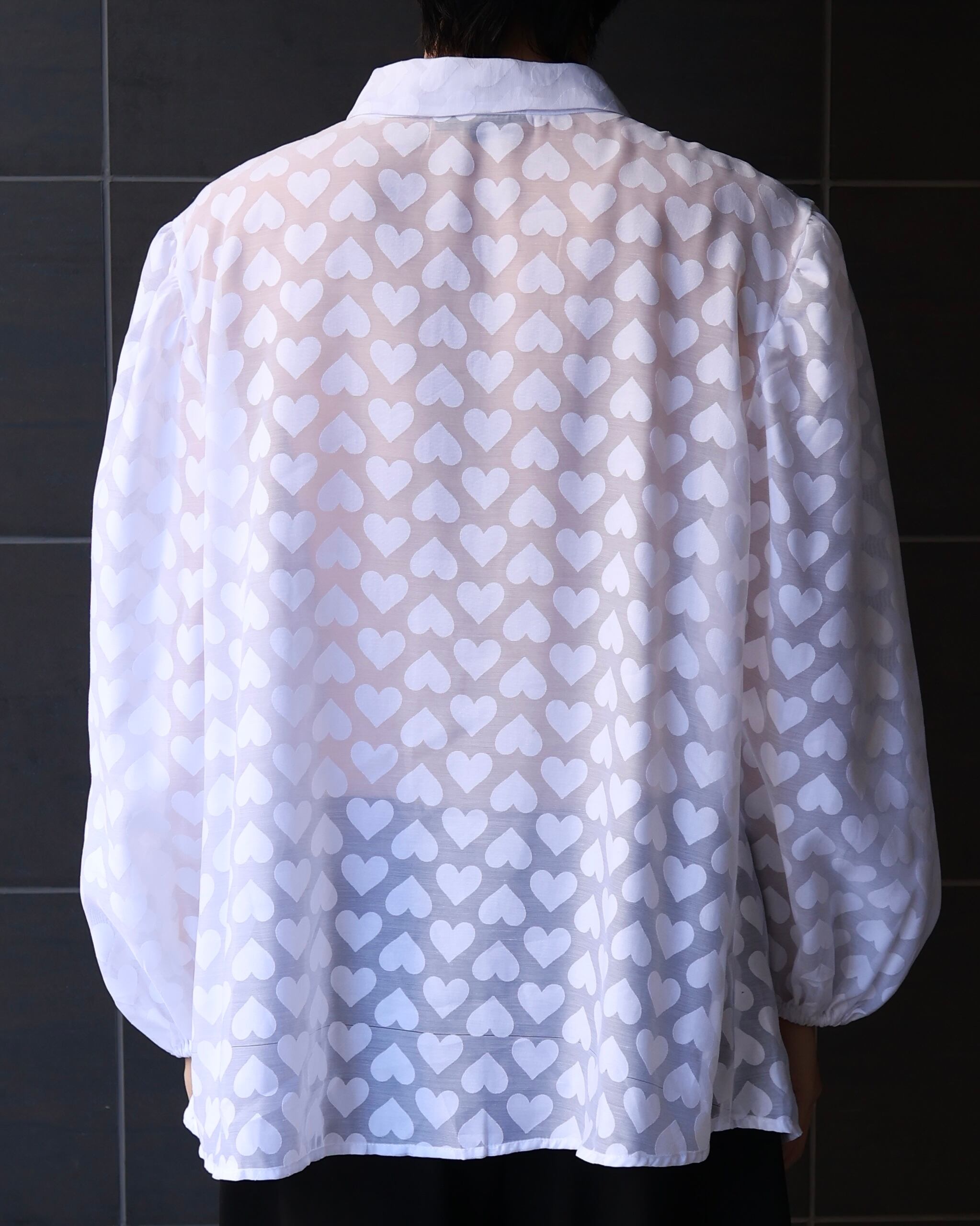 全体に施されたハートモチーフが特徴のシアーシャツ