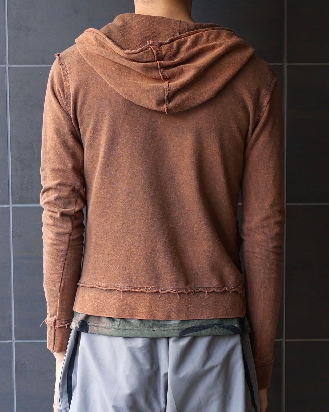 ウォッシュ加工によるフェード感が特徴のボタンフーディ