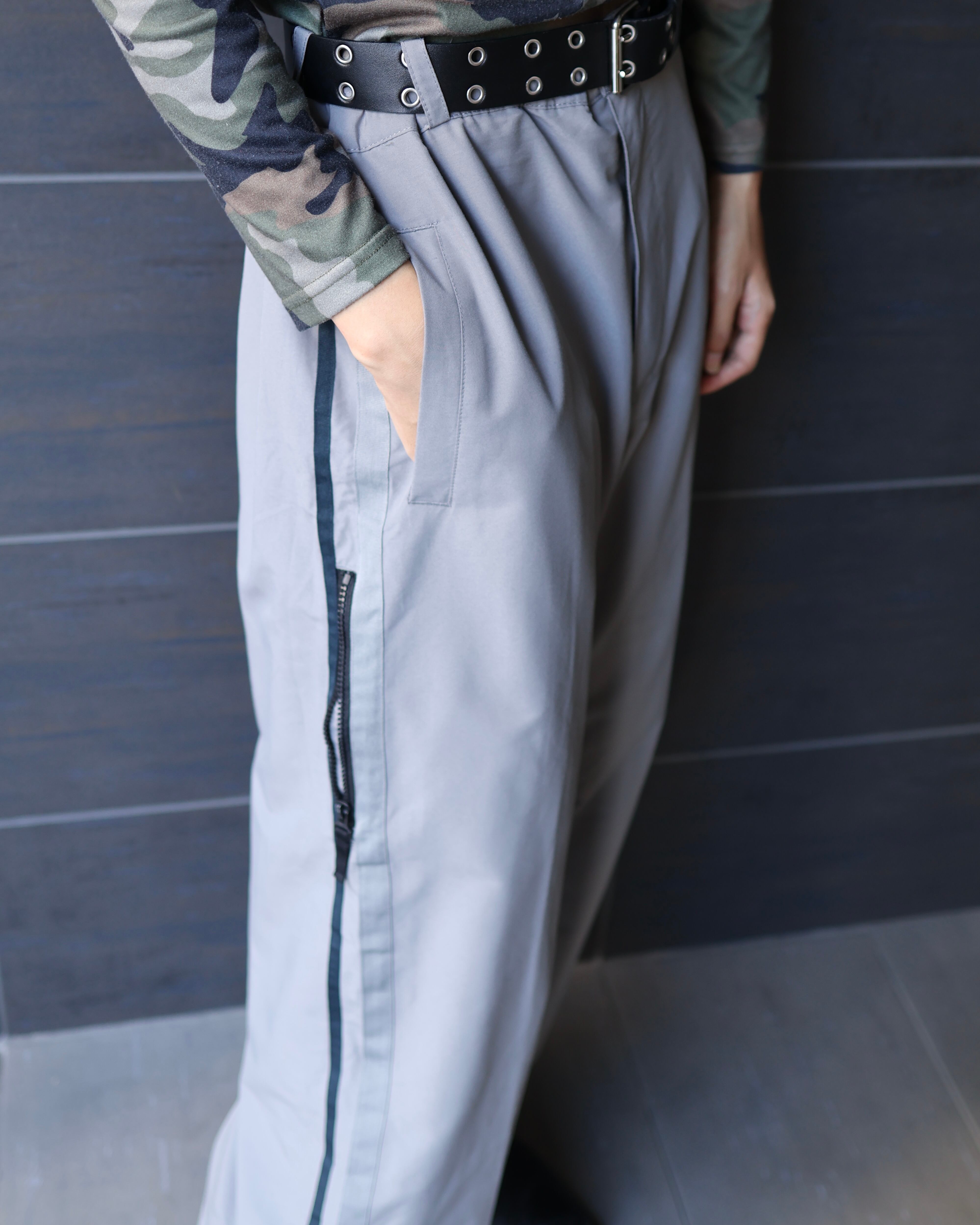 絶妙なカラーリングとサイドに施されたジップが特徴のナイロンパンツ