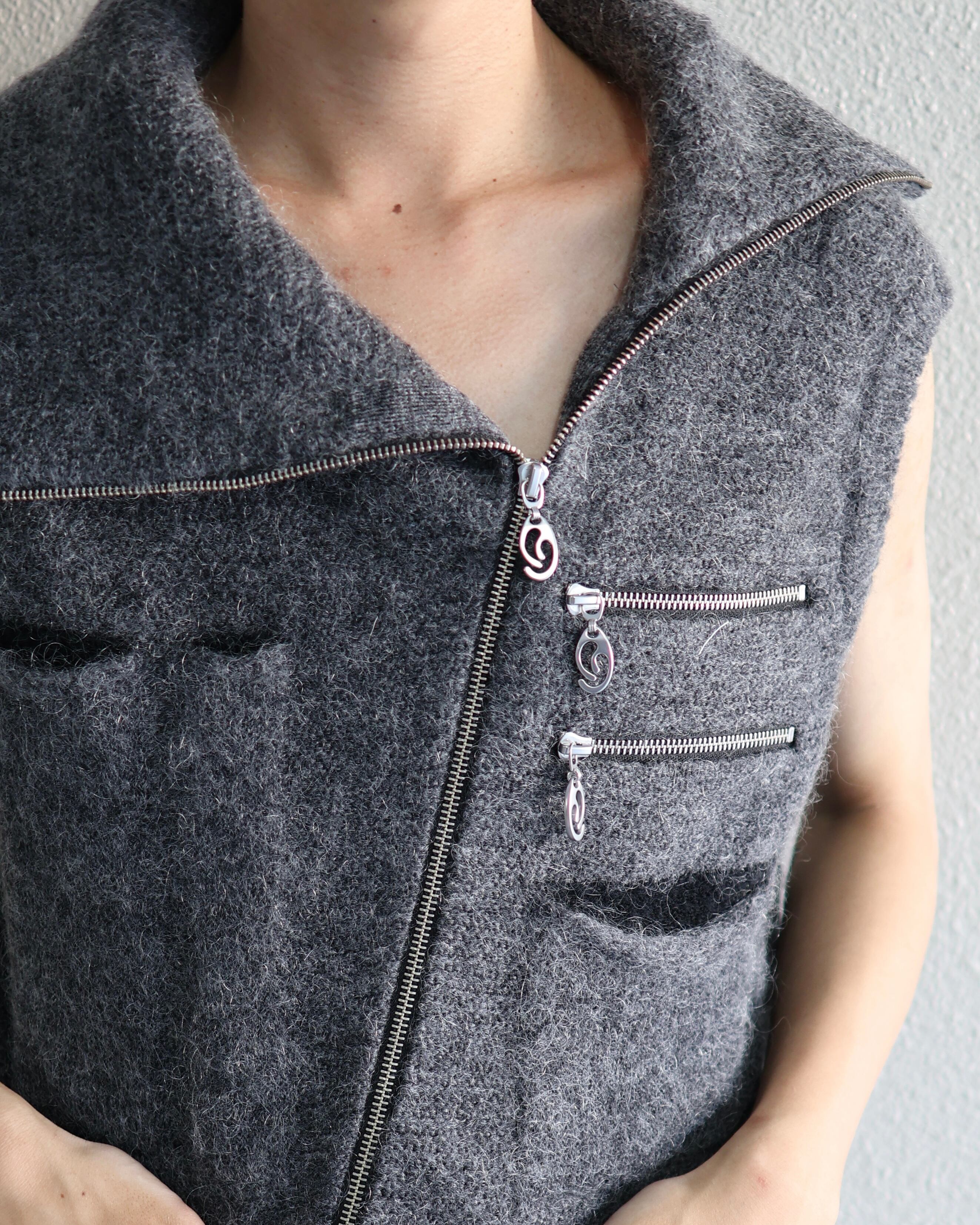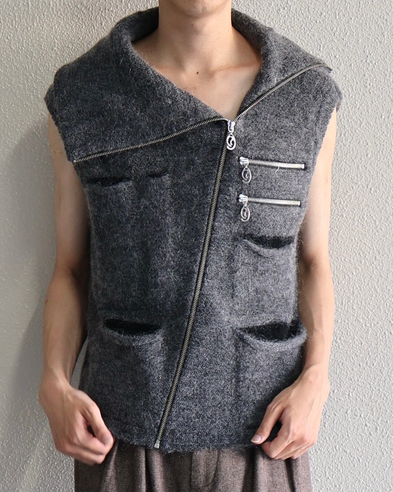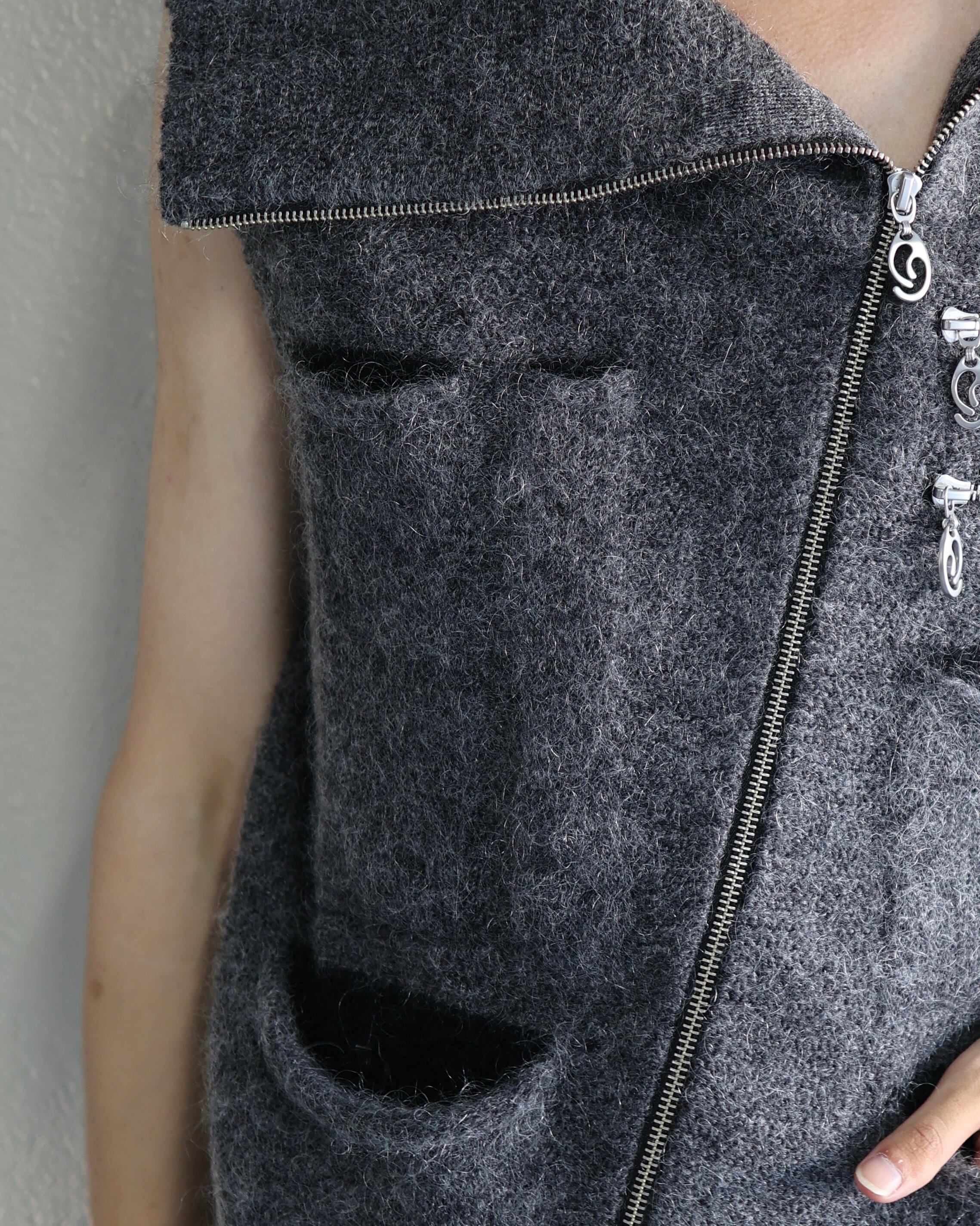 Oscar Ouyang AW25/Grey mohair knit multi black pocket zip gilet