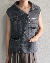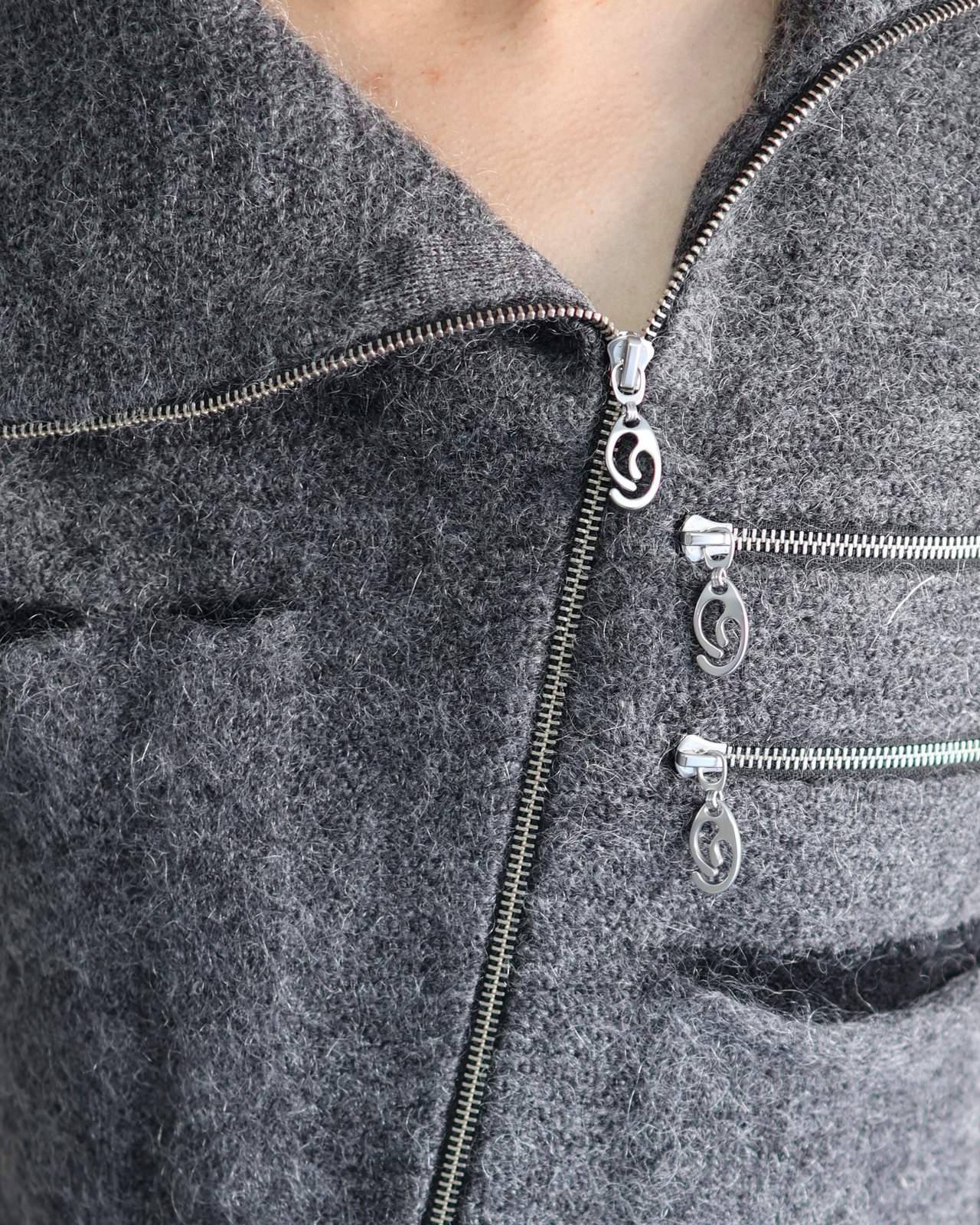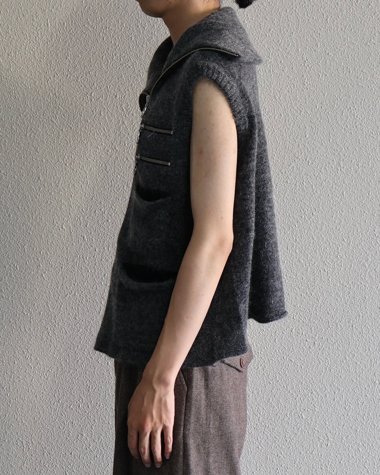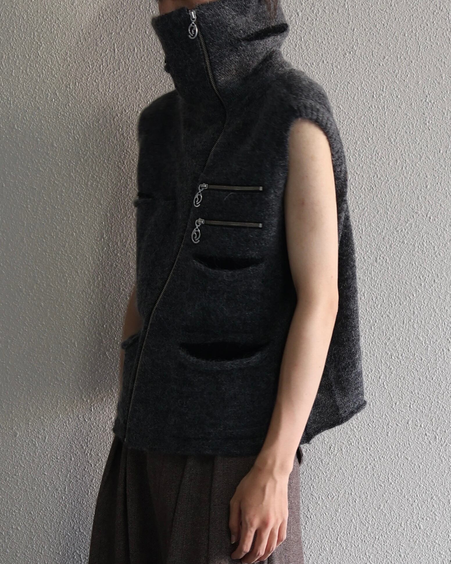 Oscar Ouyang AW25/Grey mohair knit multi black pocket zip gilet