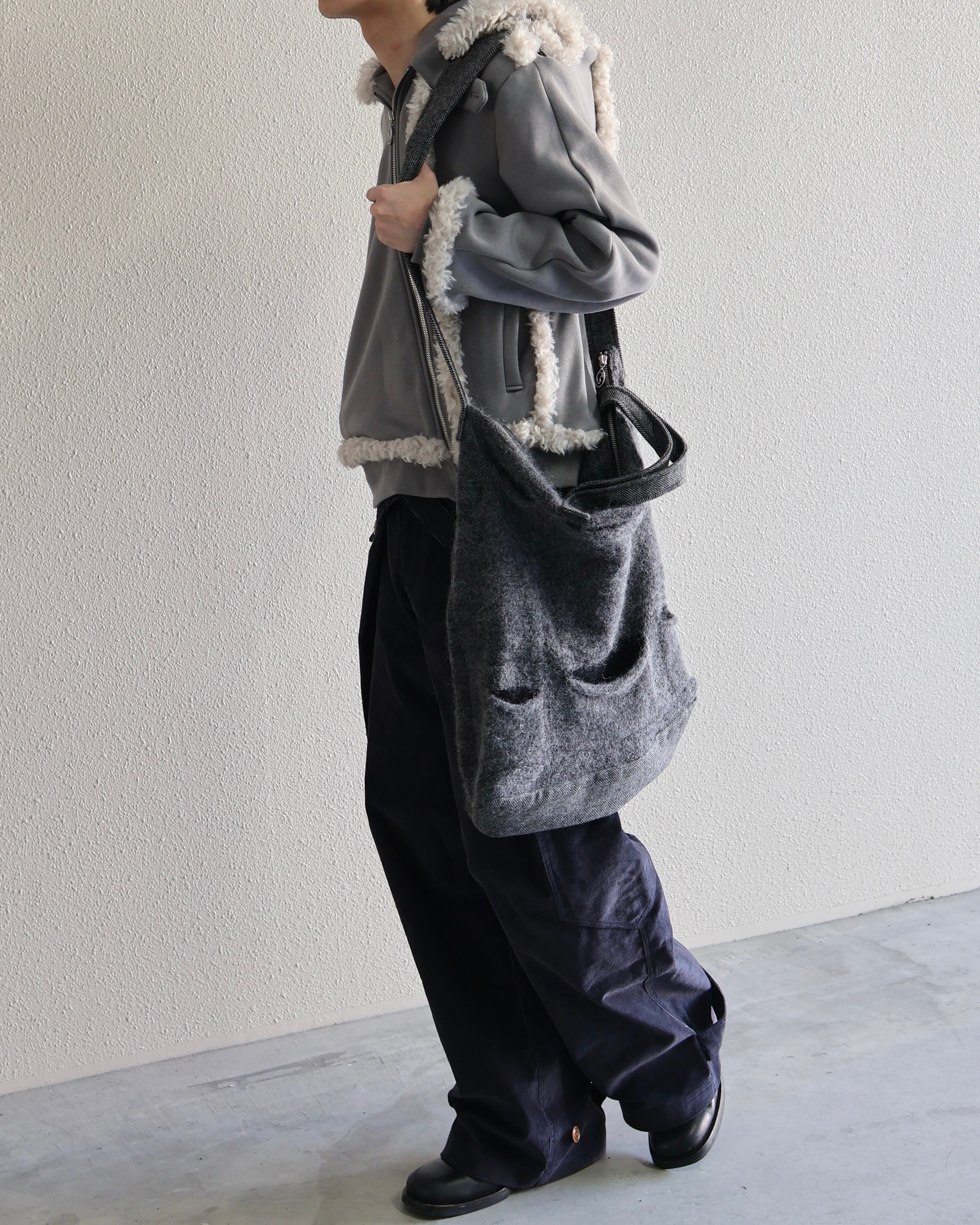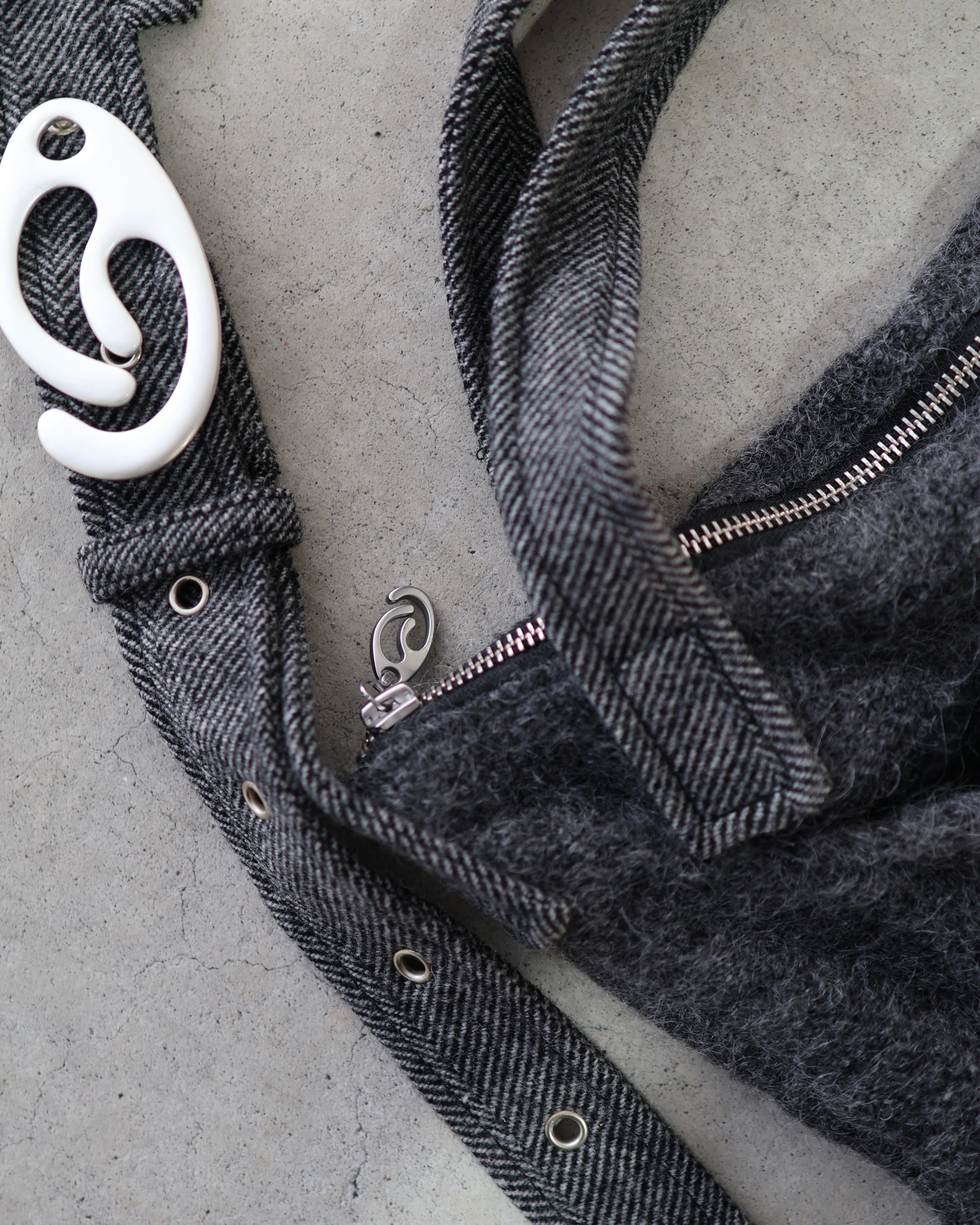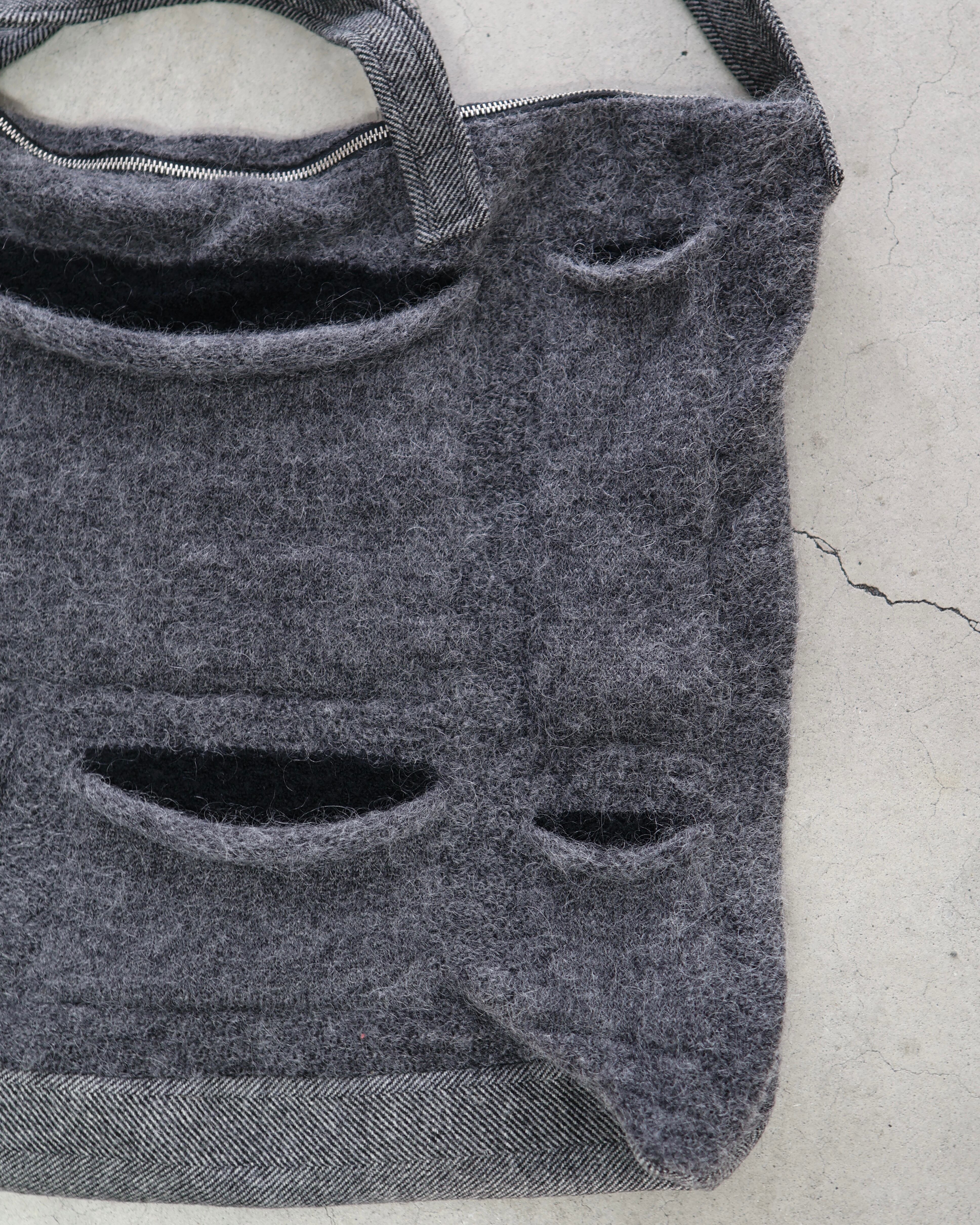 Oscar Ouyang AW25/Grey mohair knit multi black pocket bag