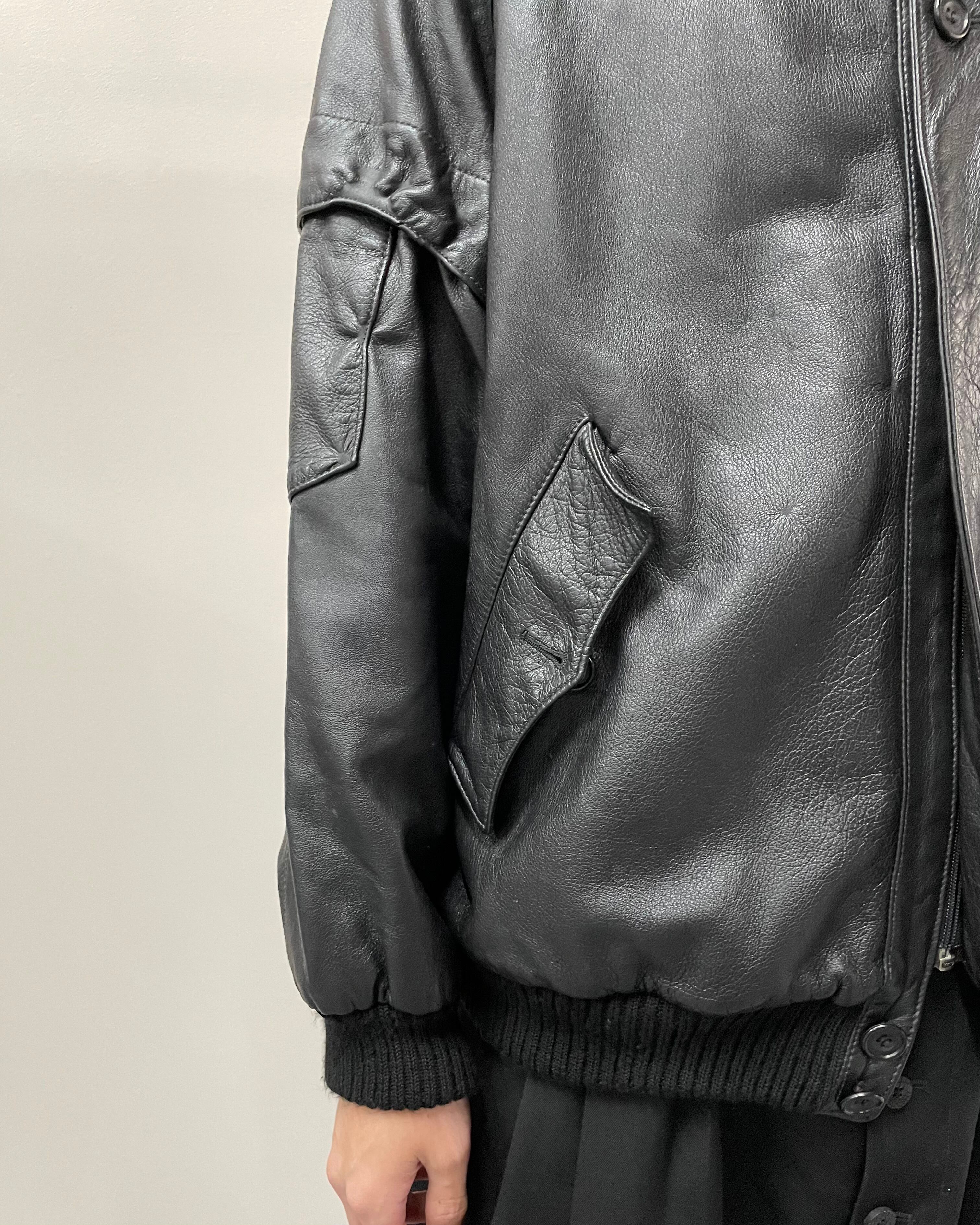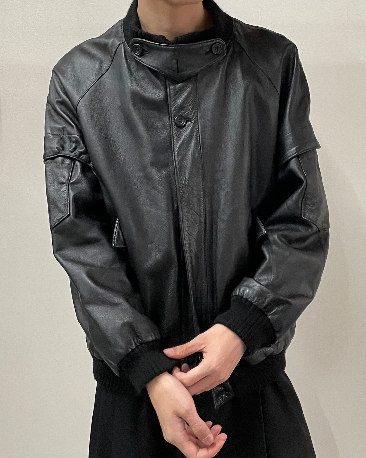 上質なレザー特有の深みのある艶感と、無骨さを内包しながらも洗練されたシルエットが際立つ一着。スタンドネックや大胆なカッティング、立体的なポケットワークがモードな存在感を放ち、スタイリング全体を格上げしてくれるアイテム。