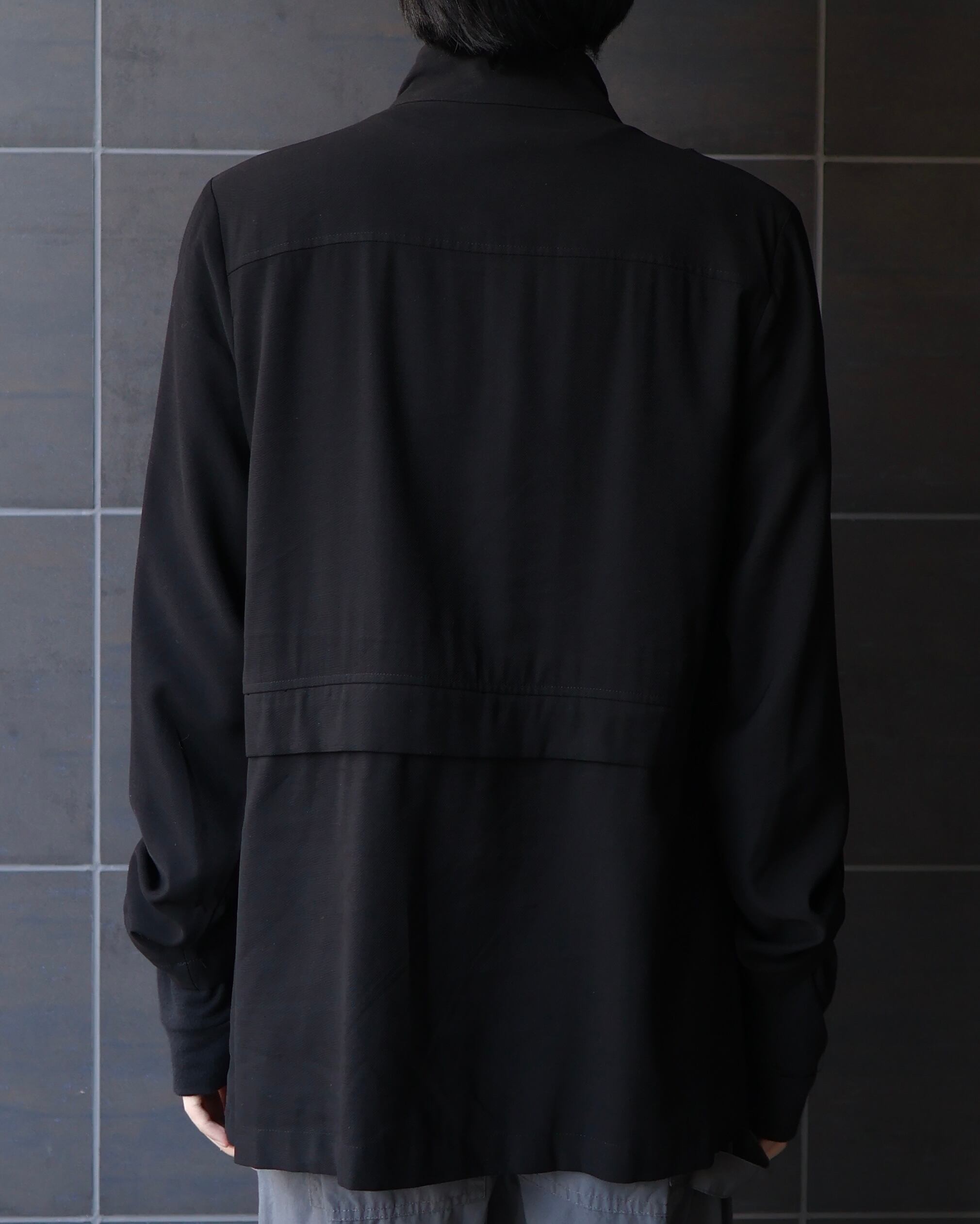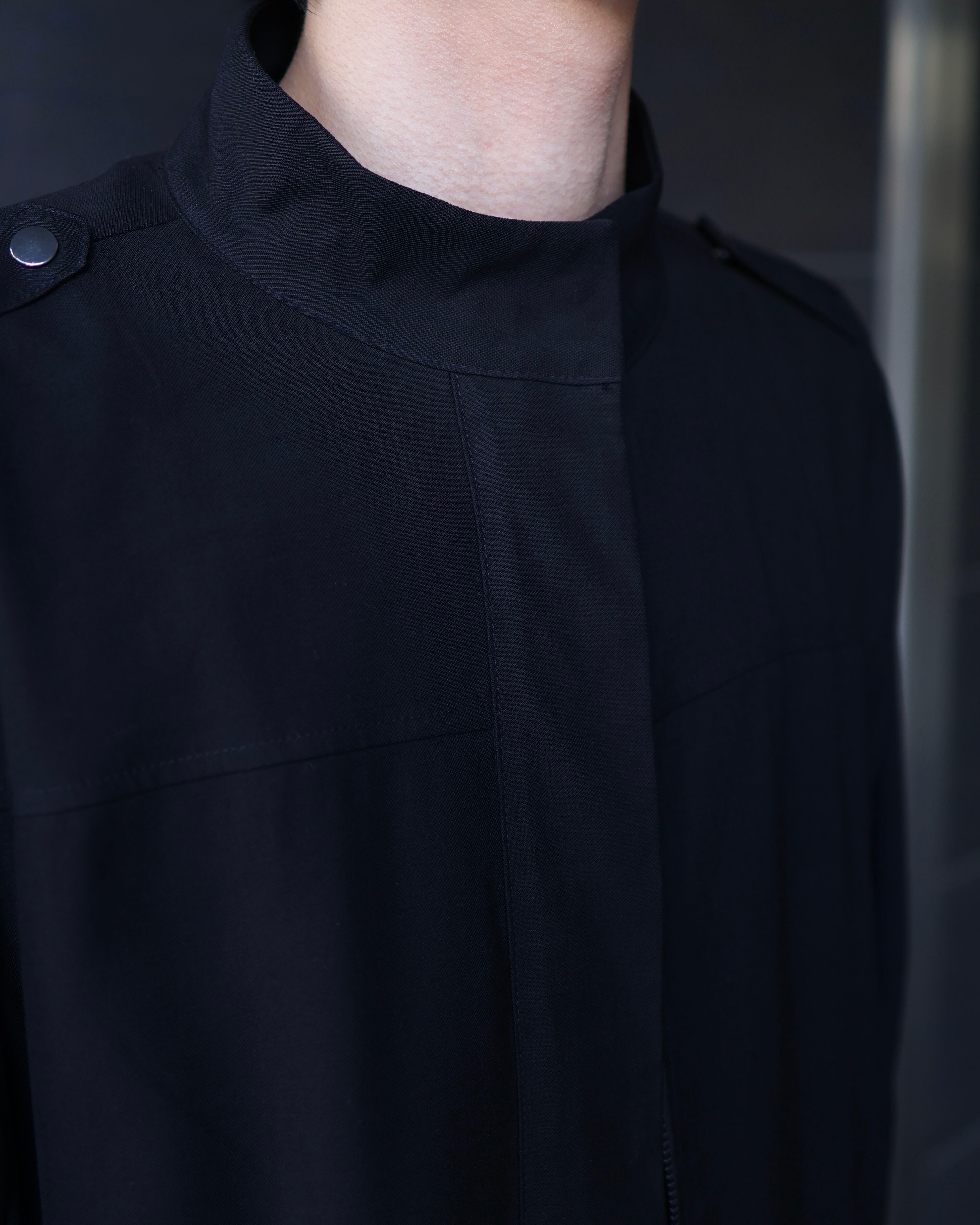 スタンドカラーに比翼のフロントが特徴のミニマルなフィールドジャケット