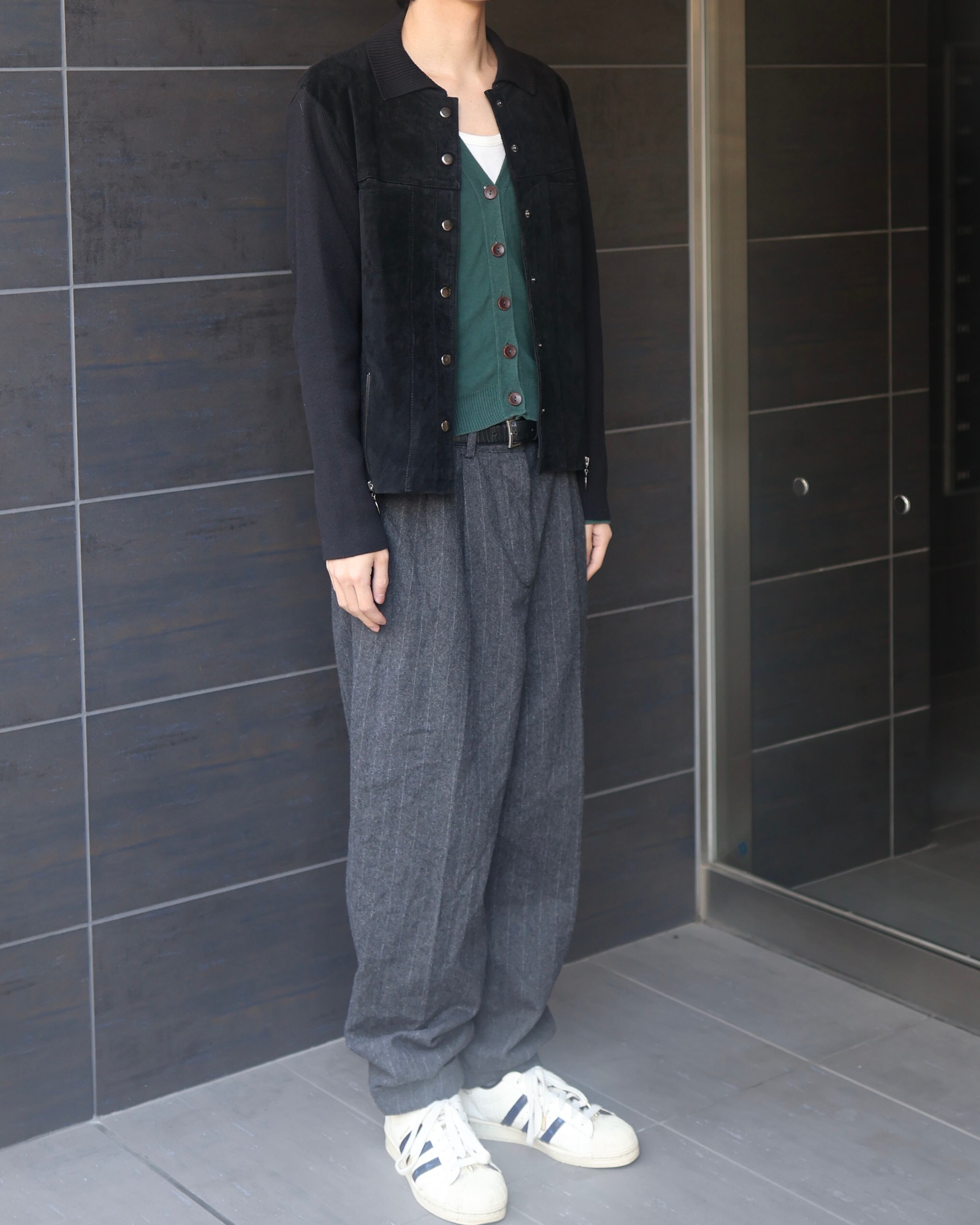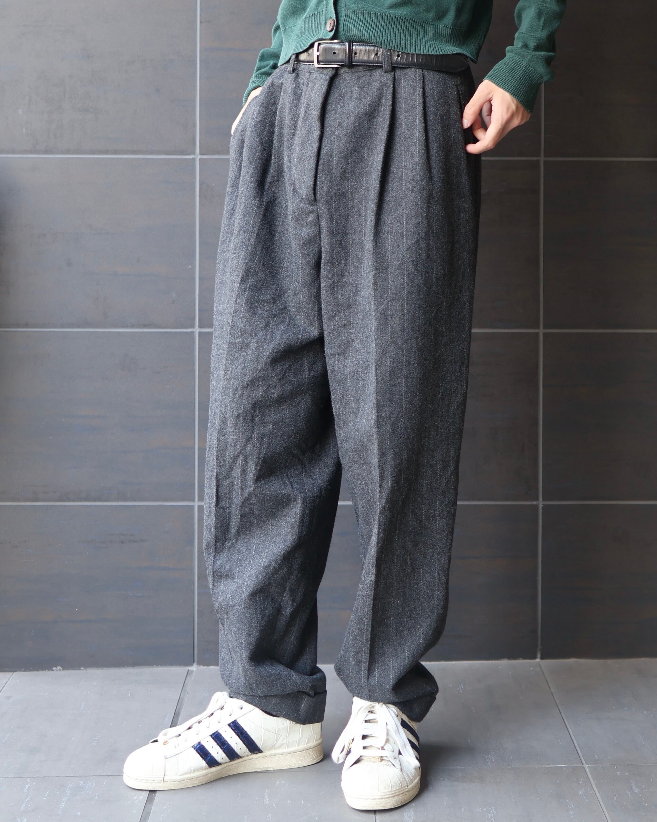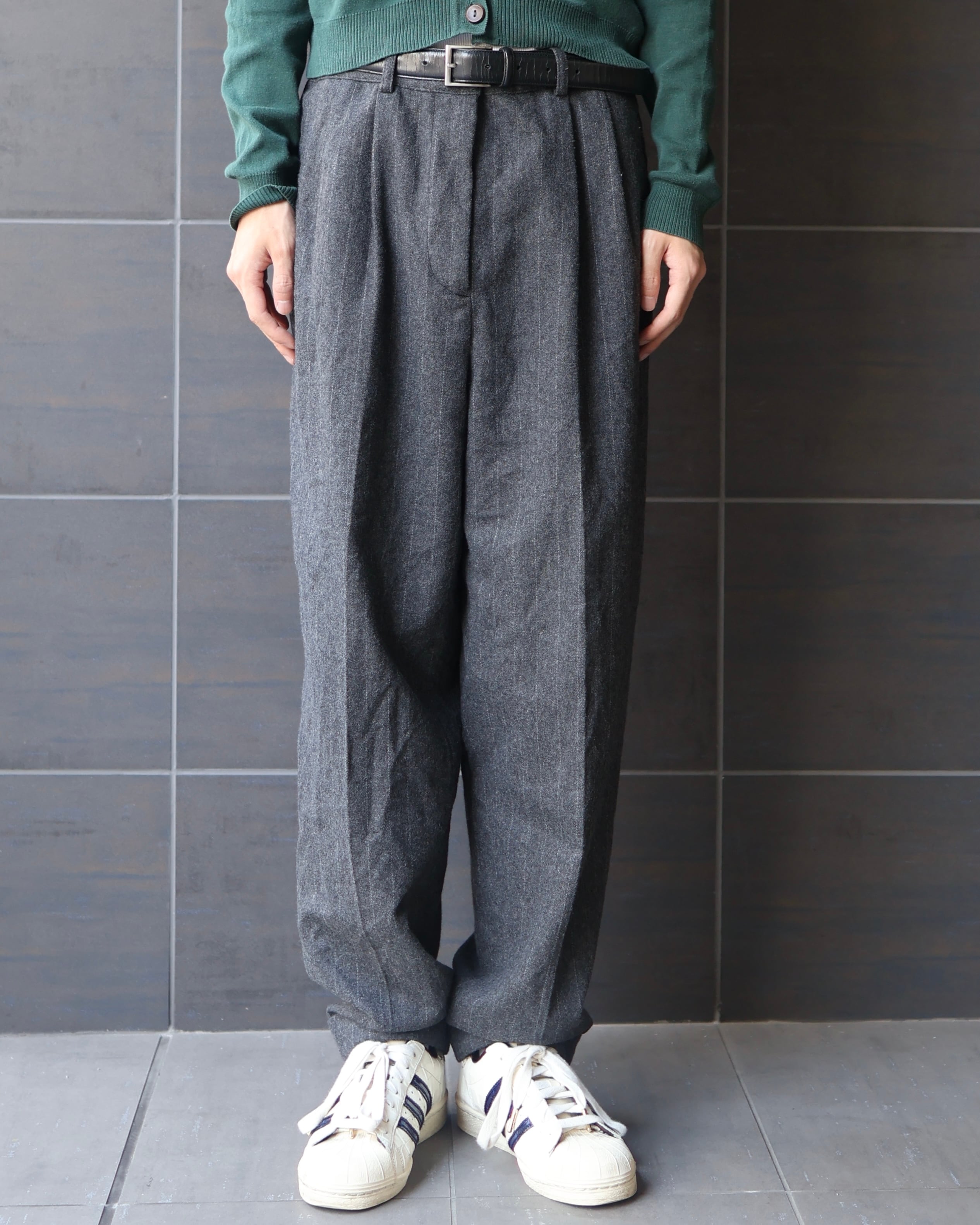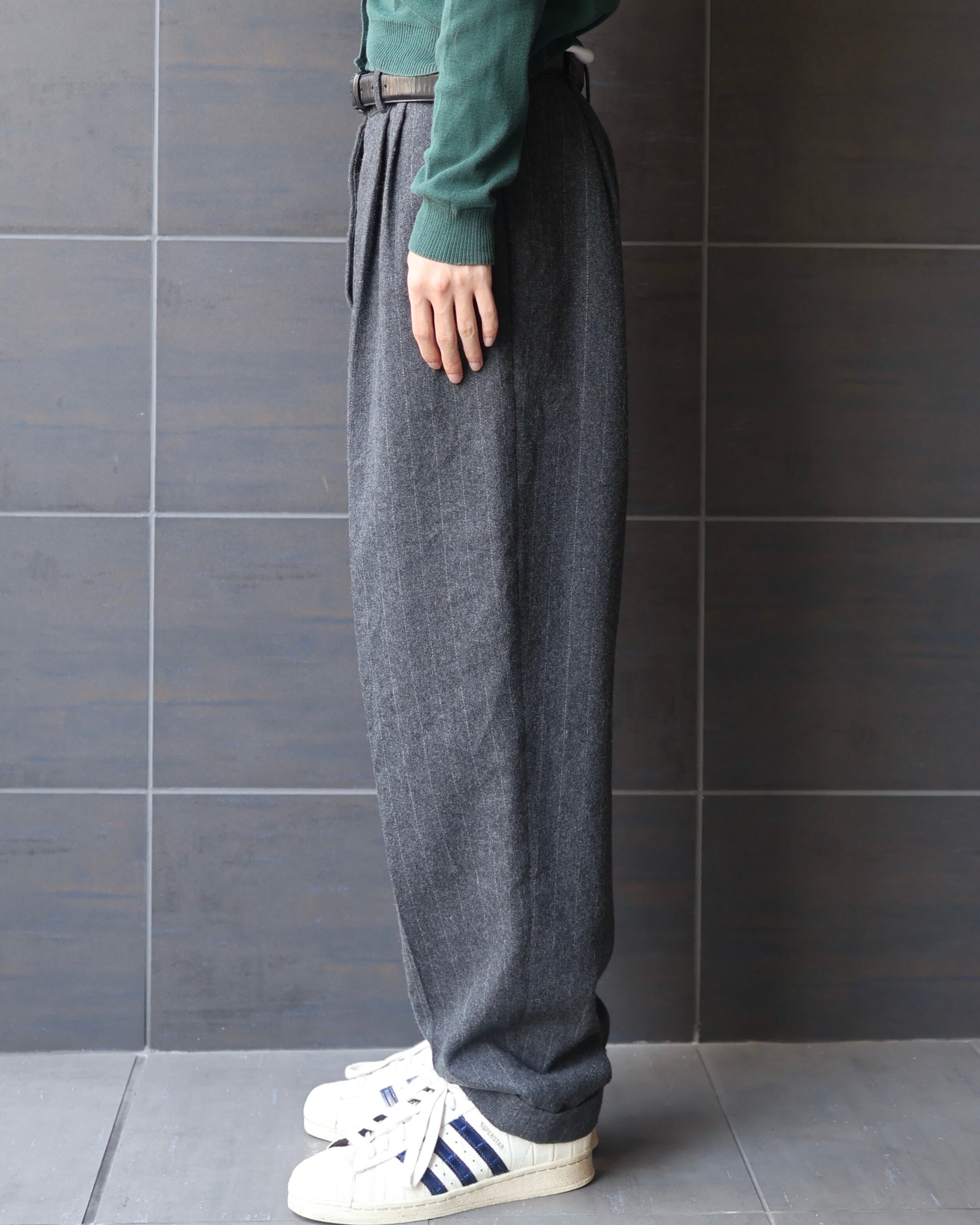 stripe wool double slacks