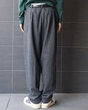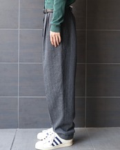 深めのタックを施したワイドシルエットは、動きに合わせてドレープ感があり上品な印象。奥行きのあるグレーカラーでシャツやニット合わせなどタイムレスに着用できるアイテム。