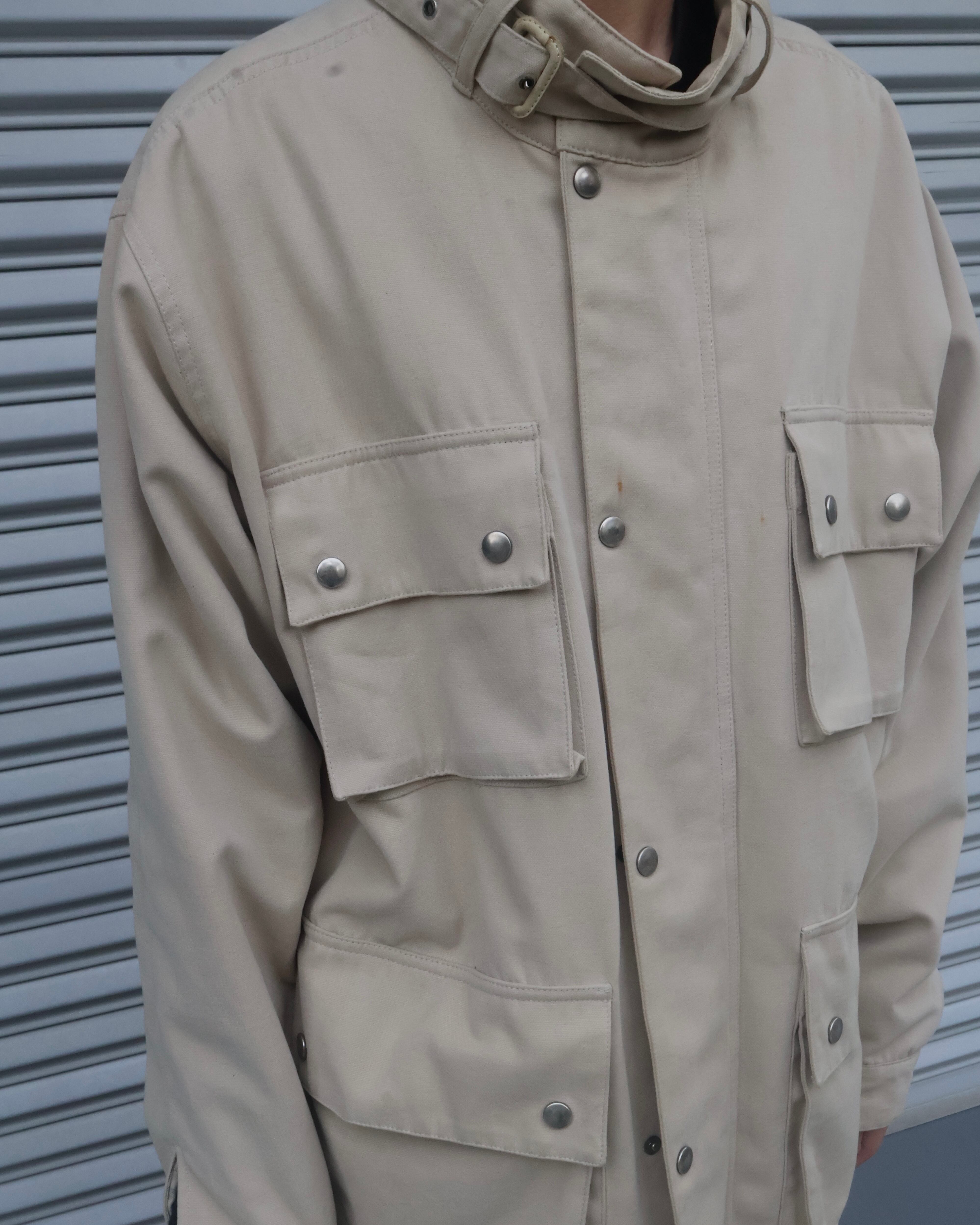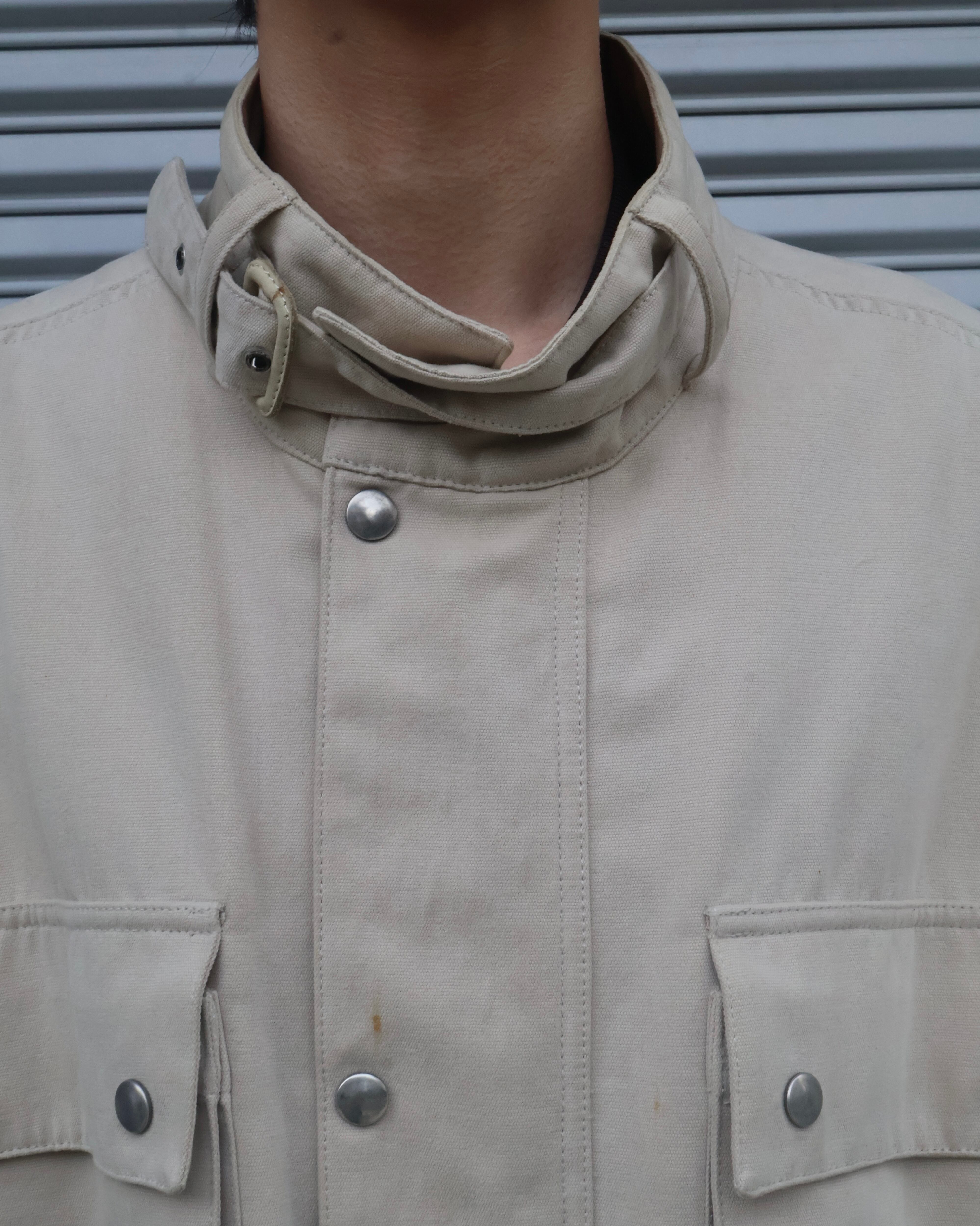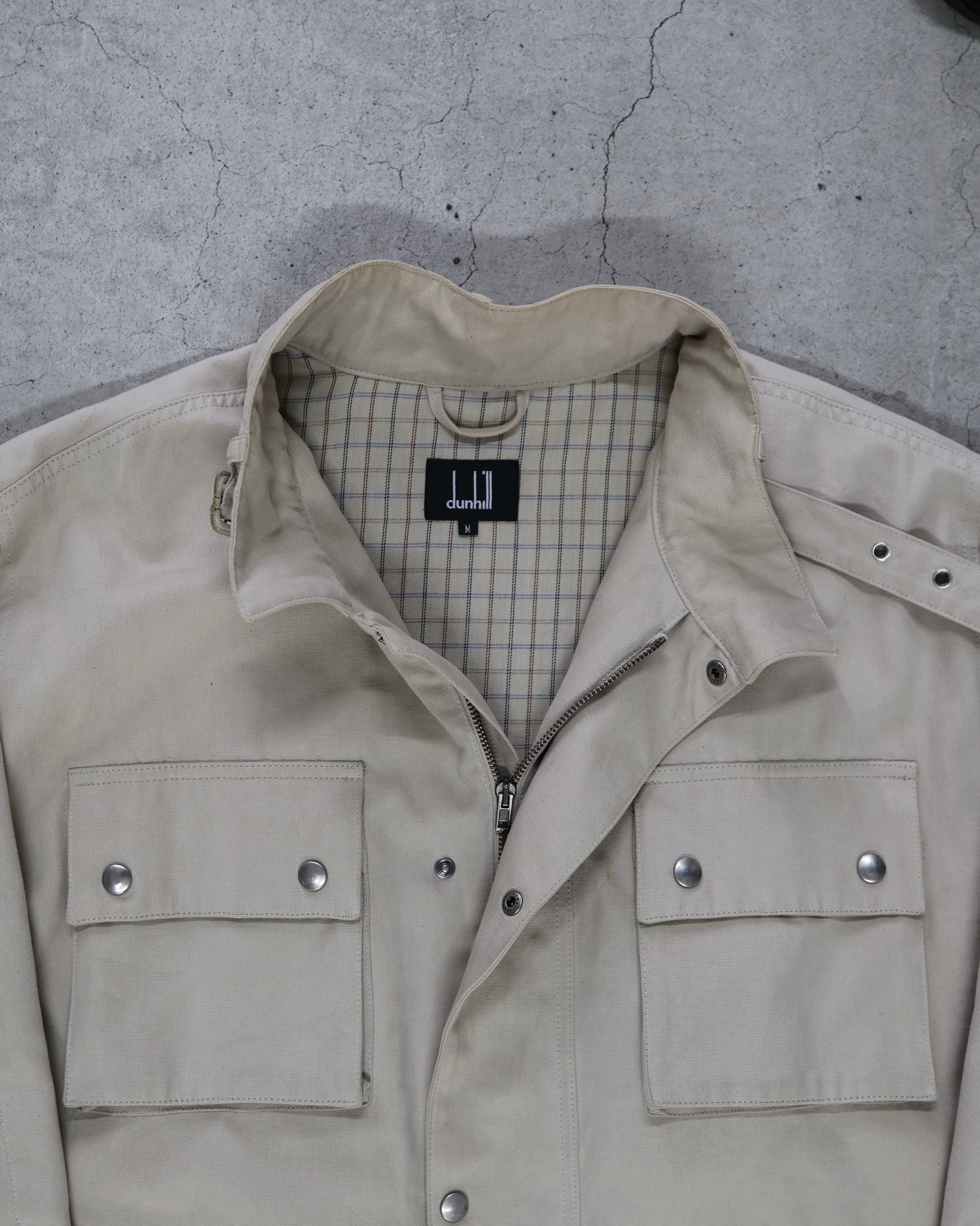 ダンヒルの上品なベージュカラーに、フロントのフラップポケットが特徴のフィールドジャケット