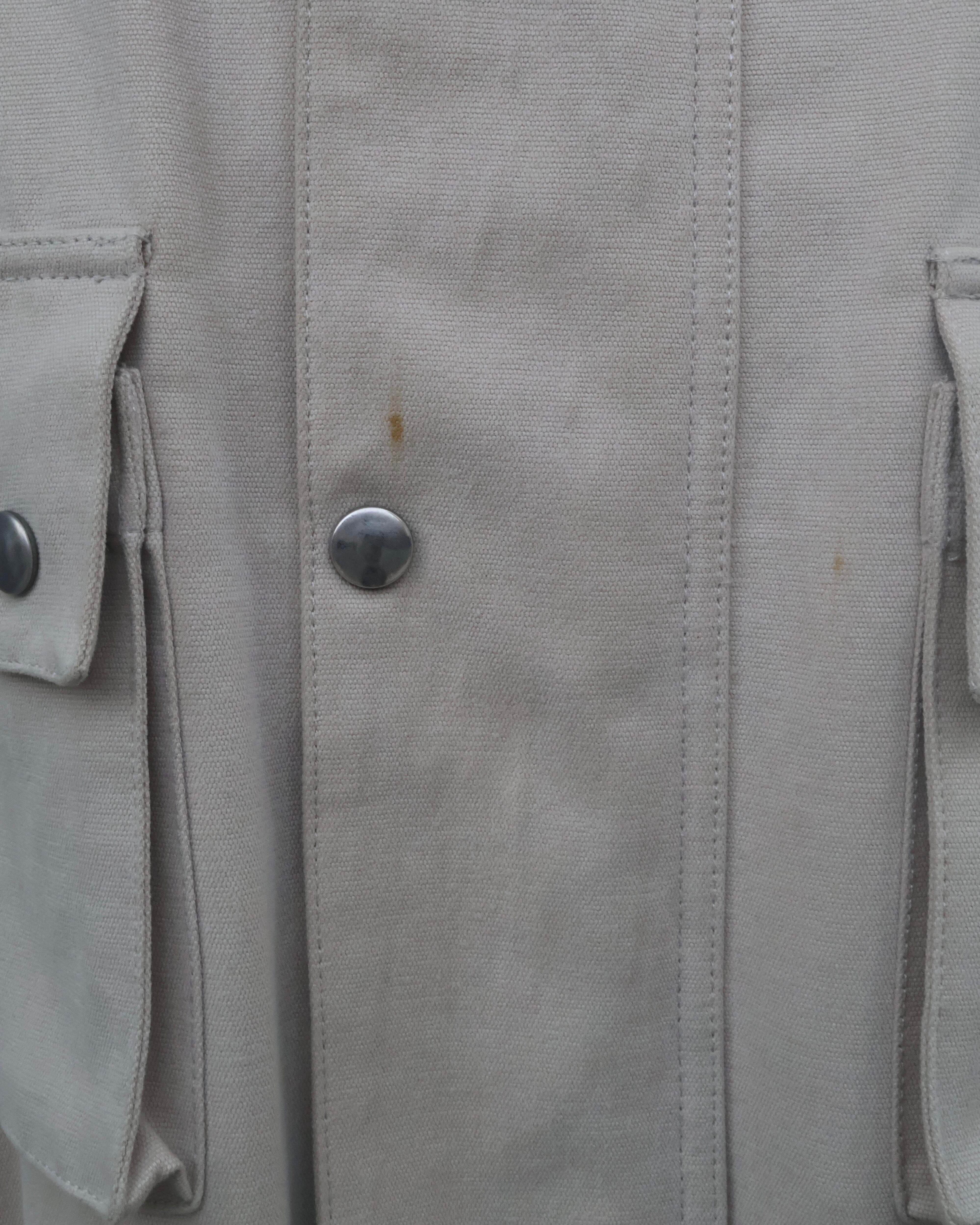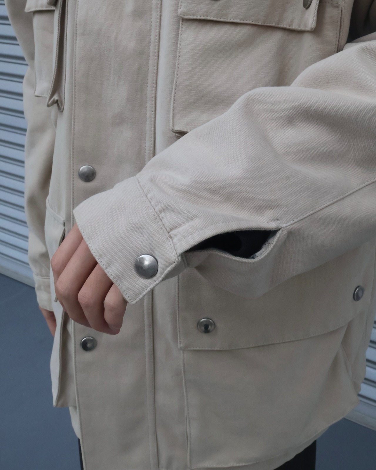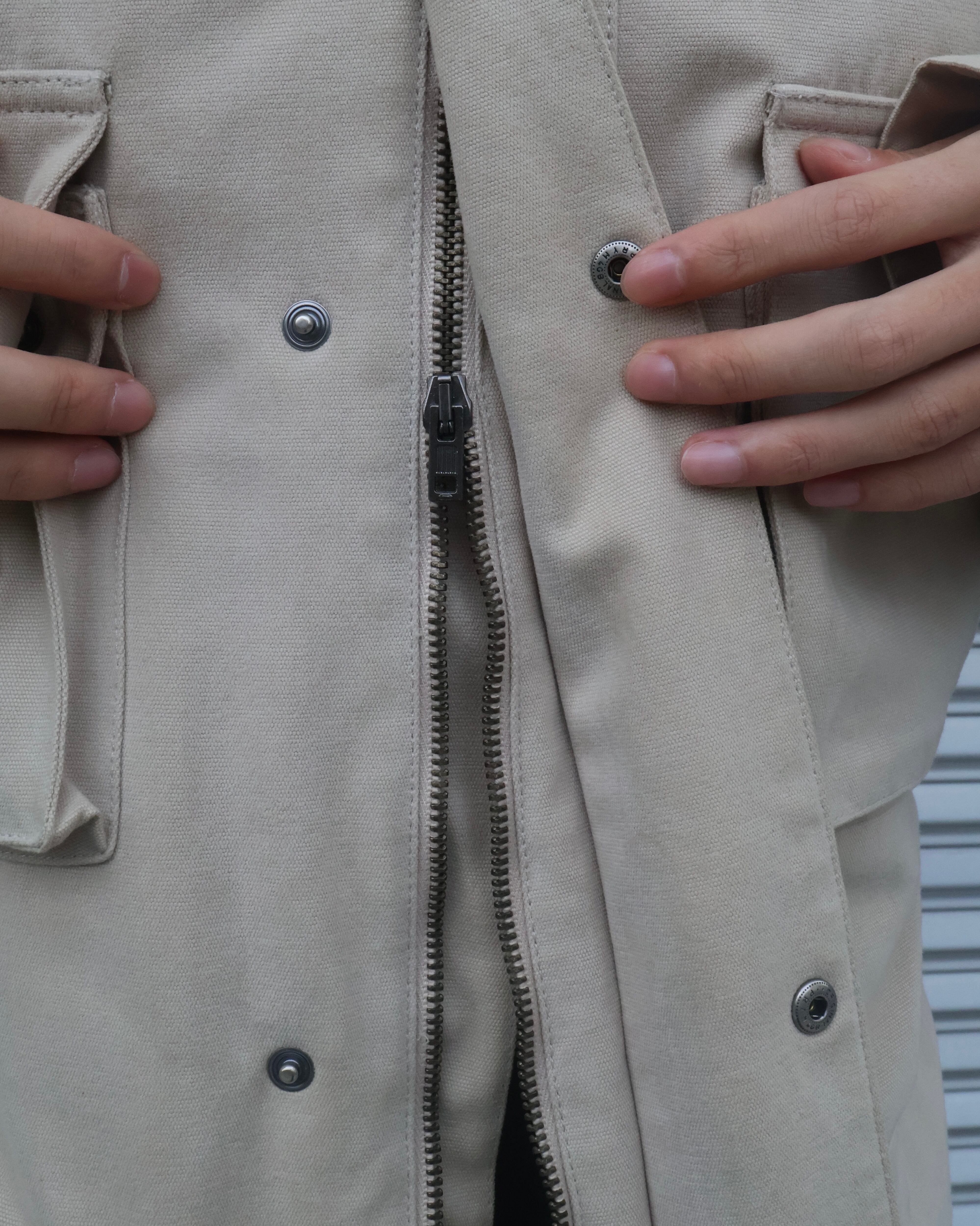 ダンヒルの上品なベージュカラーに、フロントのフラップポケットが特徴のフィールドジャケット