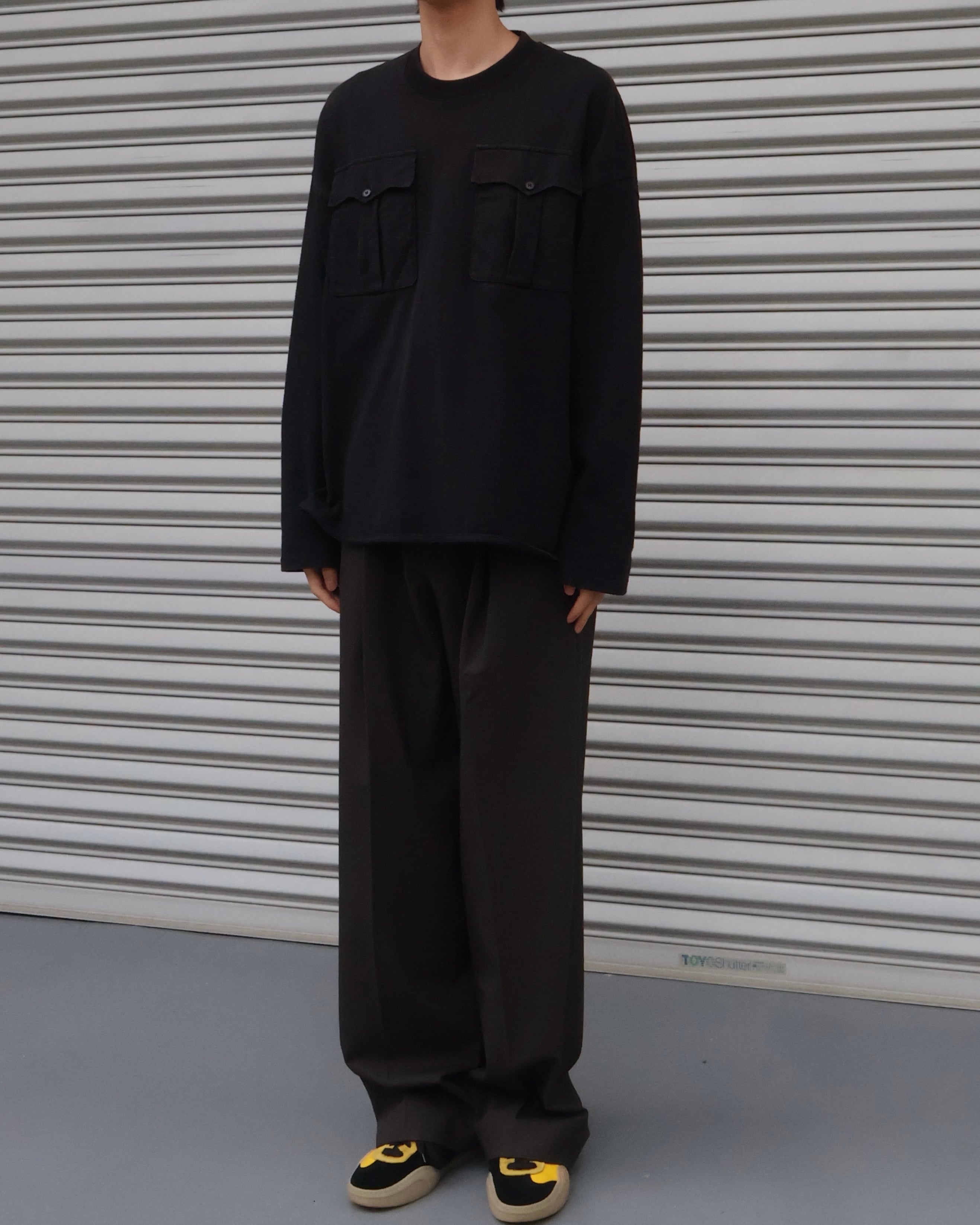 フロントに配された2つのフラップポケットが特徴のジルサンダーのロングスリーブトップ