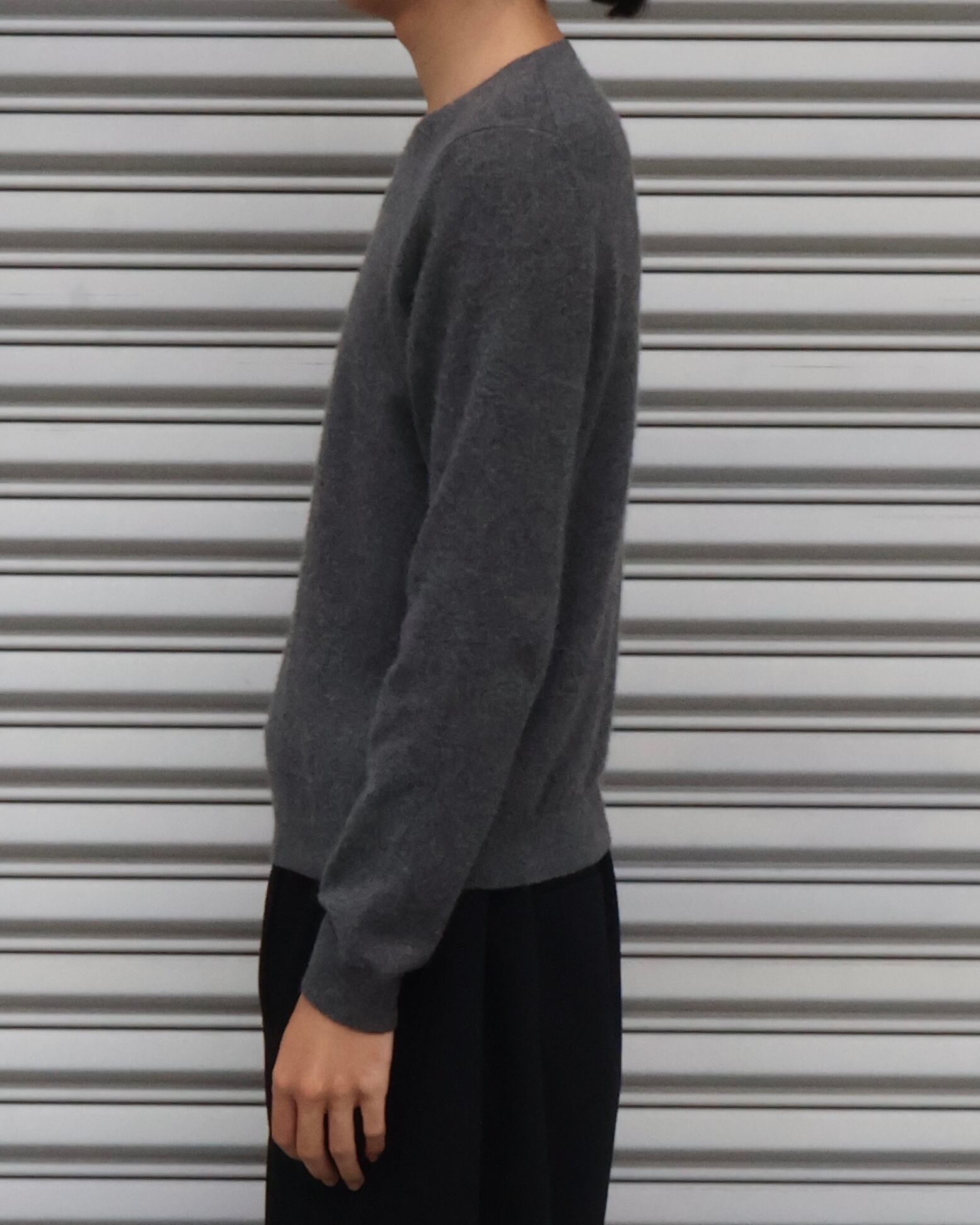 落ち着いたグレーのカラーリングでスタイリングを問わず合わせやすいアイテム。一枚で着ても上品にまとまり、ジャケットやコートのインナーとしても使えるアイテム。