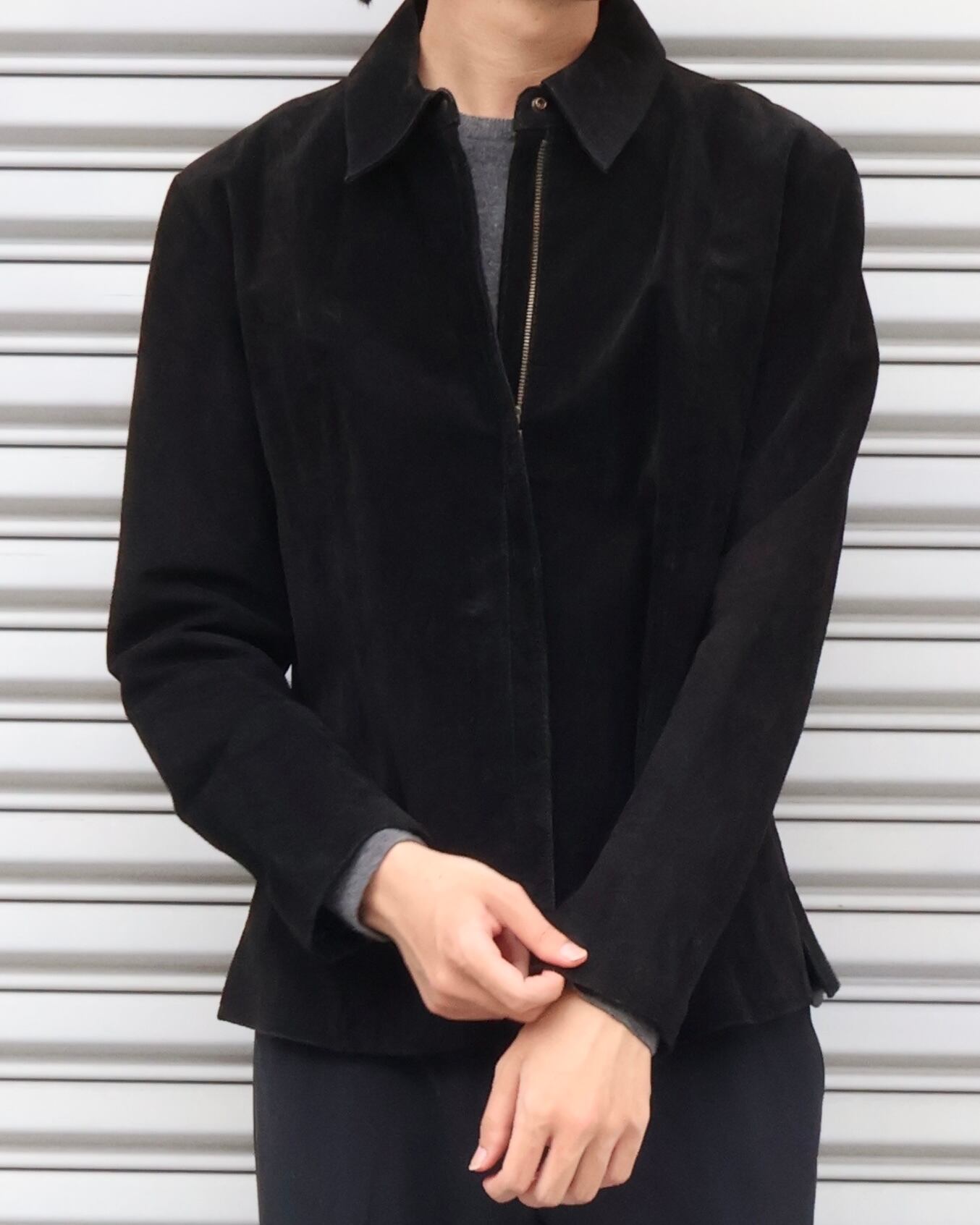 上質なスエードレザーを使用した比翼ジップアップジャケット