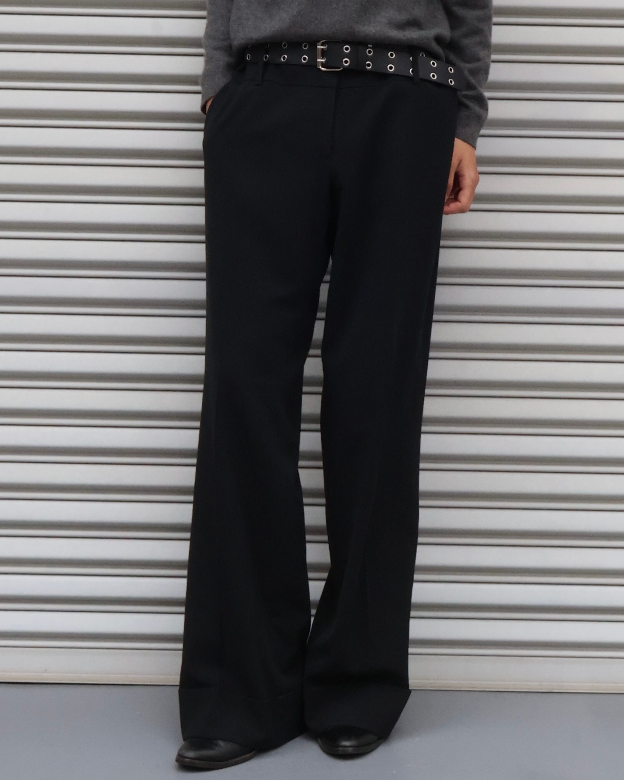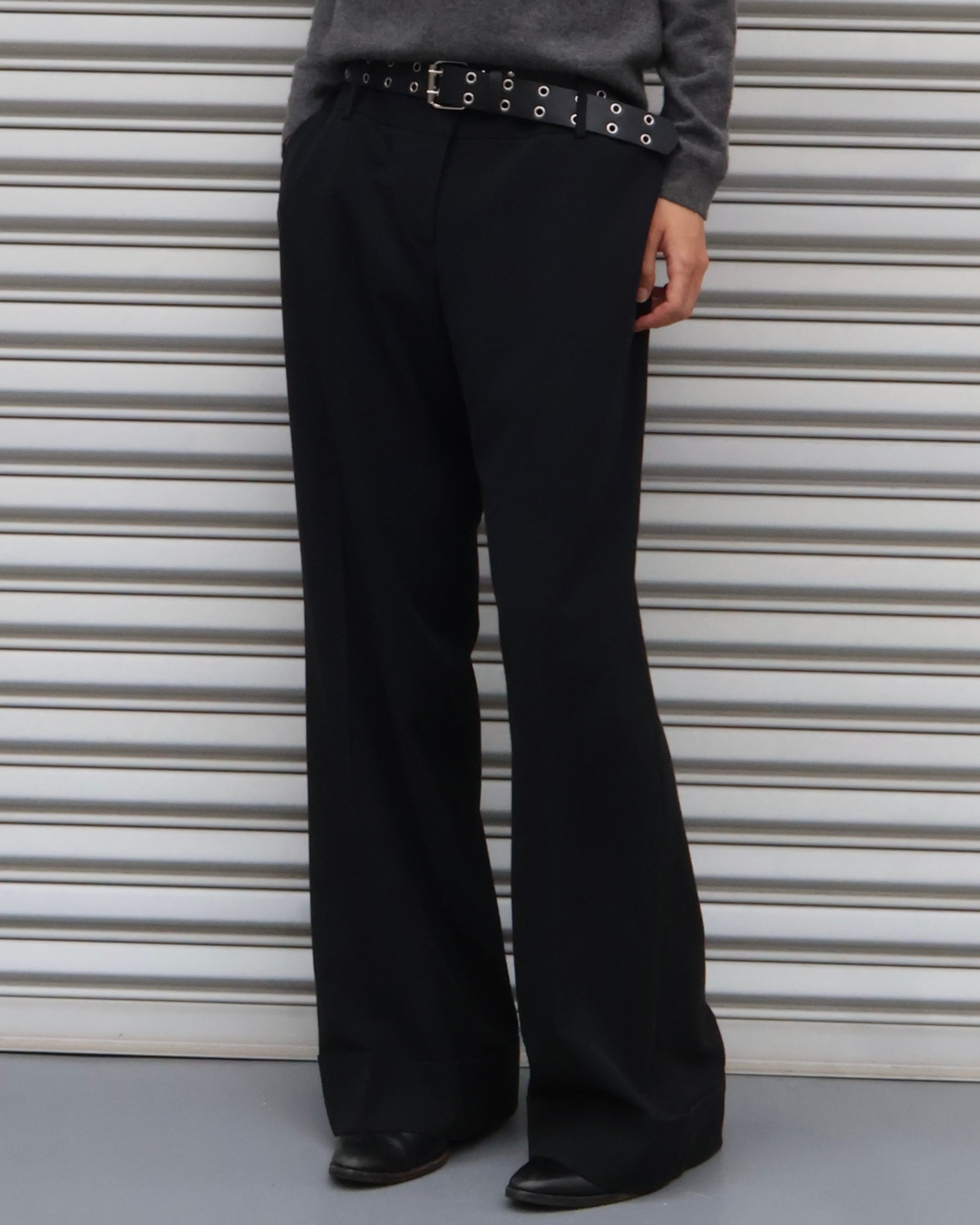 落ち感のある生地感が特徴のダブルのワイドストレートスラックス