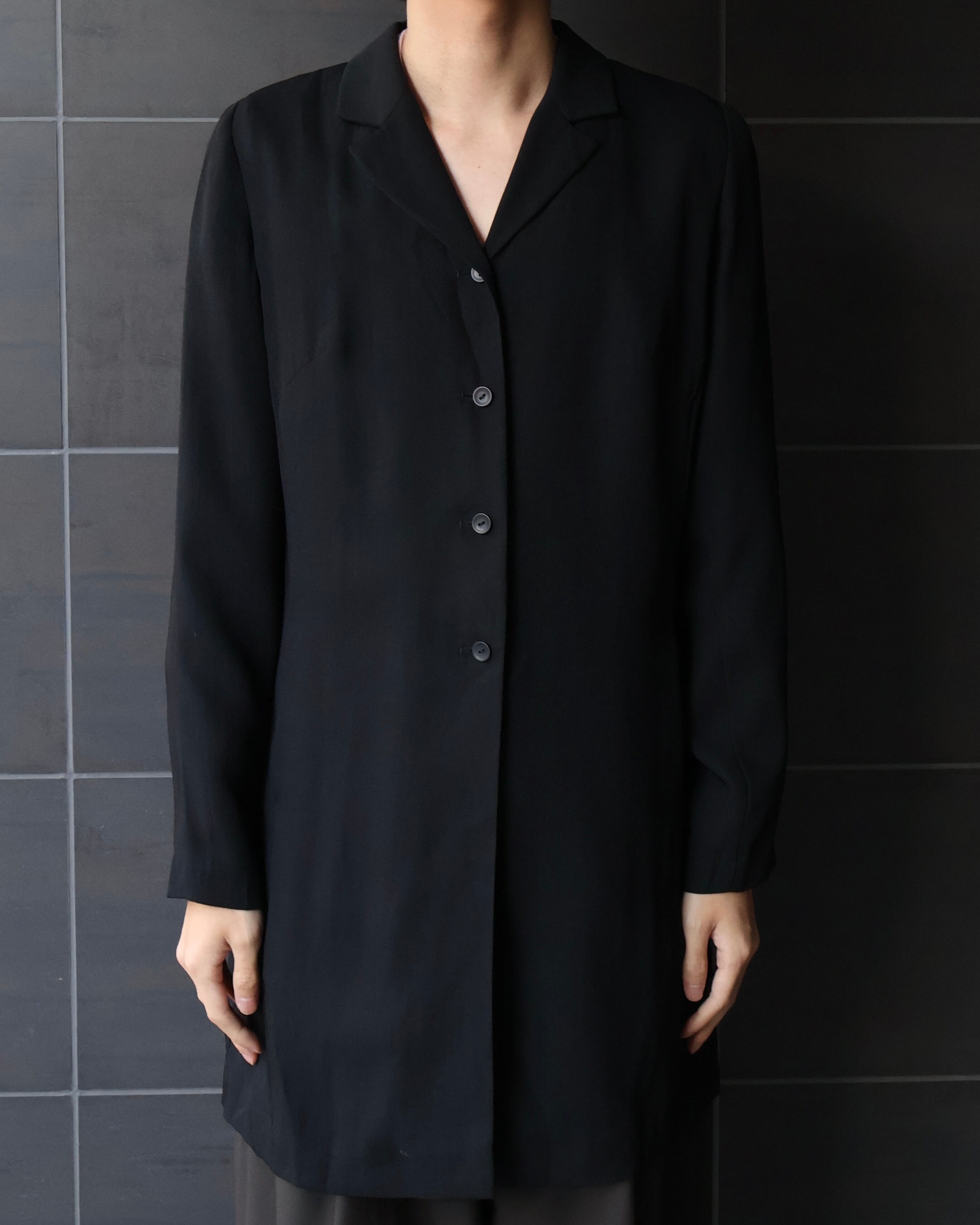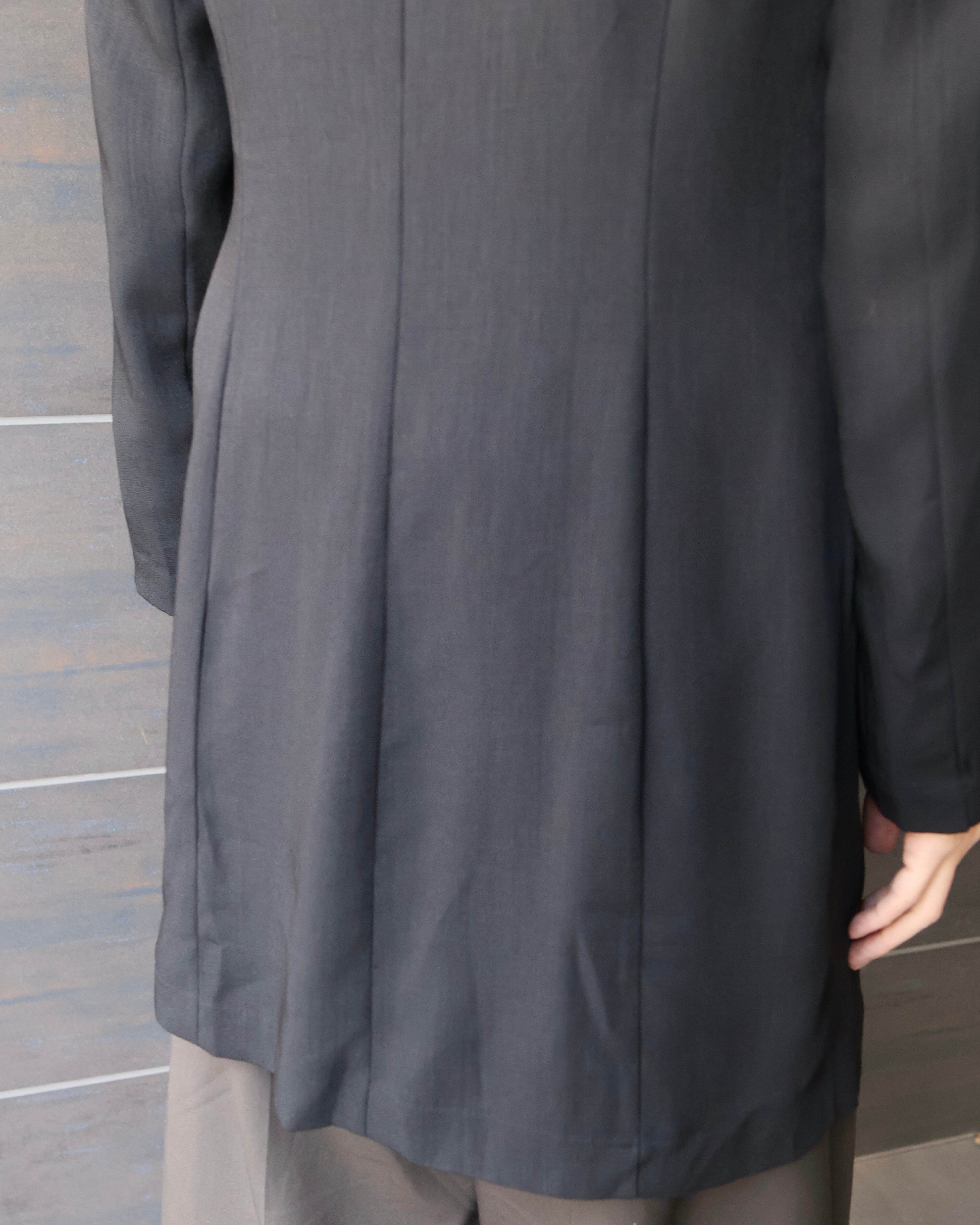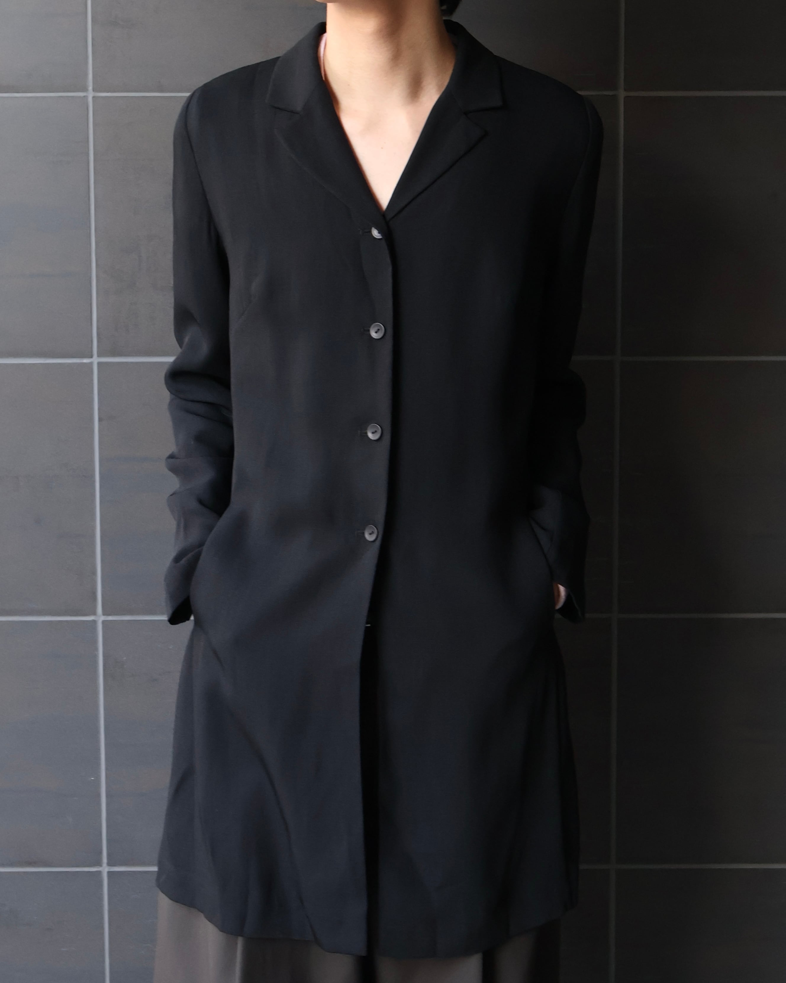 ミニマルなデザインのミドルレングスシングルテーラードジャケット
