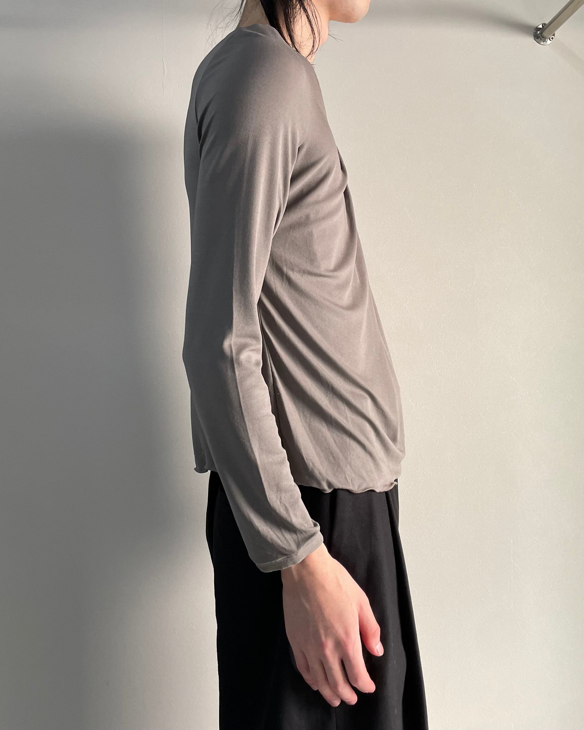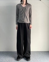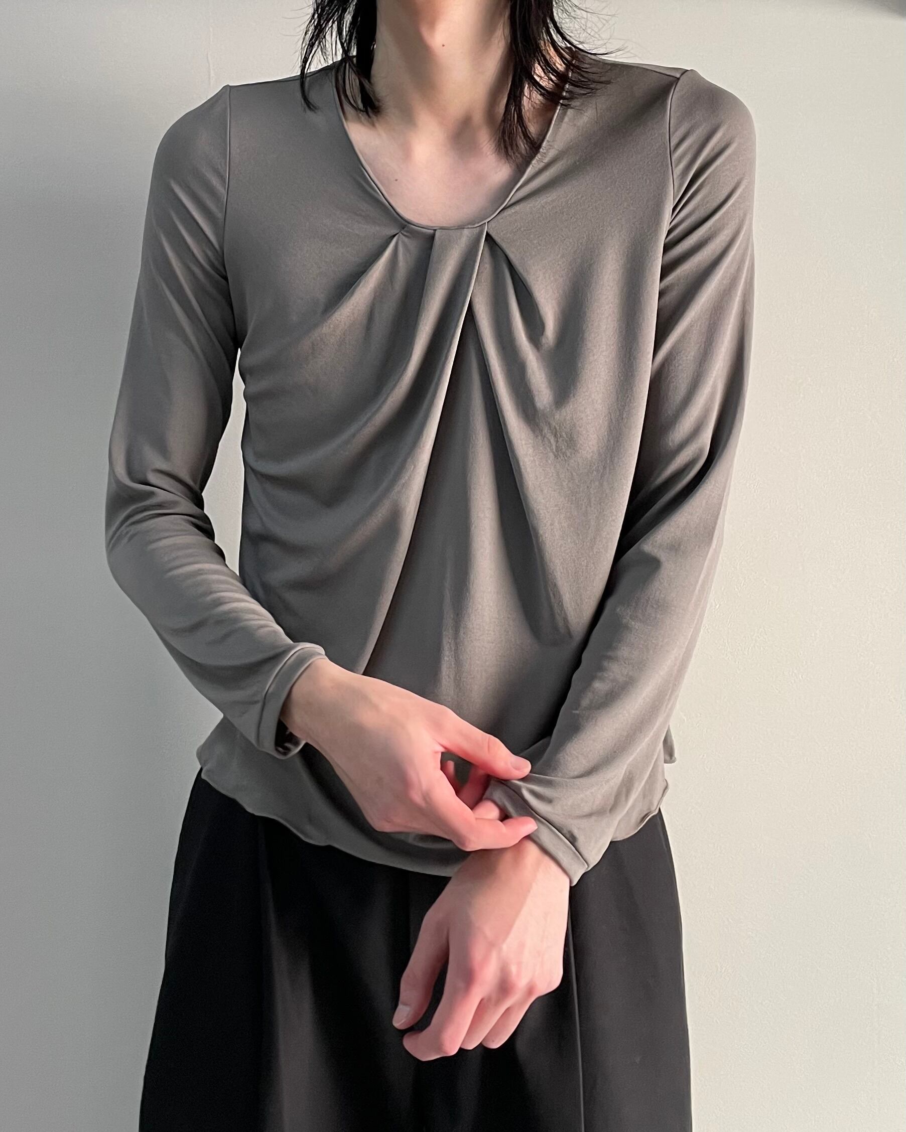 フロント首回り付近のデザインが特徴的で、ドレッシーな印象を引き出し、ビスコース素材の為ドレープの効いた、エレガントさも感じられる1着。