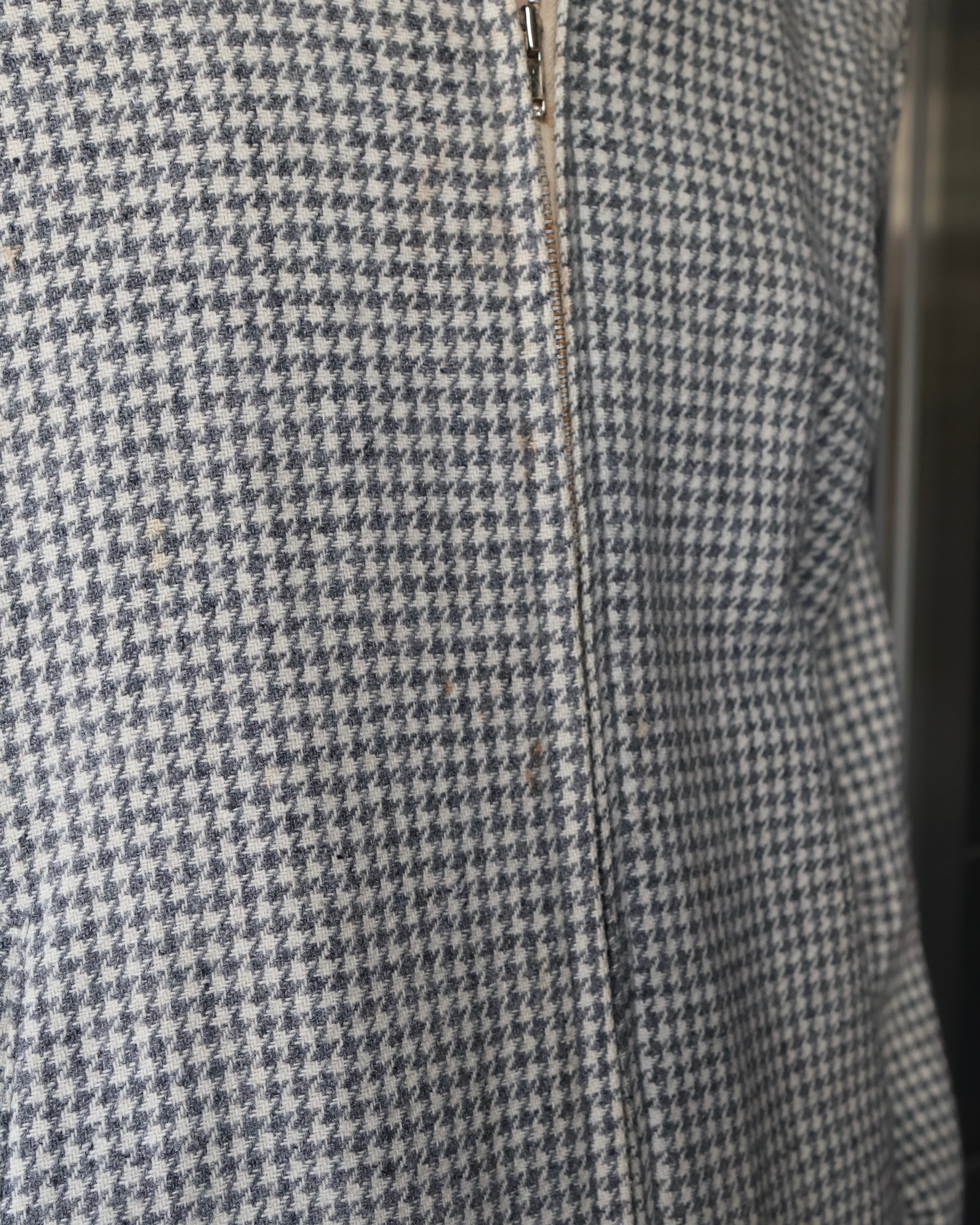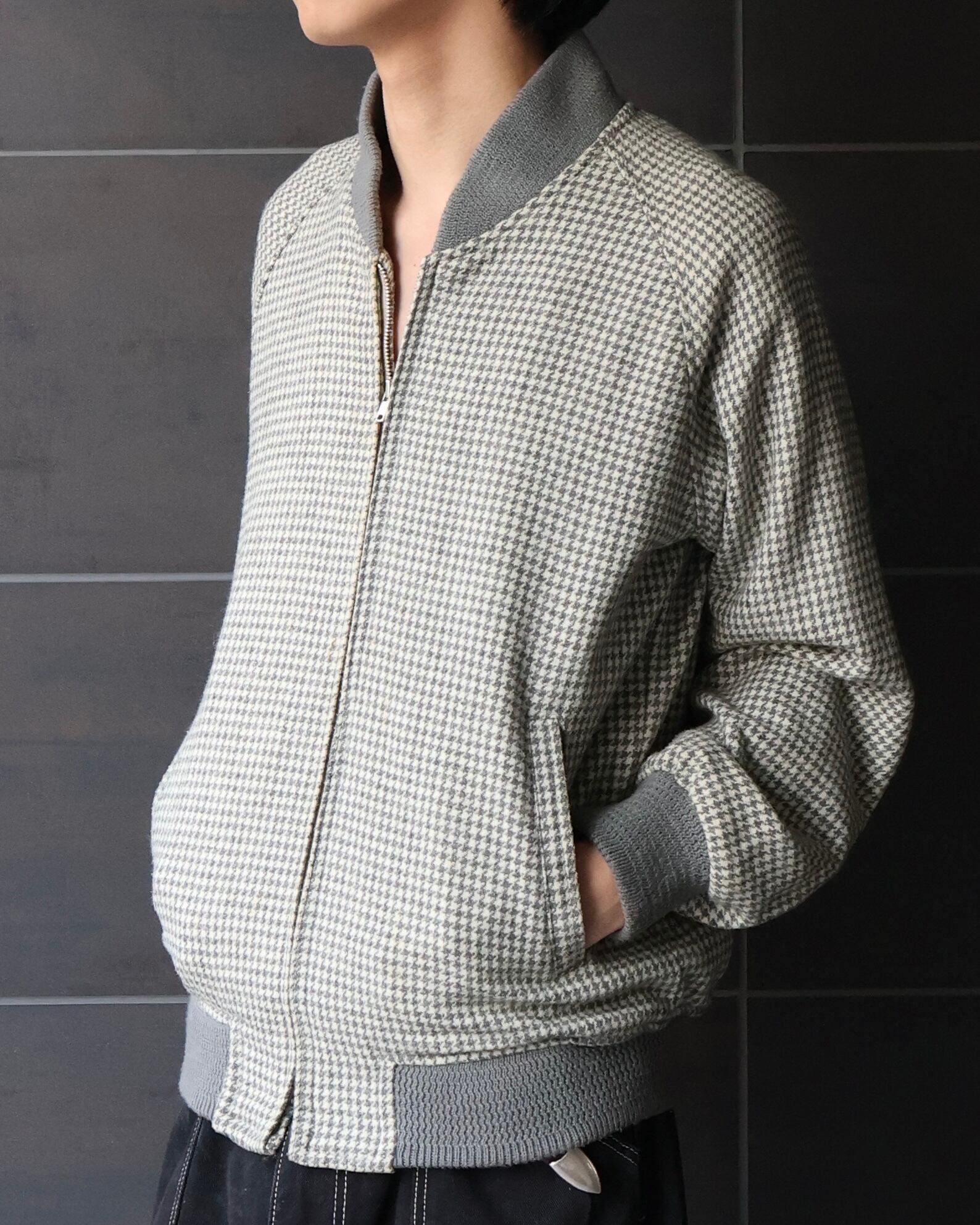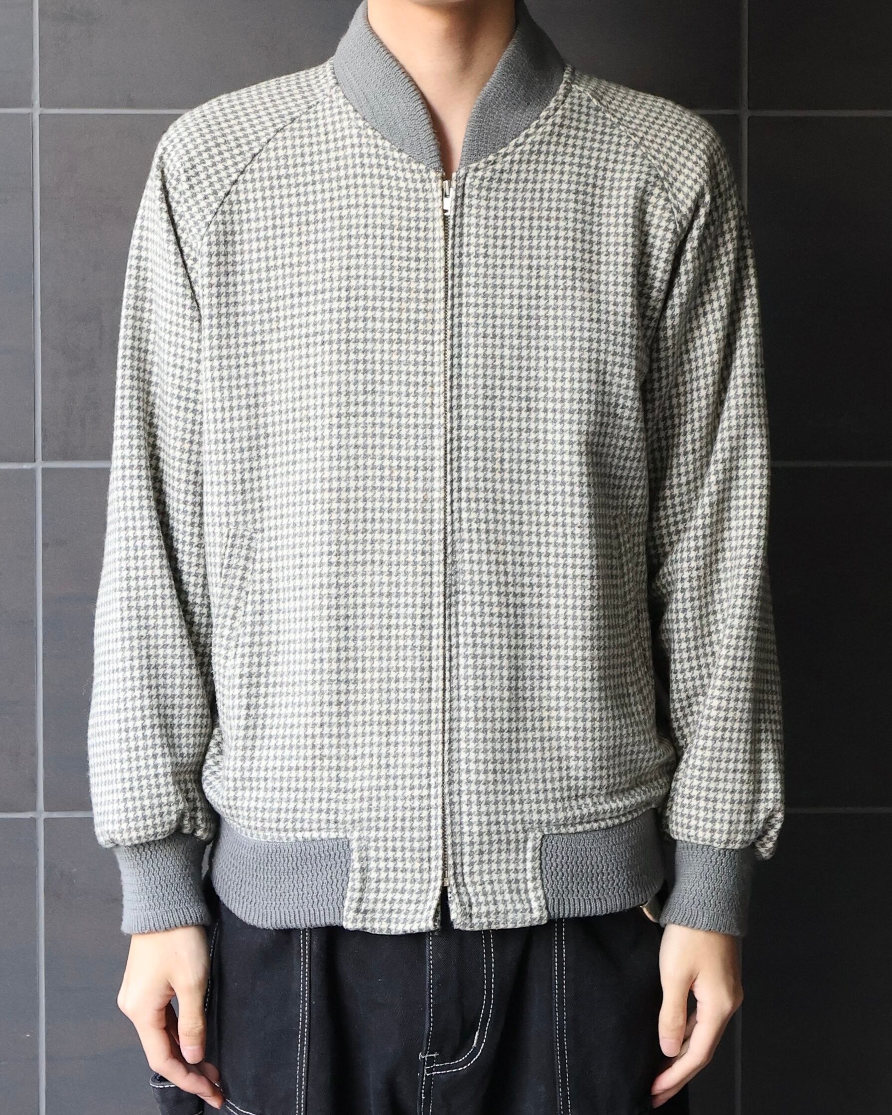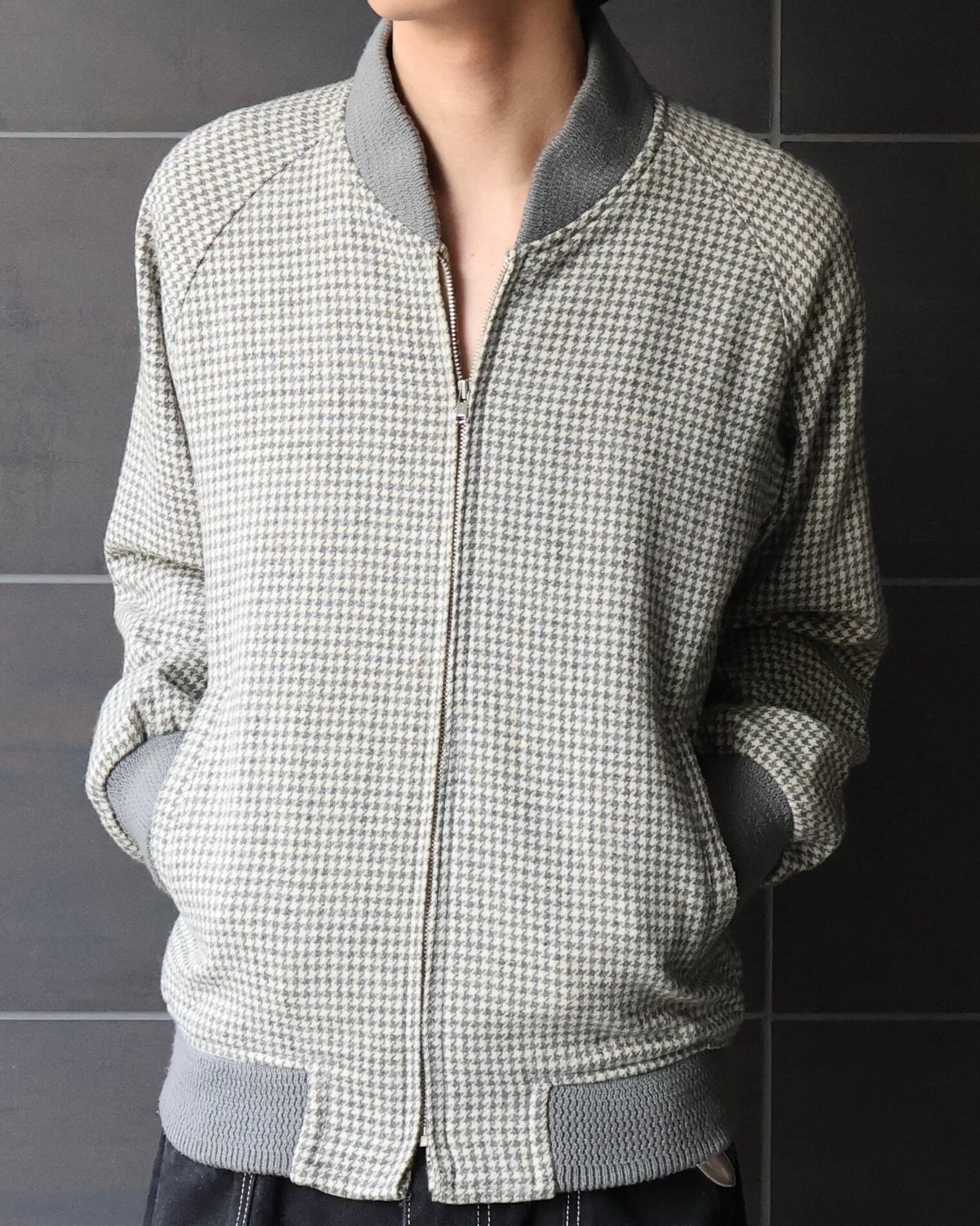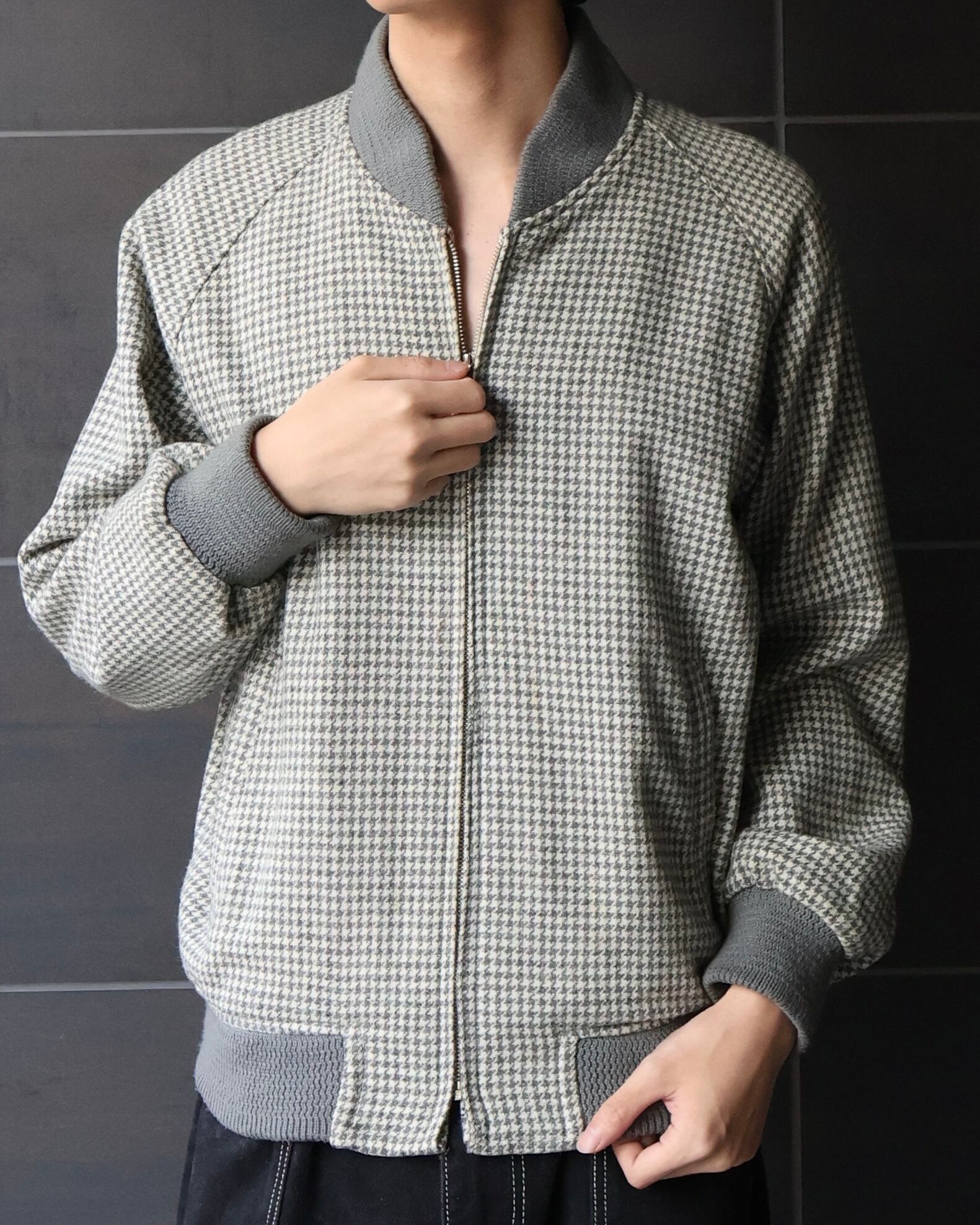 クラシカルな千鳥格子柄を全面にあしらったジップアップブルゾン