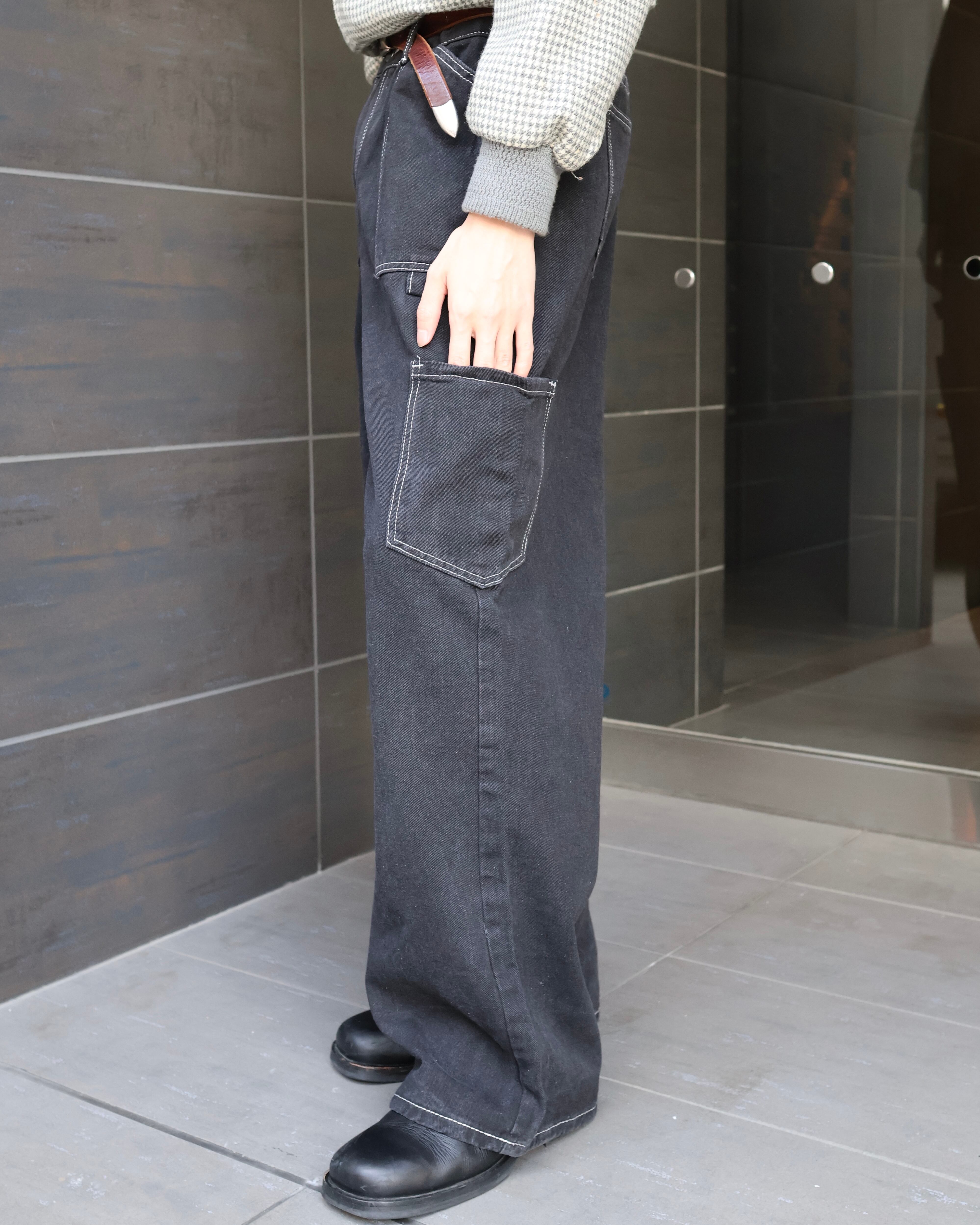 フロントとサイドに配された大ぶりのパッチポケットがワークテイストを感じさせつつも、シックなトーンでまとめることで上品な印象もあるアイテム。カジュアルからドレスまで幅広く対応可能。